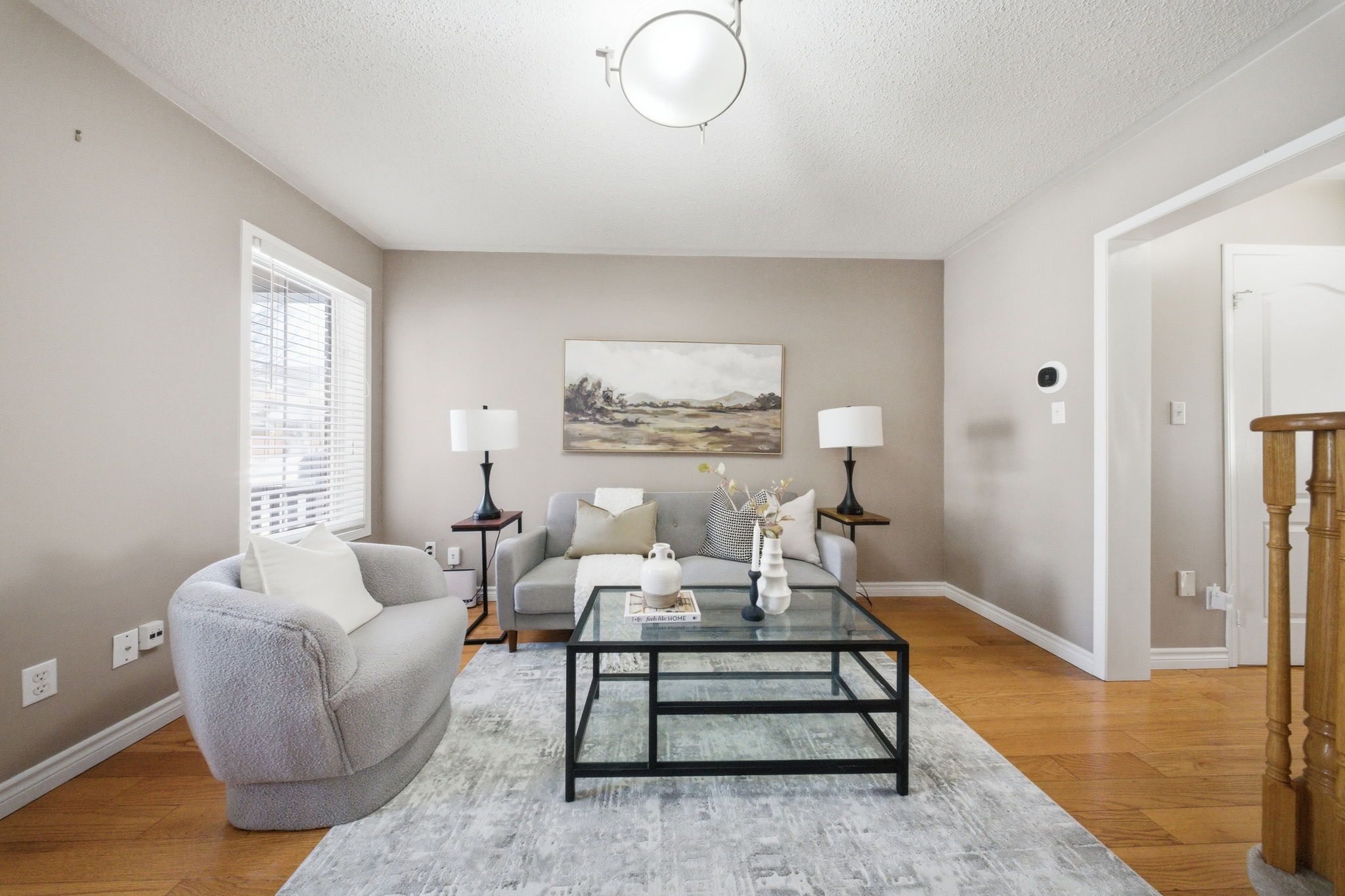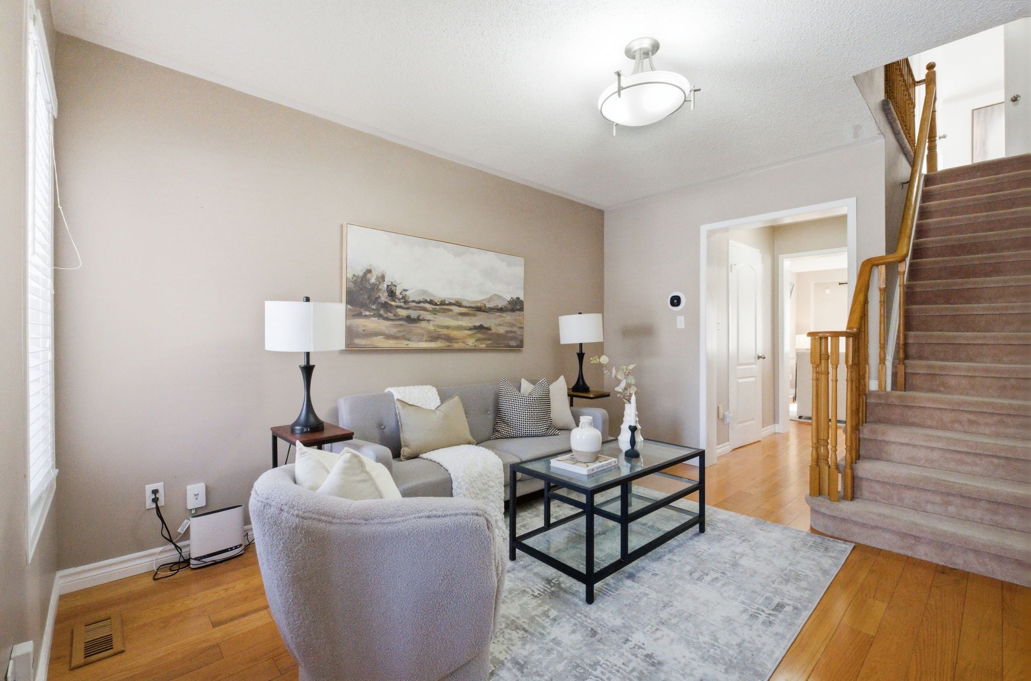 • Elegant hardwood flooring and open concept layout for spacious living.