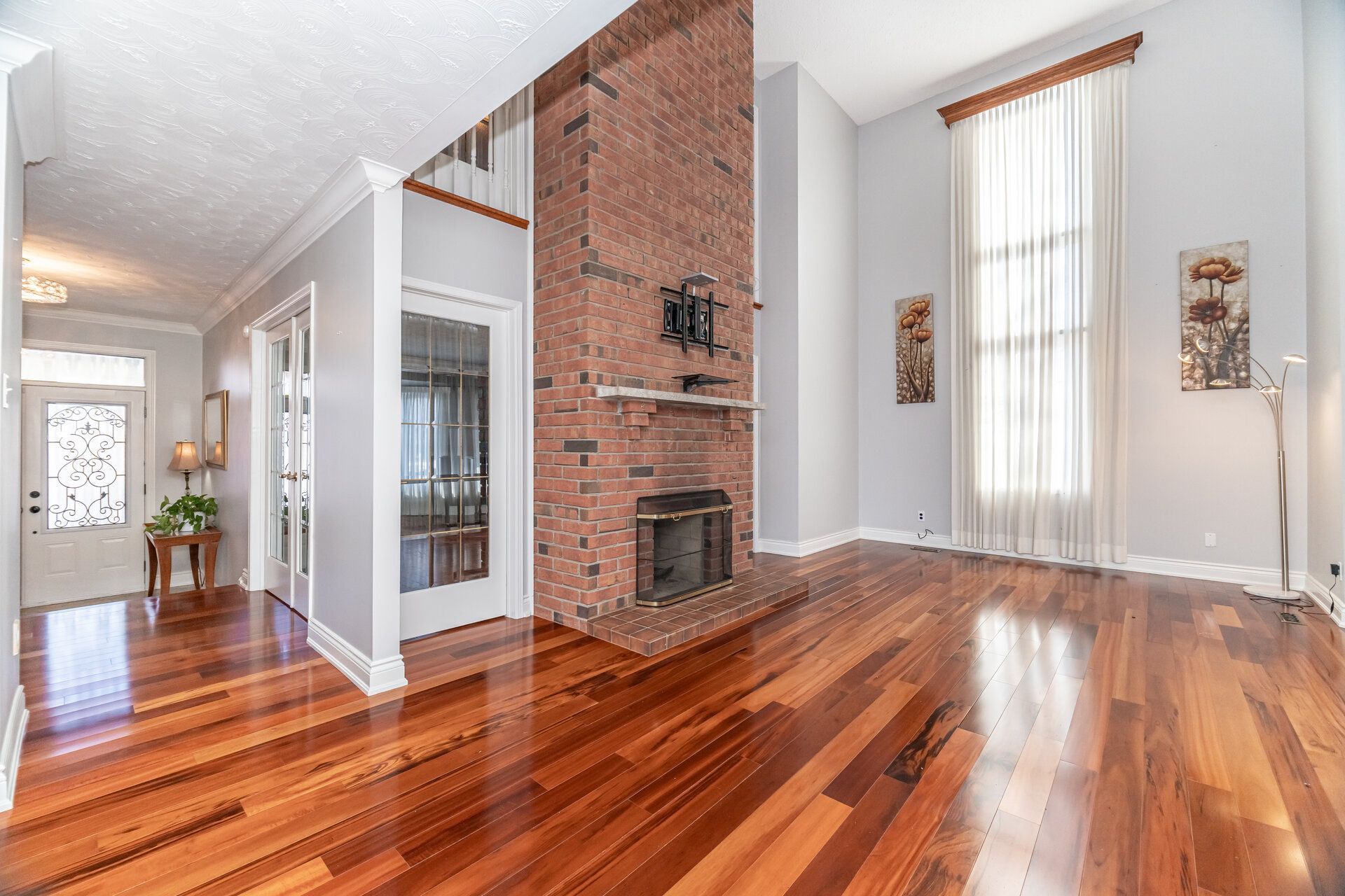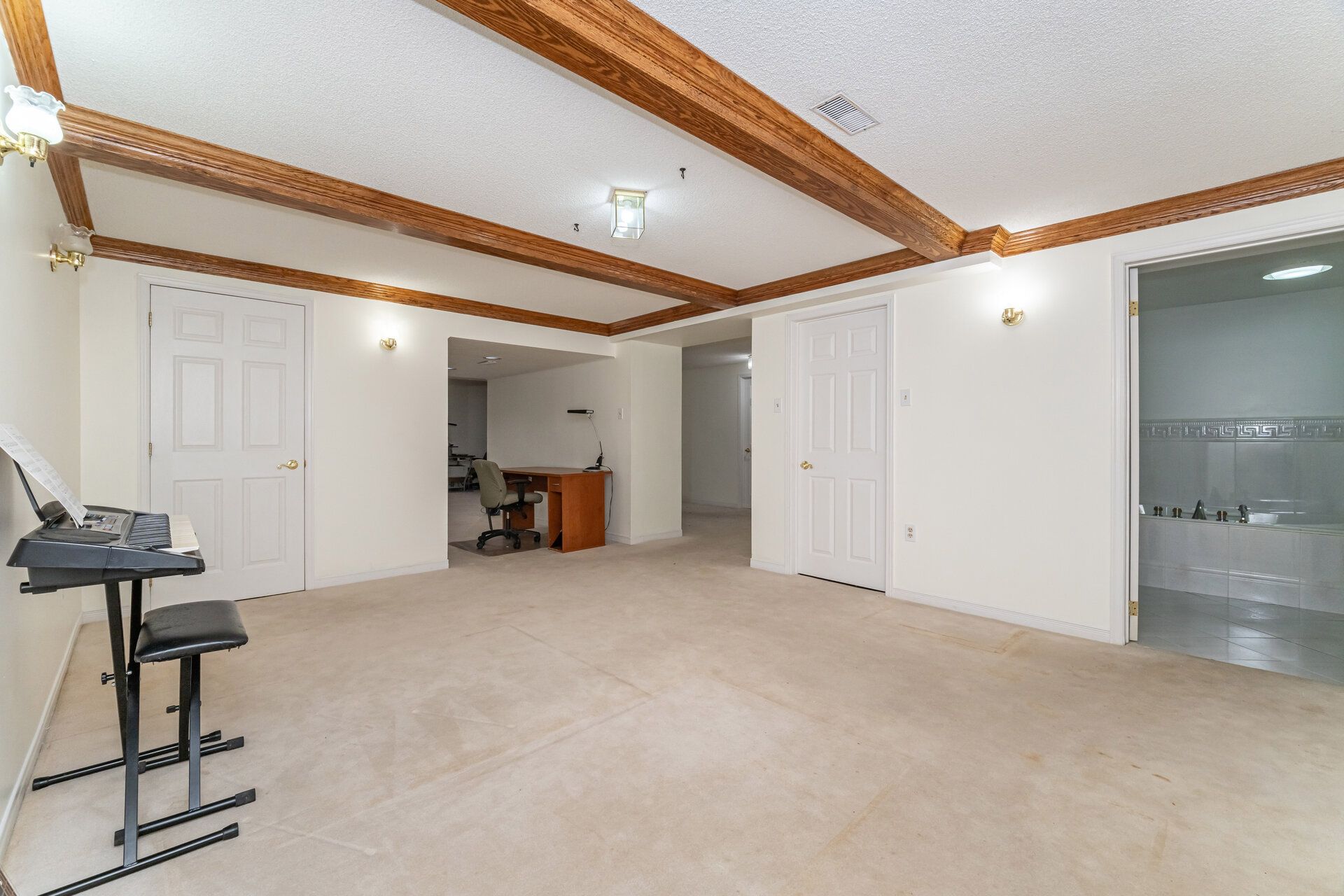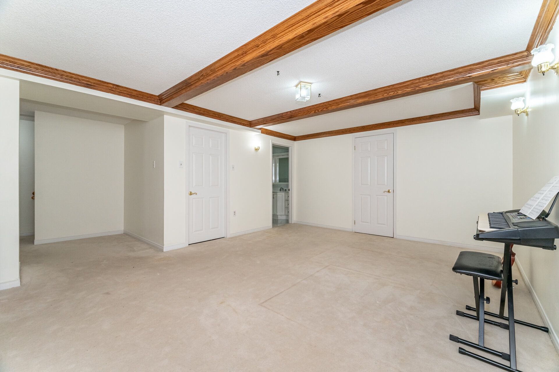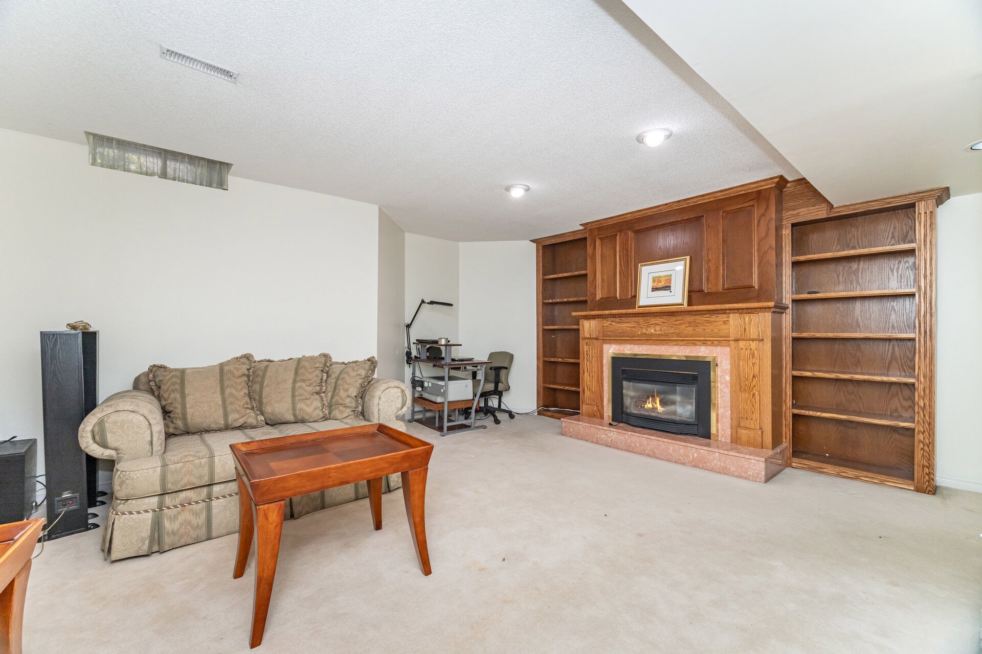 • Finished basement with recreation room, gas fireplace, and gaming area.
