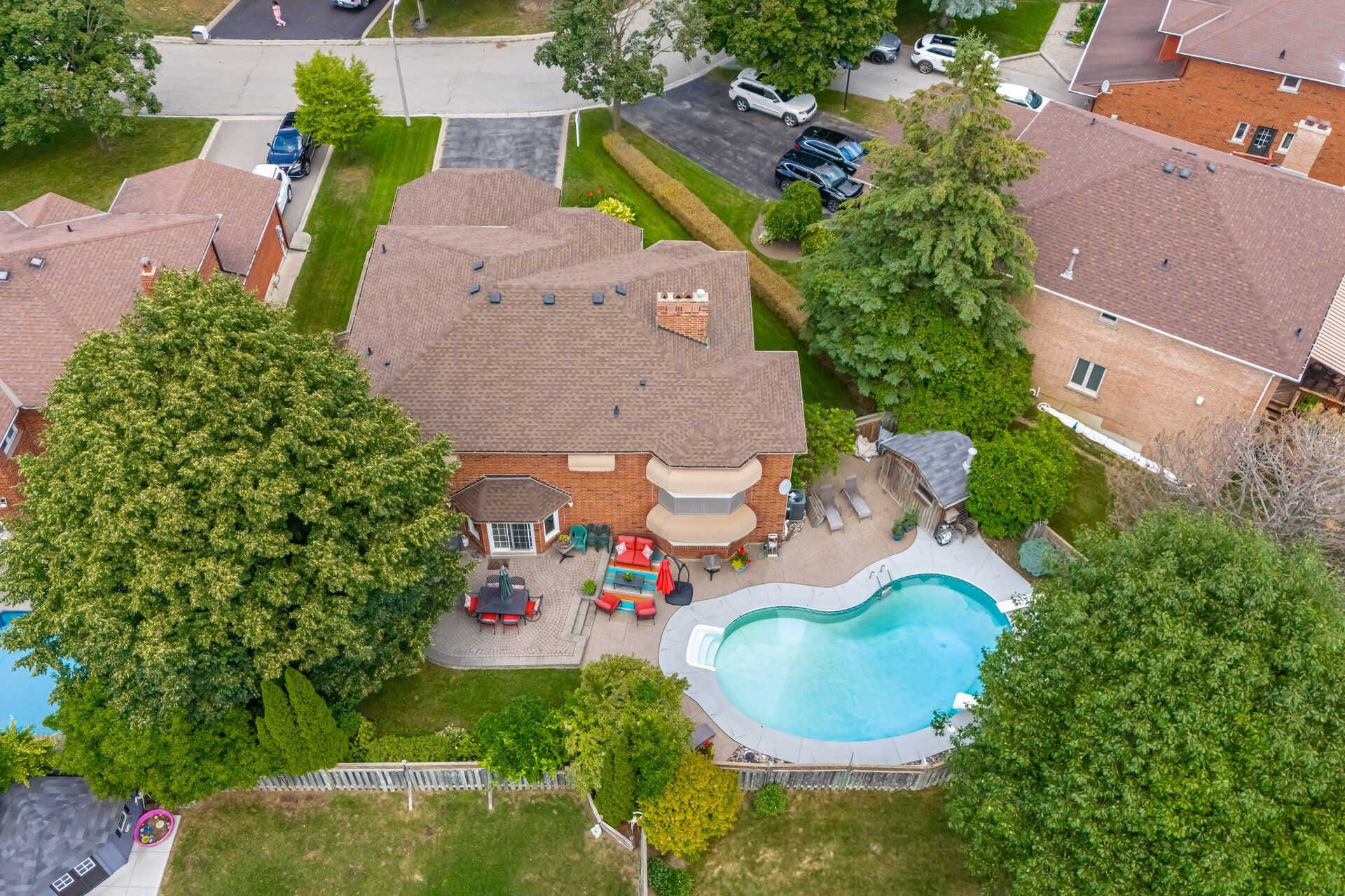 Welcome to this exceptional 4-bedroom home, perfectly situated in one of brampton's most exclusive neighbourhoods just off conservation drive. Thoughtfully upgraded throughout, the residence showcases a fully renovated gourmet kitchen with a gas stove, stainless steel appliances, granite countertops, and abundant oak cabinetry. The spacious primary suite offers a cozy wood-burning fireplace, an oversized walk-in closet, and a beautifully updated 6-piece ensuite with heated floors, while a newly renovated 4-piece bath serves the second floor. Separate living and family rooms are connected by a striking two-sided wood-burning fireplace, with the family room enhanced by soaring vaulted ceilings and elegant french doors. From the breakfast area, step outside to a professionally landscaped backyard featuring a two-tiered patio, sparkling inground pool, underground sprinkler system, and interlocking walkways. The finished basement adds even more living space with a recreation room warmed by a gas fireplace, a sitting and gaming area, a 3-piece bath with air-jet tub, a cold cellar, and extensive pot lighting with upgraded fixtures, all complemented by generous storage. Laundry can easily be relocated to the main floor mudroom, with plumbing and electrical connections already in place. Additional highlights include newer windows, a roof replaced in 2024, and a large pie-shaped lot with tasteful landscaping. Close to scenic trails and heart lake conservation area, this beautifully decorated home offers warmth, elegance, and functionality-an outstanding property that truly deserves your attention.