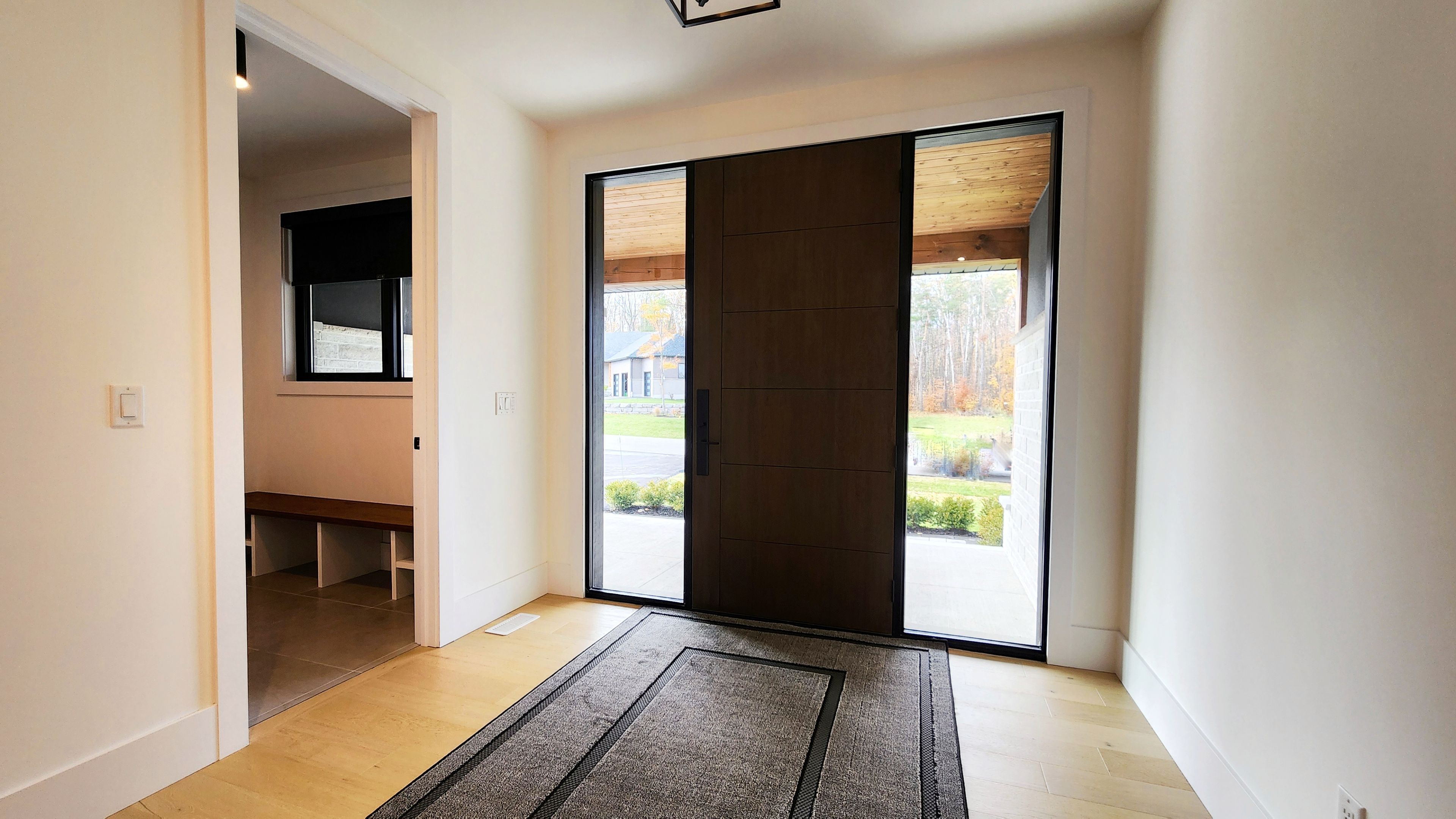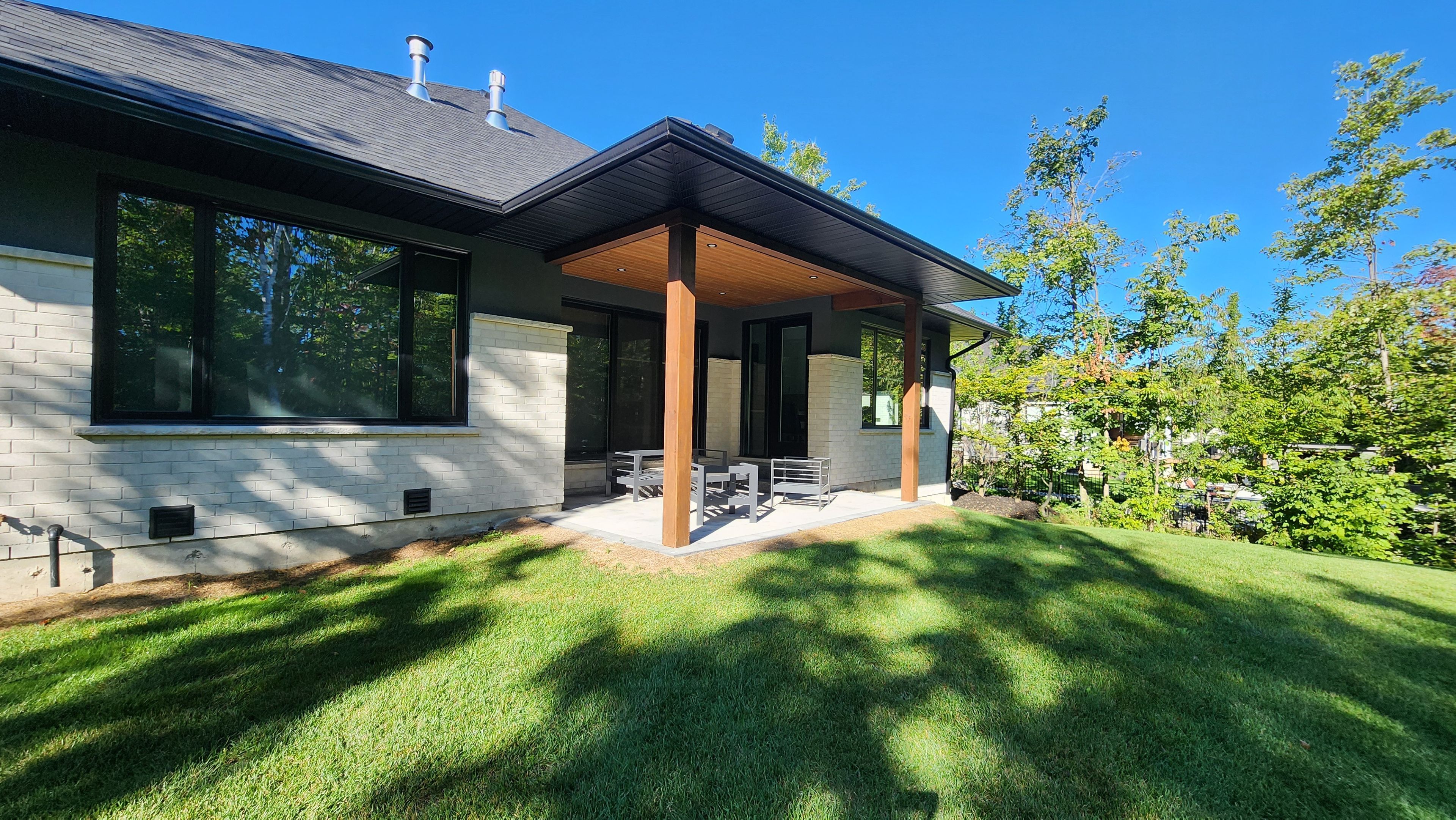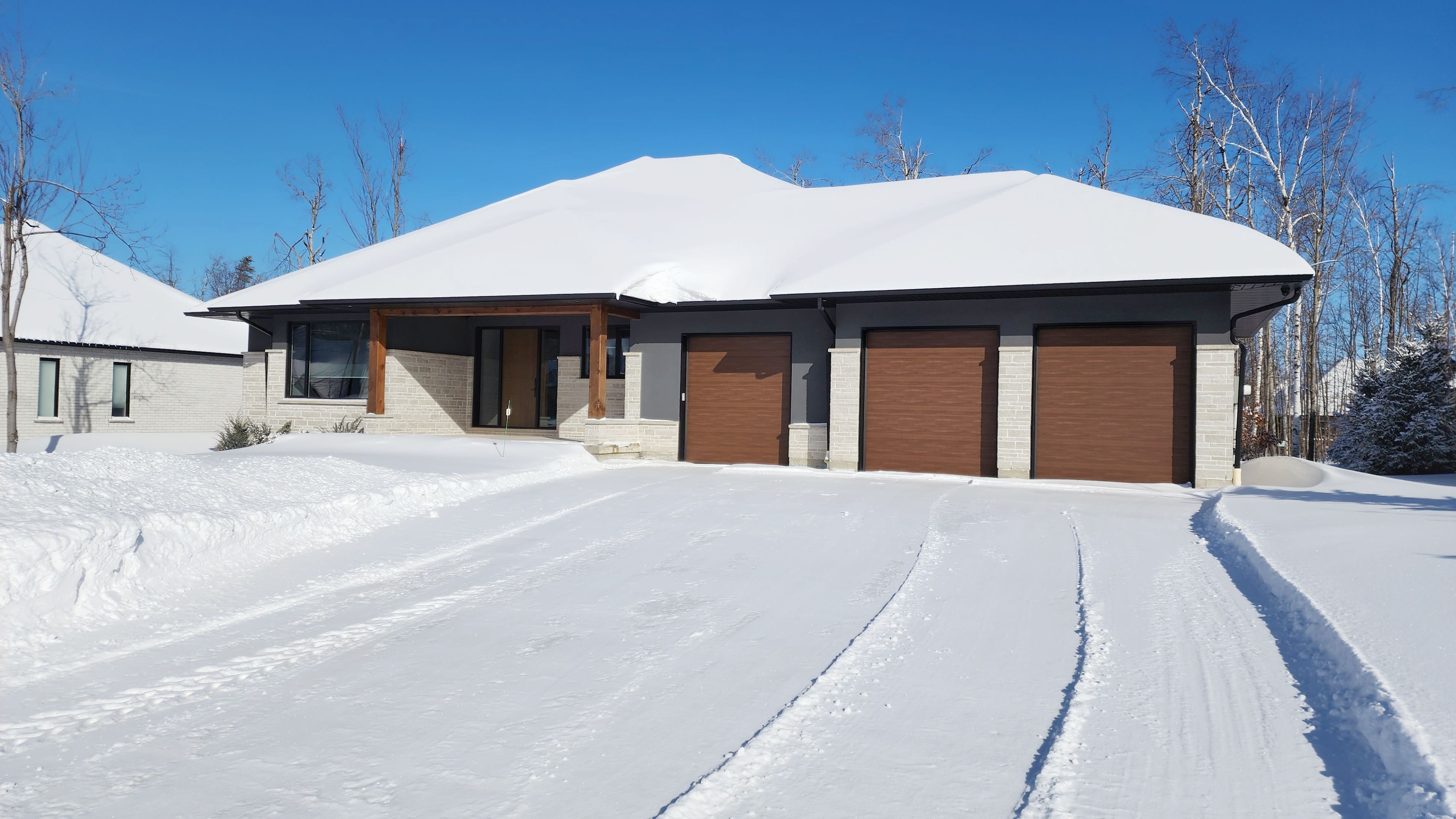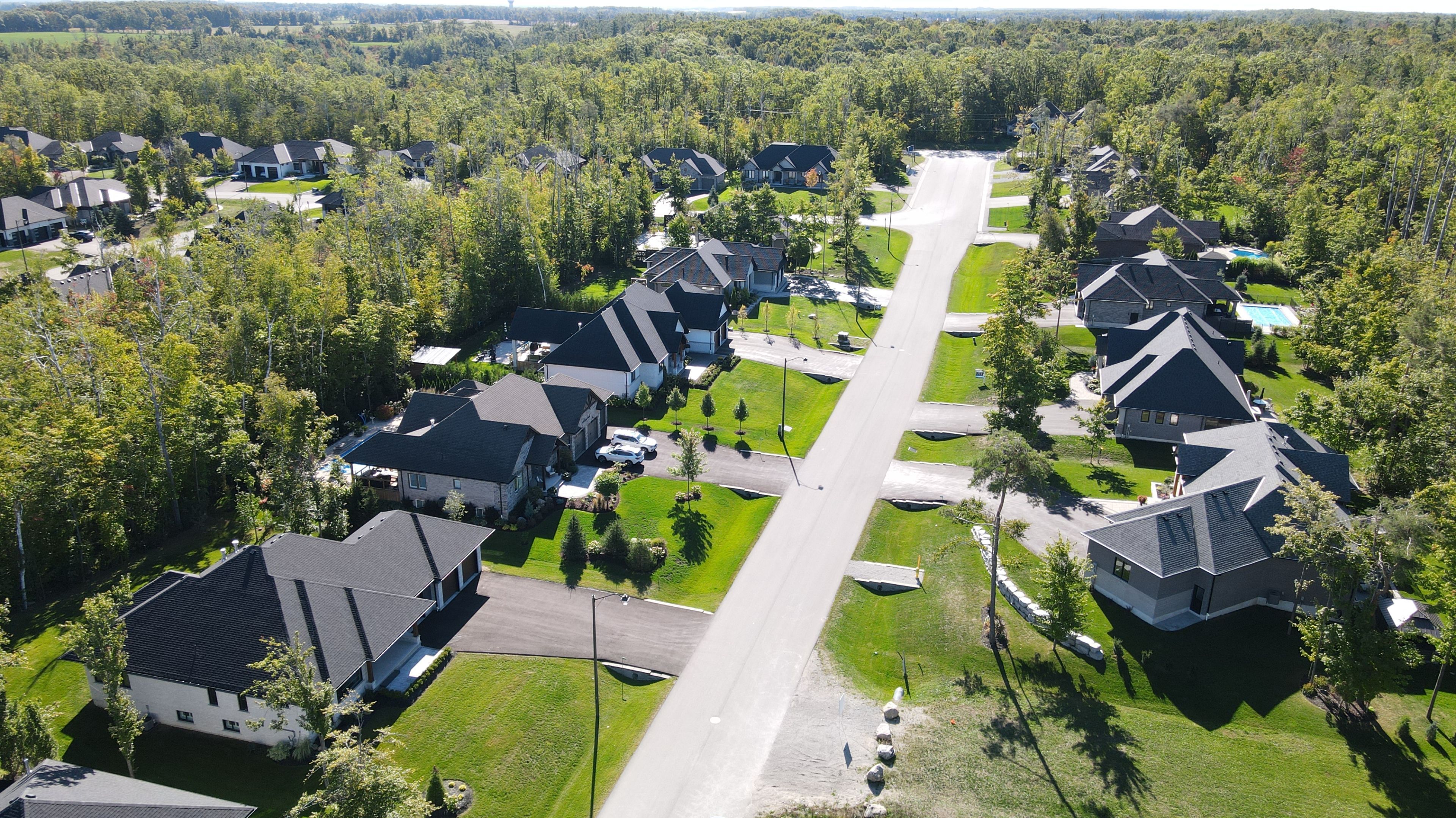 Perfectly located in one of springwater's most prestigious and sought-after neighbourhoods, this stunning modern bungalow offers upscale living with a peaceful country feel-just minutes from snow valley ski resort, vespra hills golf club, and barrie hill farms. Set within a quiet enclave with no through streets, the area is surrounded by forest and scenic trails, ideal for hiking, biking, and daily walks, all while enjoying minimal traffic and exceptional privacy. From the moment you arrive, the home's striking exterior impresses with contemporary brickwork, natural wood accents, and professional landscaping. A covered front porch provides a welcoming place to relax, while the expansive driveway and a triple car garage with a car lift making room for 4 vehicles. Inside, the bright open-concept layout is designed for both everyday comfort and entertaining. The custom kitchen is a true showpiece, featuring built-in appliances, sleek cabinetry, a large centre island with seating, and impressive statement lighting. Oversized windows flood the space with natural light and showcase serene views of the surrounding greenery. The living and dining areas flow seamlessly, anchored by a stunning linear gas fireplace that adds warmth and architectural appeal. Hardwood flooring runs throughout, except in the basement bedrooms and theatre room, which are comfortably finished with carpet. The main floor offers three spacious bedrooms and three full bathrooms, including a tranquil primary suite with a spa-inspired ensuite featuring a freestanding tub, dual vanity, and modern fixtures. The fully finished basement expands the living space with two additional bedrooms, a full bathroom, a dedicated theatre room, and a wet bar-ideal for entertaining, guests, or extended family living. Thoughtfully designed outdoor spaces with landscaped lawns, covered seating, and year-round privacy. A perfect blend of modern style, comfort, and nature --- a must-see home you won't want to miss.