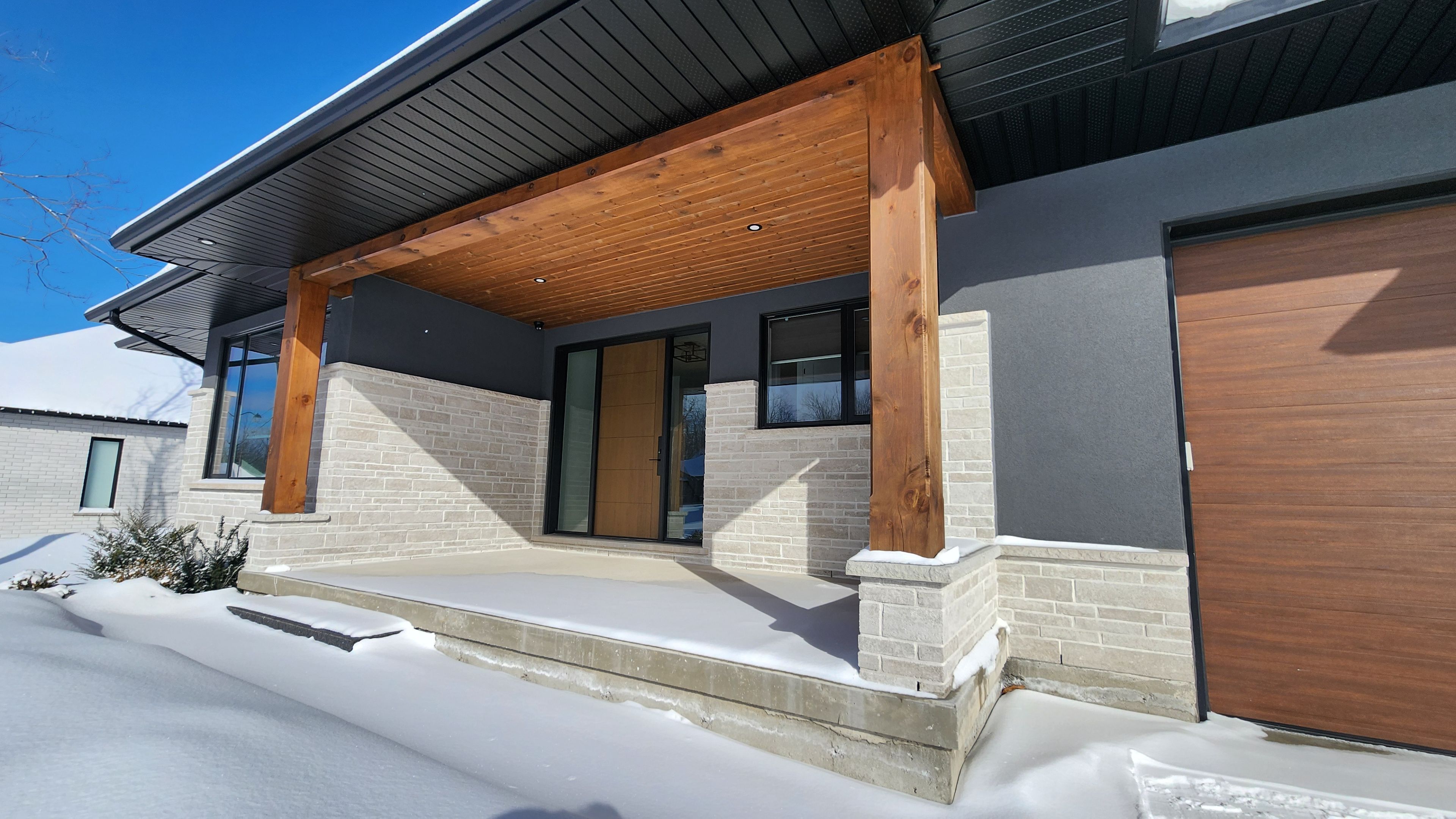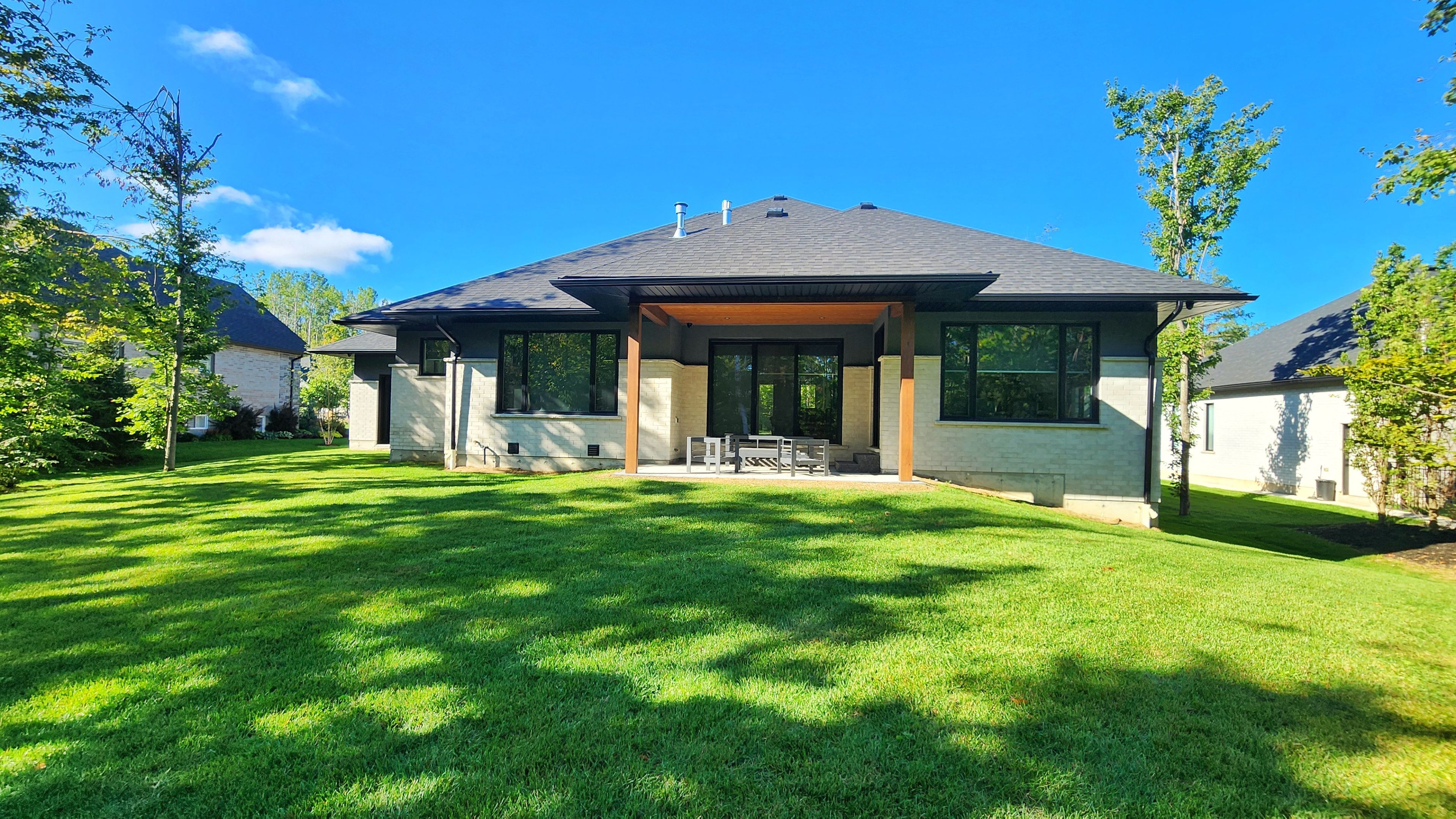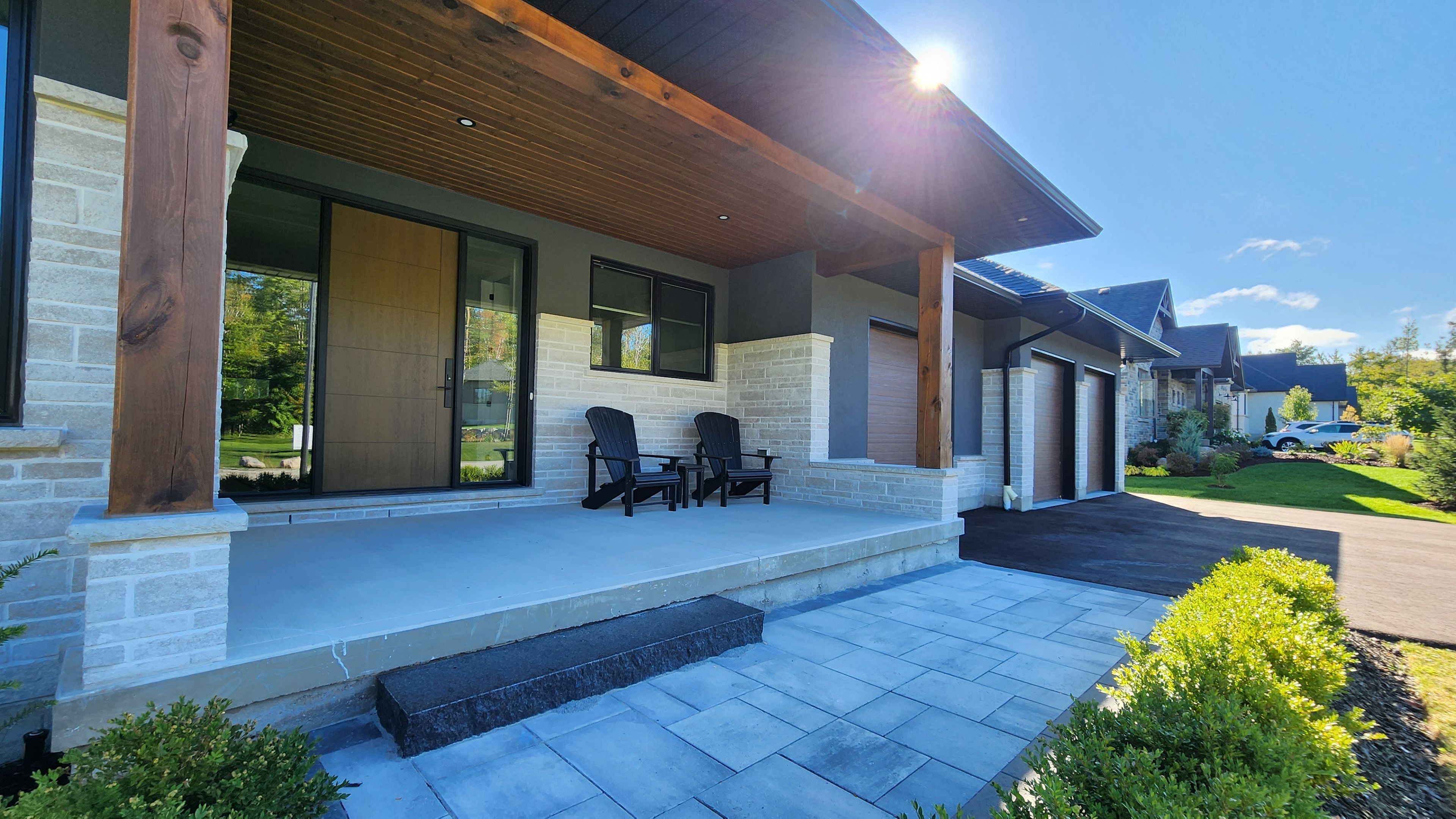 Perfectly located in one of springwater's most prestigious and sought-after neighbourhoods, this stunning modern bungalow offers upscale living with a peaceful country feel-just minutes from snow valley ski resort, vespra hills golf club, and barrie hill farms. Set within a quiet enclave with no through streets, the area is surrounded by forest and scenic trails, ideal for hiking, biking, and daily walks, all while enjoying minimal traffic and exceptional privacy. From the moment you arrive, the home's striking exterior impresses with contemporary brickwork, natural wood accents, and professional landscaping. A covered front porch provides a welcoming place to relax, while the expansive driveway and a triple car garage with a car lift making room for 4 vehicles. Inside, the bright open-concept layout is designed for both everyday comfort and entertaining. The custom kitchen is a true showpiece, featuring built-in appliances, sleek cabinetry, a large centre island with seating, and impressive statement lighting. Oversized windows flood the space with natural light and showcase serene views of the surrounding greenery. The living and dining areas flow seamlessly, anchored by a stunning linear gas fireplace that adds warmth and architectural appeal. Hardwood flooring runs throughout, except in the basement bedrooms and theatre room, which are comfortably finished with carpet. The main floor offers three spacious bedrooms and three full bathrooms, including a tranquil primary suite with a spa-inspired ensuite featuring a freestanding tub, dual vanity, and modern fixtures. The fully finished basement expands the living space with two additional bedrooms, a full bathroom, a dedicated theatre room, and a wet bar-ideal for entertaining, guests, or extended family living. Thoughtfully designed outdoor spaces with landscaped lawns, covered seating, and year-round privacy. A perfect blend of modern style, comfort, and nature --- a must-see home you won't want to miss.