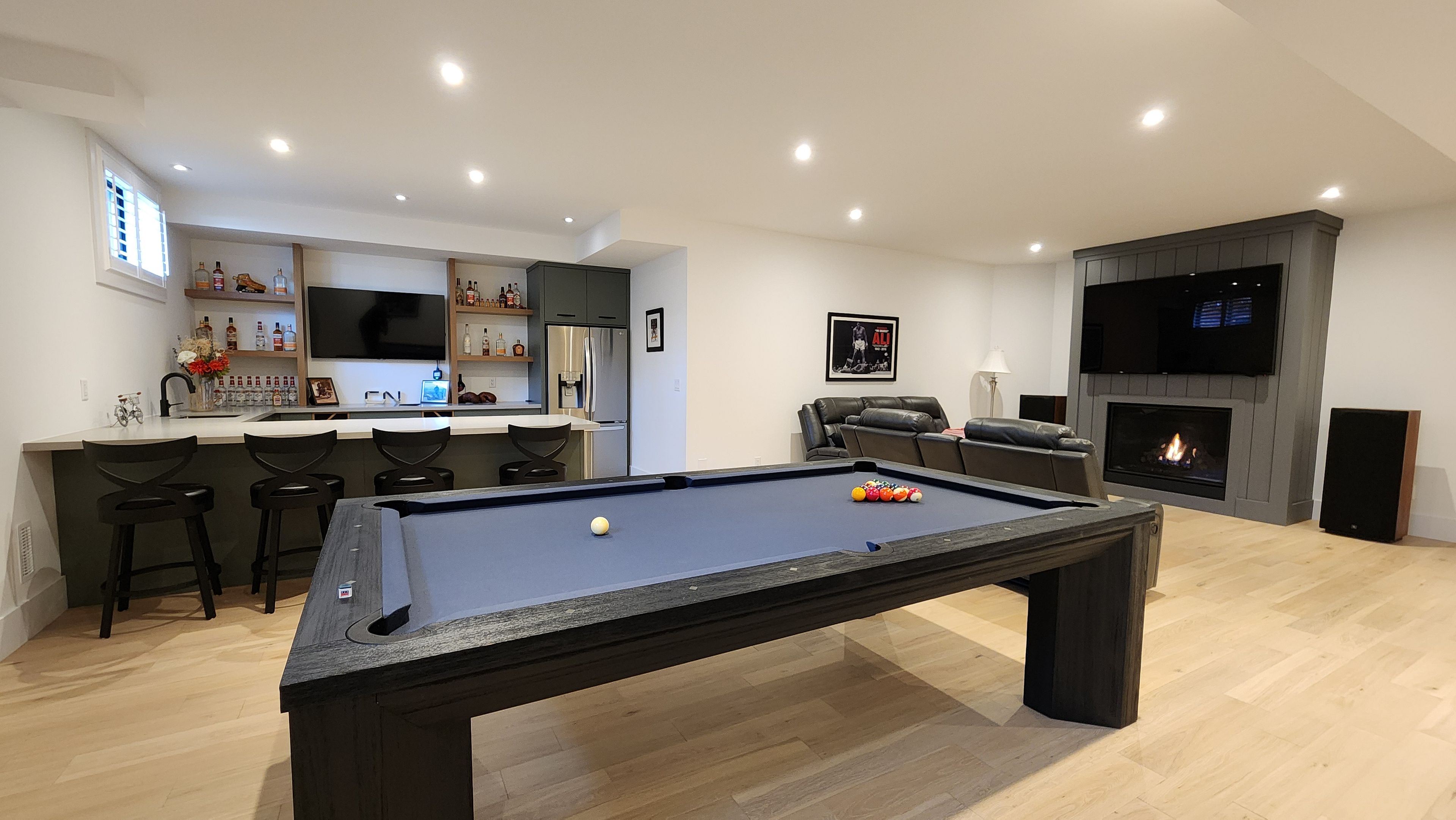 • Fully finished basement adds extra living space with theater room and wet bar.