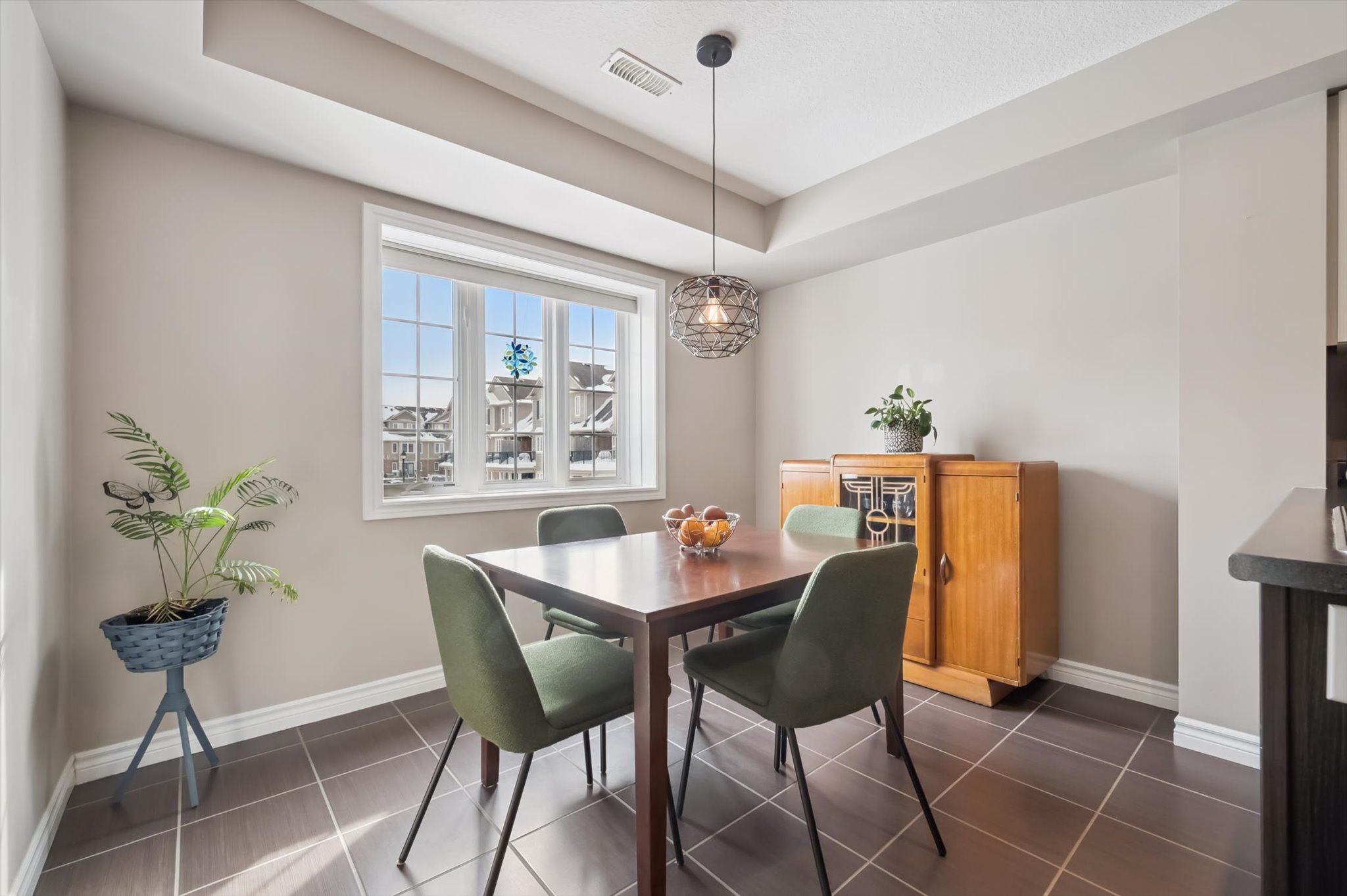 This beautifully maintained upper-level stacked townhome offers 1,369 sq ft of bright, functional living space. Thoughtfully designed with neutral finishes and décor, this home provides a warm, move-in-ready feel that suits any style. The spacious living room is filled with natural light from large windows, creating an inviting atmosphere perfect for both relaxing and entertaining. The functional kitchen features a convenient dine-in area and direct access to the private balcony- ideal for morning coffee or evening unwinding. A well-placed powder room on this level adds everyday convenience for you and your guests. Two great-sized bedrooms, a 4-piece bathroom, and in-suite laundry occupy the upper level. Located in a fantastic neighbourhood, just minutes from schools, parks, shopping, and scenic trails leading to guelph lake- perfect for outdoor enthusiasts.