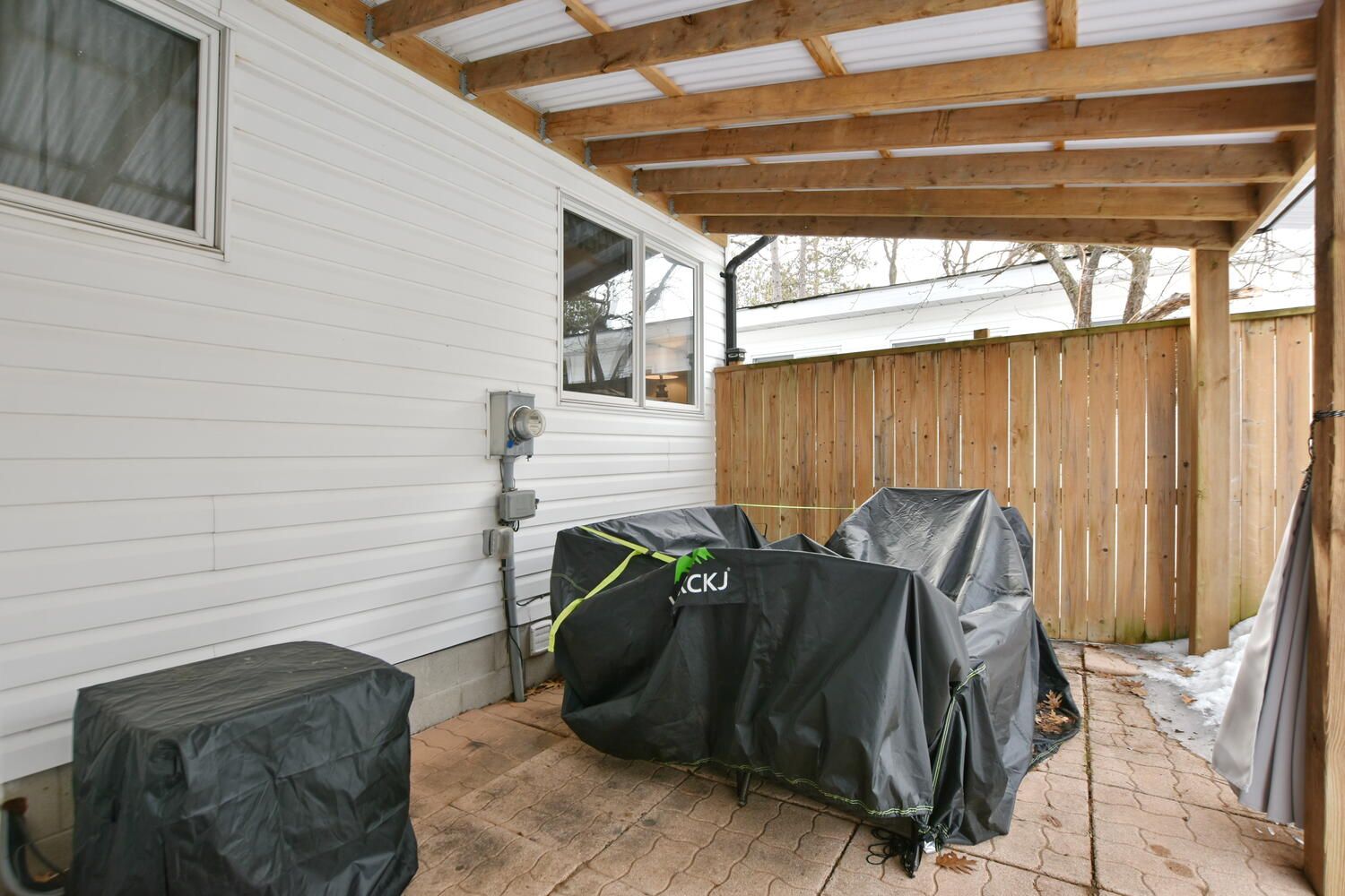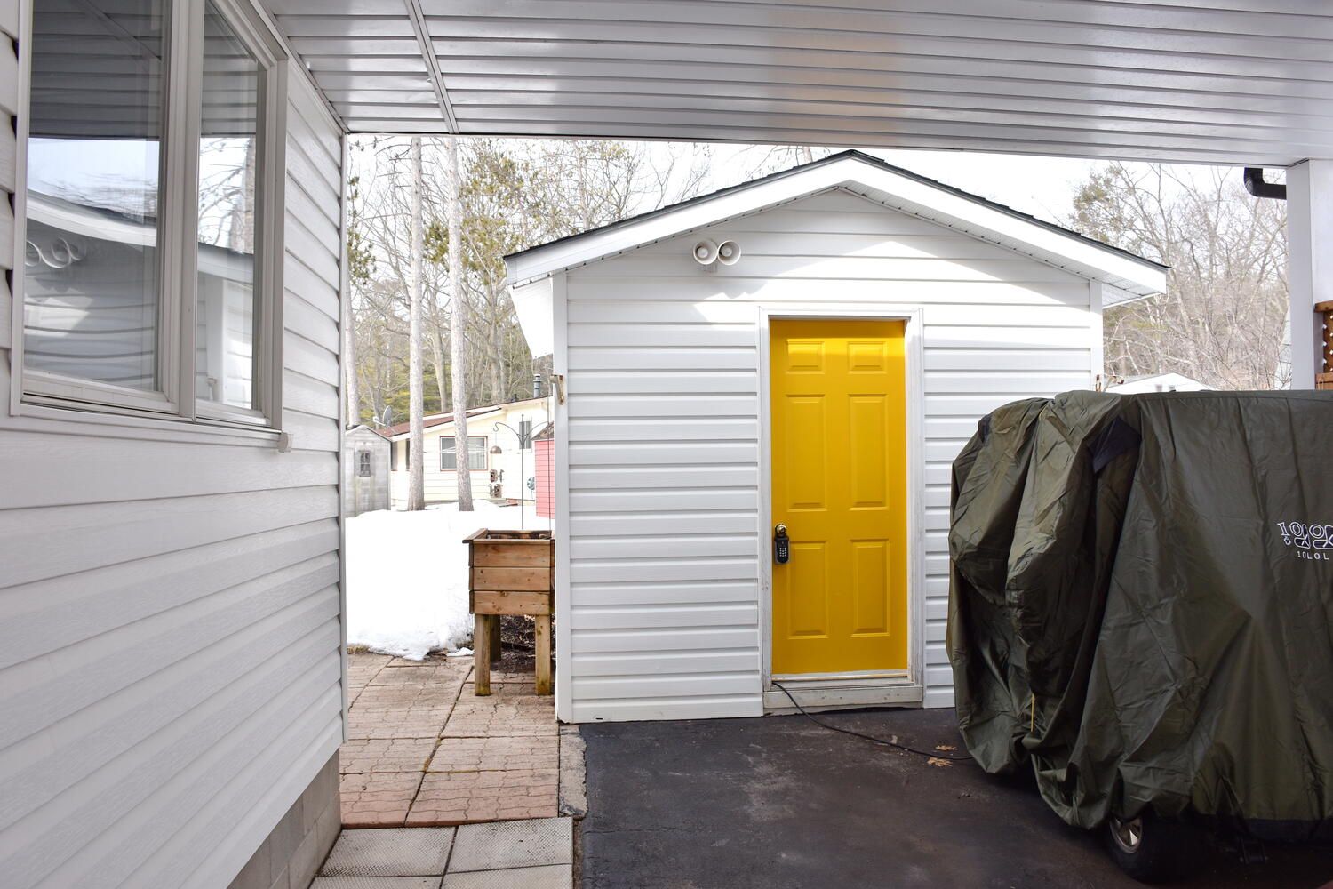 Welcome to this well-maintained 2-bedroom home located in a sought-after adult lifestyle community for those aged 55 and over. Enjoy a relaxed and social way of living with fantastic amenities including an in-ground heated pool, 9-hole par three golf course, and a vibrant clubhouse offering activities such as dart leagues, billiards, cards, dinners, and dances. The home features a bright open concept floor plan with a modern kitchen complete with gas stove, built-in microwave, and convenient combo washer/dryer unit. Comfortable and functional, this space is ideal for easy day-to-day living. Step outside to enjoy both a covered patio and a three-season room-perfect for relaxing or entertaining in any weather. Additional features include a carport, paved driveway with parking for three vehicles, and a shed with hydro for extra storage or workspace. This property is located in a land lease community. All offers are to be conditional upon parkbridge approval. A wonderful opportunity to enjoy low-maintenance living in a welcoming and active community. Monthly fees: land lease $750, monthly site taxes $36. 69, monthly house taxes $66. 06 for a total of $852. 75. Water meter is billed quarterly.