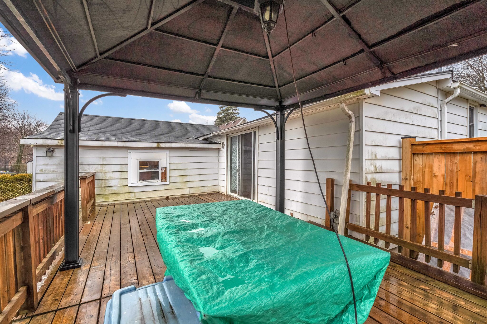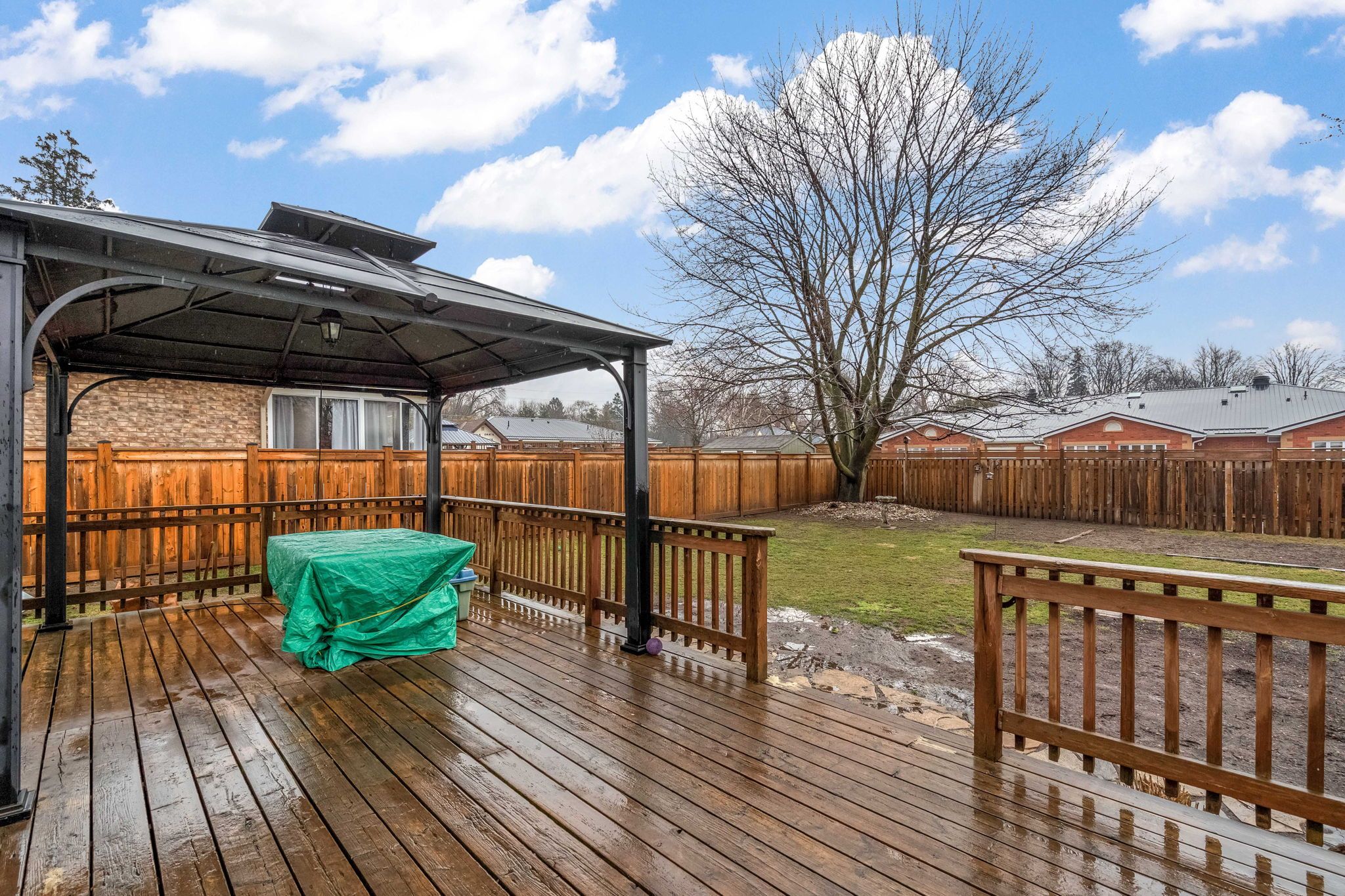 • Large, fenced backyard with a deck, great for outdoor activities.