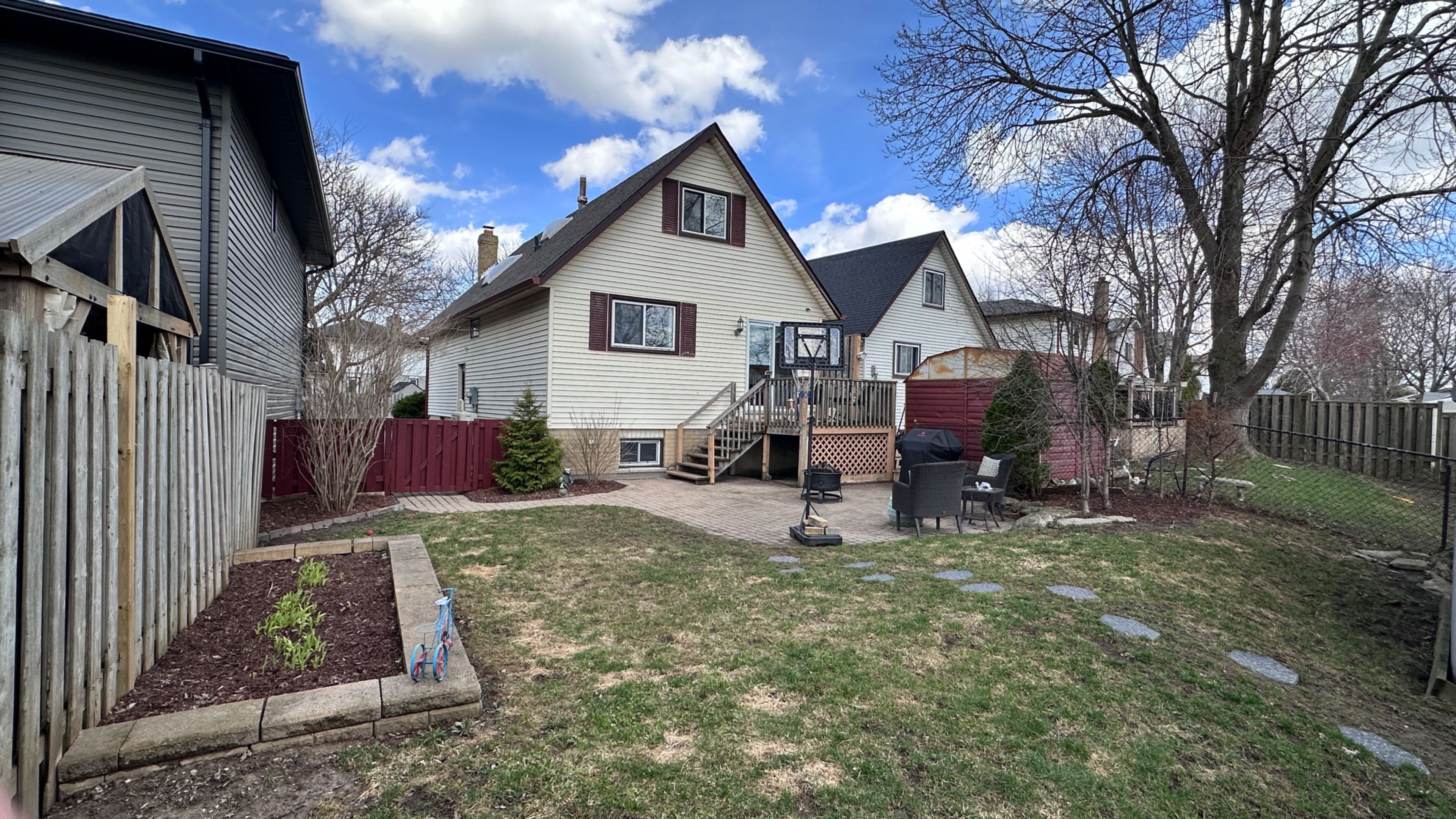 • Fully fenced backyard with a deck and patio, perfect for gatherings.