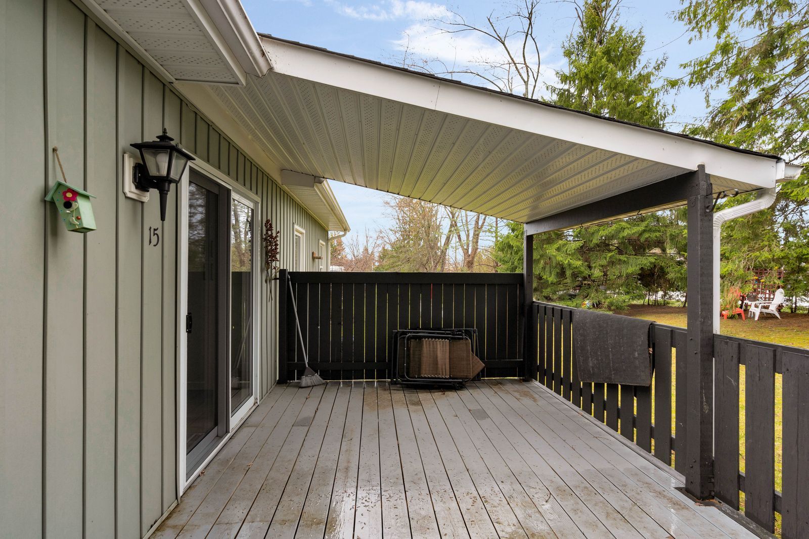 Fully renovated low-maintenance bungalow with a private treed yard & stylish interior! Your jaw might hit the floor the second you walk into this far-from-average sandycove acres bungalow at 15 cherrywood lane. Soft sage green vinyl siding in a board-and-batten style, updated front railing, replaced front gutters, a repainted front deck, and a private driveway for three make this bungalow every bit as appealing outside as it is inside, while the treed backyard, deck, fire pit area, garden shed, and generous yard space add even more to enjoy. Through the front door, the renovation hits immediately with light-coloured waterproof flooring, neutral finishes, updated drywall, fresh paint, pot lights, newer windows, and newer doors, giving the home a very modern feel. A fluted wood-look accent wall brings extra personality to the living area, while the kitchen delivers with quartz countertops, a matching backsplash, stainless steel appliances, and a peninsula with seating. Two bedrooms keep the layout manageable, with the primary featuring two double closets and the second bedroom offering its own double closet, while the beautifully finished 3-piece bathroom stands out with a glass-walled shower, black fixtures, and hexagon tile detail. Forced air gas heating, complemented by a ductless mini-split air conditioner and heater, adds reliable year-round comfort. All of this is set within a vibrant 50+ adult lifestyle community near the shores of lake simcoe, where residents enjoy an on-site mall, three clubhouses, kitchen facilities, fitness facilities, games rooms, libraries, two heated outdoor pools, laundry facilities, dart boards, indoor and outdoor shuffleboard courts, indoor and outdoor pickleball, a wood workshop, walking trails, and a full calendar of recreation and social events.