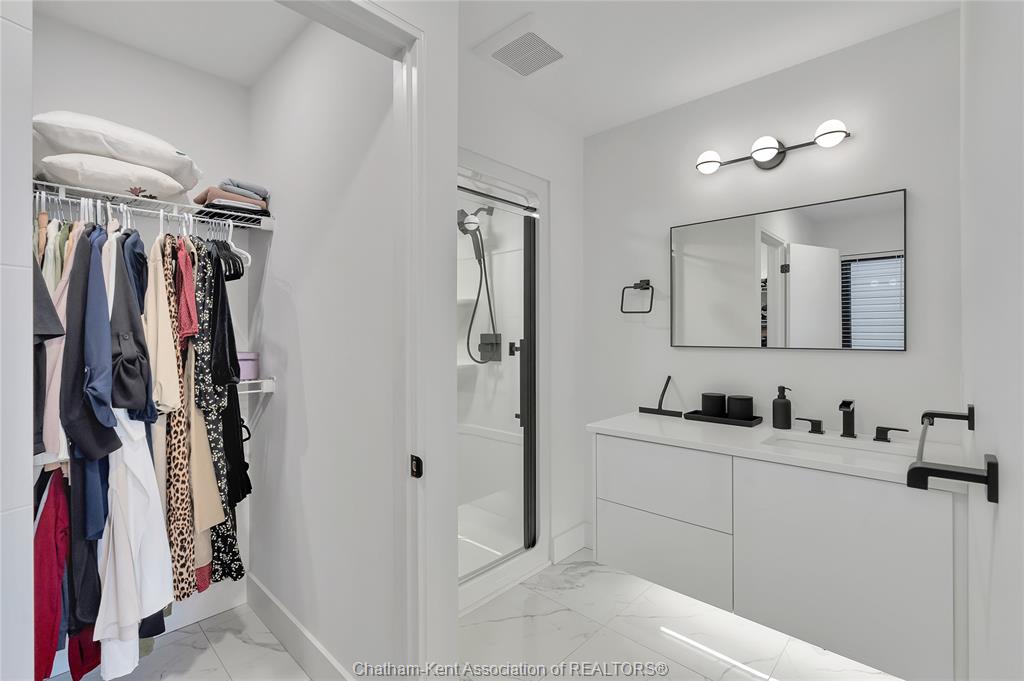 • Private primary retreat has spacious bedroom, walk-in closet, and en-suite.