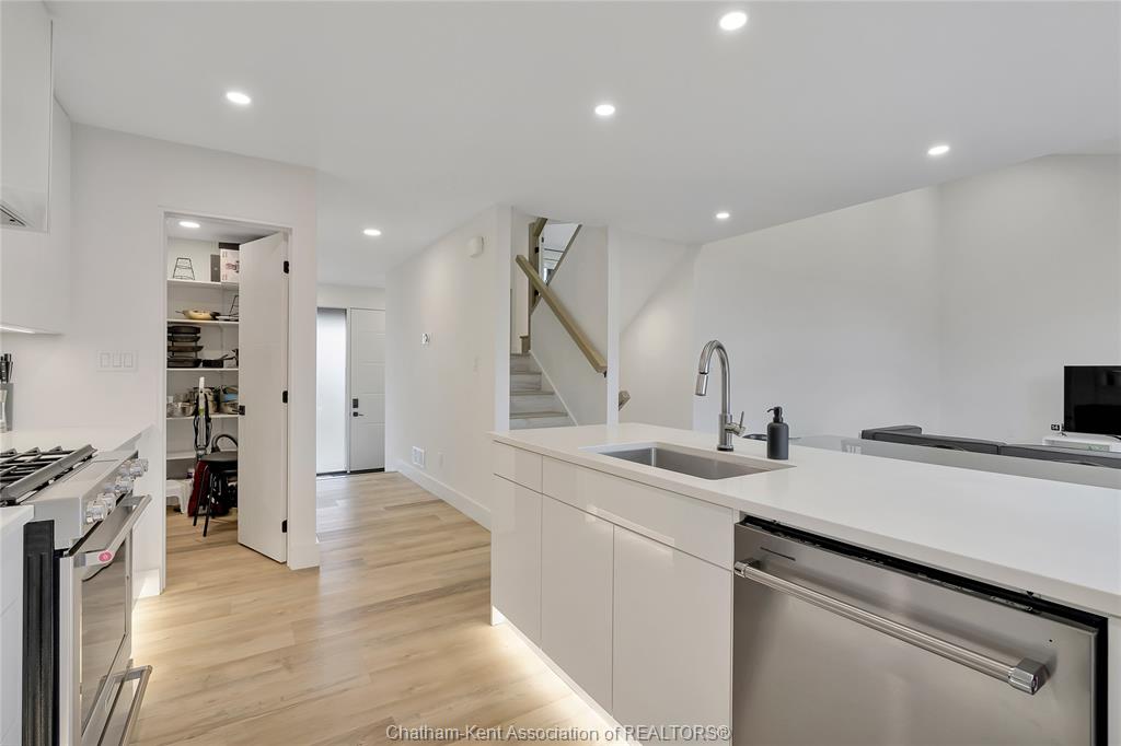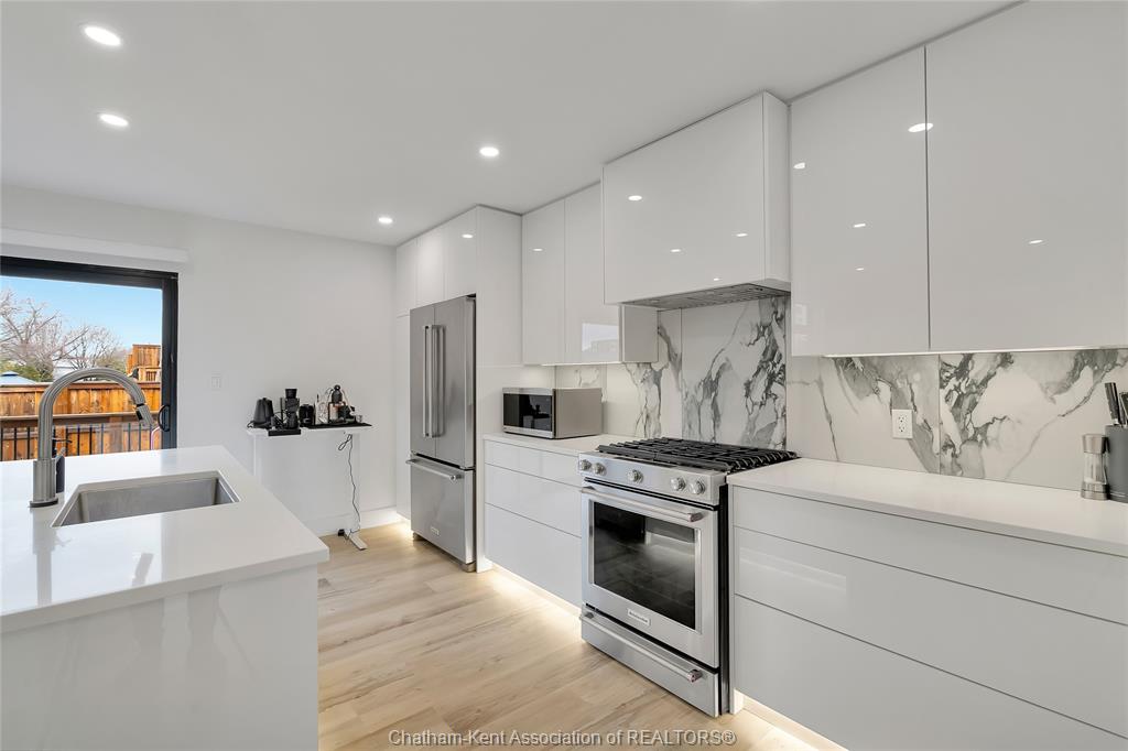 Modern style and thoughtful design shine in this beautifully finished 4-level side split at 15 churchill park. Featuring 3 bedrooms above grade plus a fourth in the fully finished lower level, the layout offers flexible living space ideal for families, guests, or a home office. Luxury grey vinyl flooring flows throughout, providing a durable, water- and scratch-resistant surface perfect for busy households with kids and pets. A hydronic hot water heating system delivers efficient, consistent warmth year-round. The standout kitchen blends function and elegance with quartz countertops, a farmhouse sink, kitchenaid stainless steel appliances, gas stove, walk-in pantry, soft-close and push-to-open cabinetry, under-cabinet and toe-kick lighting, a touch faucet, and an upgraded sensor garbage system. Contemporary finishes continue with cohesive black hardware, floating vanities with undermount lighting, and sleek builder-installed glass stair railings. A convenient 2-piece powder room sits just off the foyer. The third level is a private primary retreat with a spacious bedroom, walk-in closet, and stylish 3-piece en-suite with floating vanity. Laundry is also located here and includes quartz shelving for added storage and function. The fourth level offers two additional bedrooms and a full 4-piece bath, creating comfortable space for family or overnight guests. The fully finished lower level adds even more living space with an additional bedroom, full 3-piece bathroom, separate living area, and extra storage—ideal for extended family, teens, or visitors. Outside, enjoy a deck, fenced yard, concrete driveway, and gas bbq hookup for easy outdoor entertaining. With three full bathrooms, a powder room, modern finishes throughout, efficient hydronic heating, and a turnkey lower level, this move-in ready home delivers the perfect blend of style, comfort, and functionality. Book your showing today.