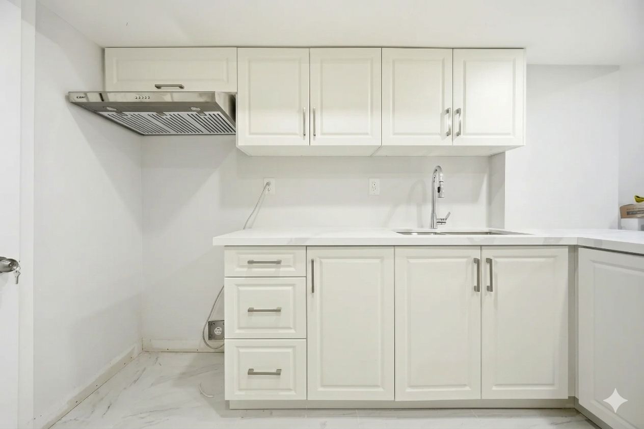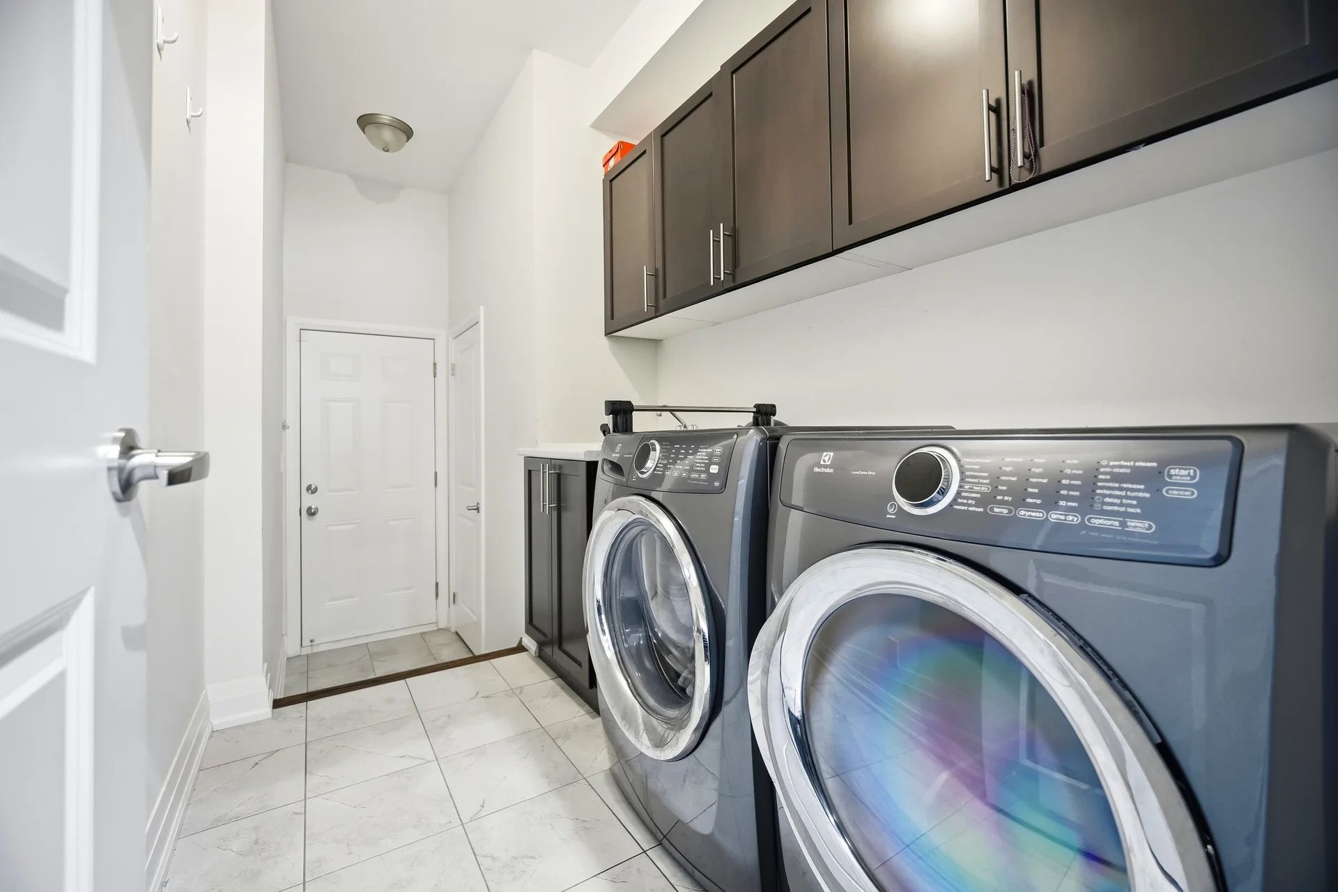 • Elegant kitchen with stainless steel appliances and ample counter space.