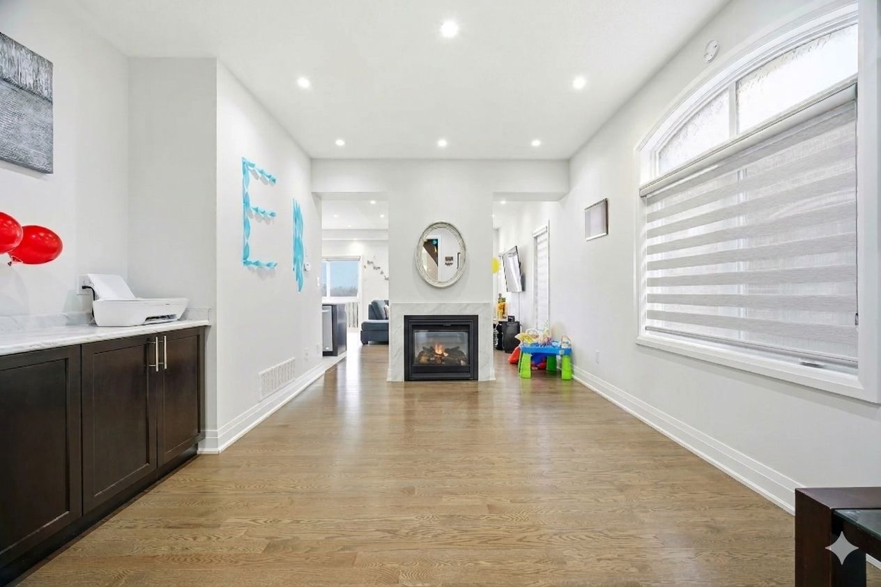 • Spacious open concept layout with hardwood flooring and cozy fireplace.