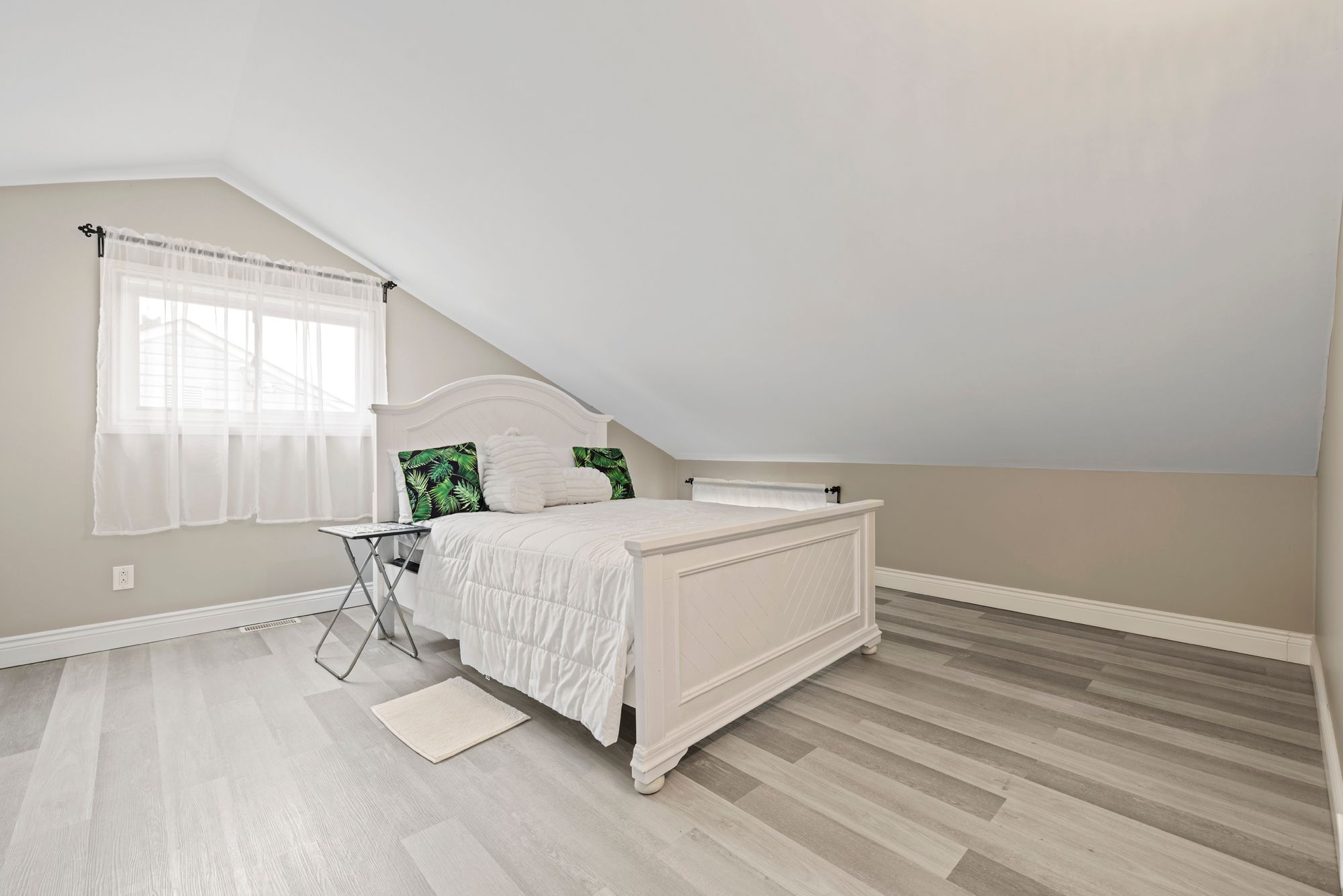 Welcome to this well-maintained 2-storey, 3-bedroom, 2-bathroom home. An excellent opportunity for first-time buyers or growing families. The main level features two bedrooms and a bright, open-concept living and dining area, ideal for everyday living and entertaining. The upper level offers a private primary suite complete with an ensuite bathroom, along with an additional versatile space that can be used as a home office, reading nook, playroom, or den. Cathedral ceilings enhance the sense of space and natural light throughout the home. Recent updates include a newer roof (2022) and a finished stucco exterior. The double driveway provides parking for up to four vehicles. Enjoy a fully fenced backyard with a built-in shed, offering both storage and a great setting for outdoor gatherings. Conveniently located just steps from centre on barton and minutes to ottawa street's shops, cafés, and restaurants. Transit, highways, hospitals, and other key amenities are all nearby. A move-in ready home offering comfort, functionality, and an excellent location.