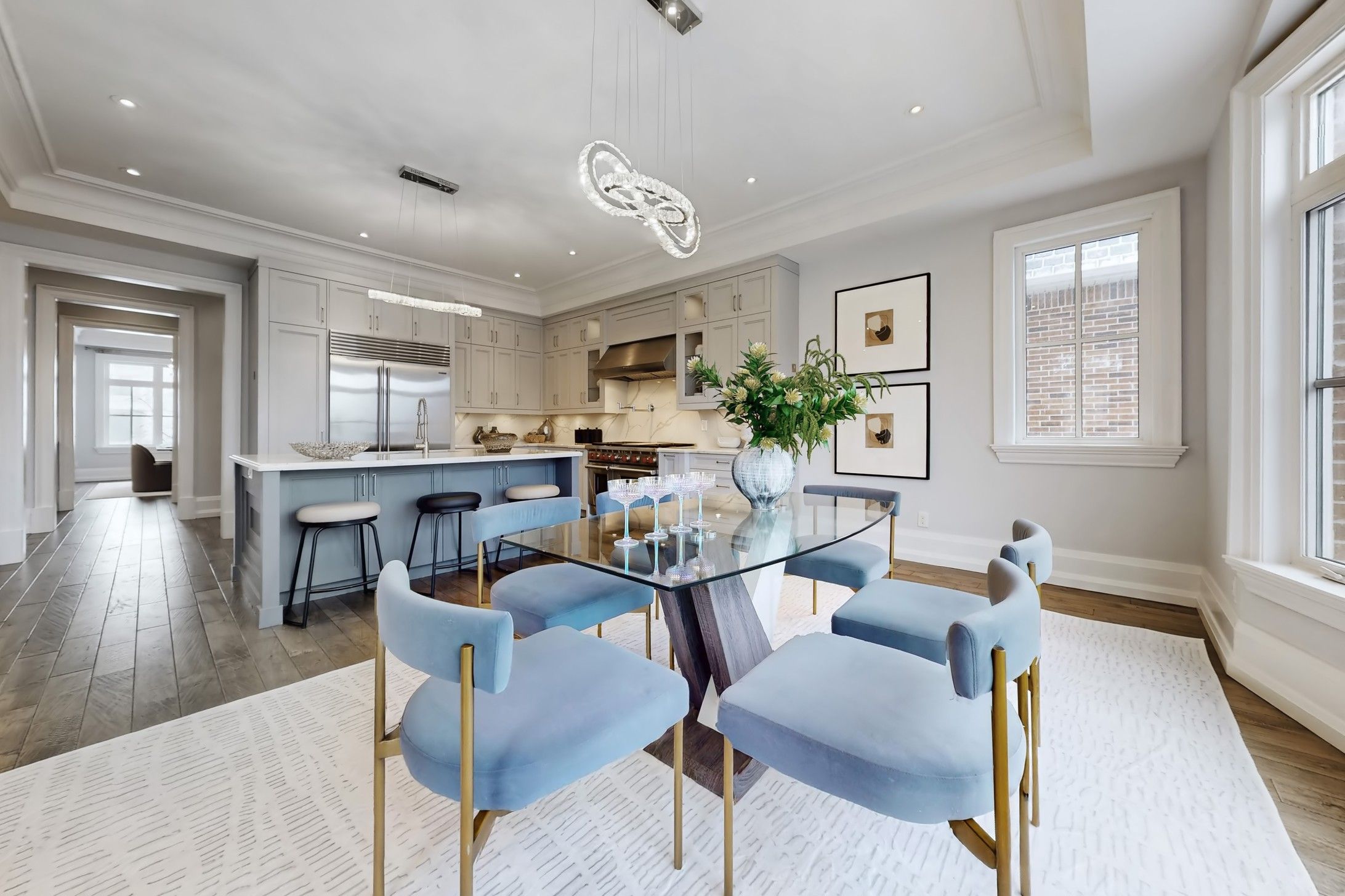 Situated in aurora's most prestigious gated enclave, this custom-built estate embodies privacy, security, and timeless sophistication, set against the backdrop of a stunning ravine with captivating views. Designed for elegant living and everyday comfort, the home features a gourmet kitchen with top-tier sub-zero fridge and freezer, wolf gas range and oven, a grand family room with coffered ceilings and fireplace, refined formal living and dining areas, and a private study, all seamlessly connected by an elevator to every level. The primary suite offers a tranquil retreat with its own fireplace, spa-inspired ensuite, and dual walk-in closets. Each additional bedroom features its own ensuite and walk-in closet. Heated floors in all second-floor bathrooms, a convenient laundry room, and exquisite finishes enhance everyday living. The walk-out lower level expands the lifestyle with a second kitchen, oversized bedrooms, multiple bathrooms, a covered porch, and breathtaking ravine views. Featuring three fireplaces, dual hvac and laundry systems, in-ground sprinkler system, a three-car garage, and parking for up to eight vehicles, this exceptional home delivers a rare blend of luxury, functionality, and natural beauty in one of aurora's most exclusive settings. Ideally located less than 10 minutes from st. Andrew's college, st. Anne's school, and country day school, this residence offers both luxury and convenience.