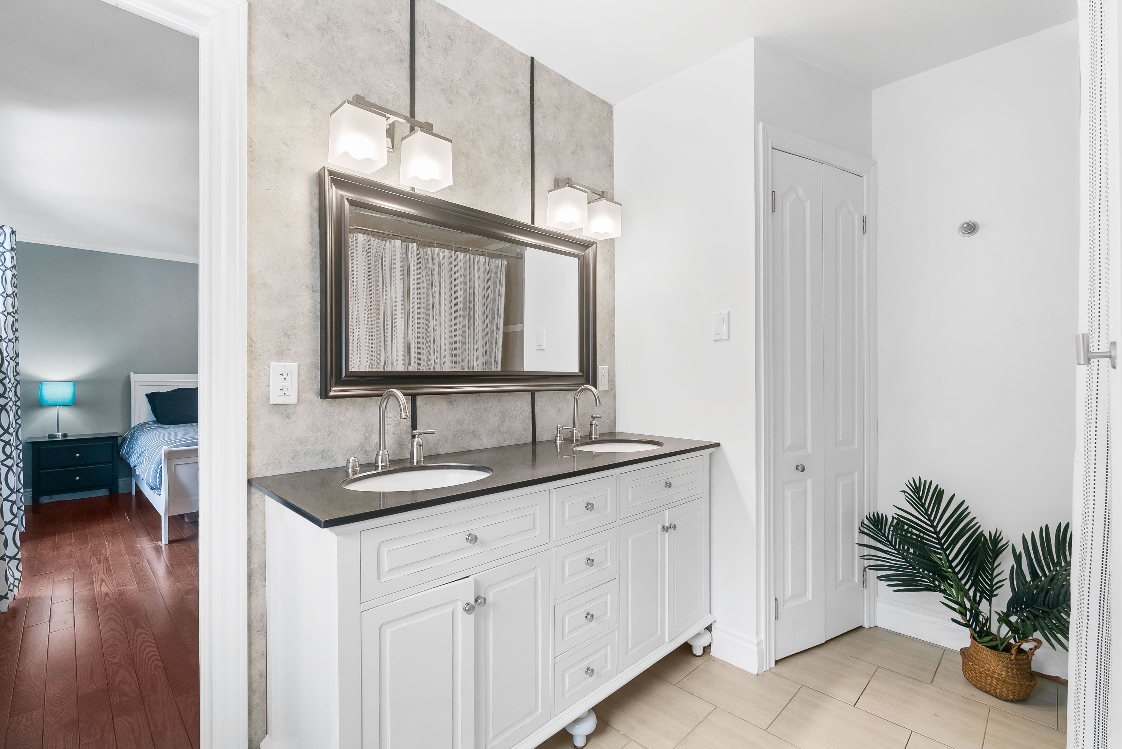 • Finished lower level features a second kitchen, living area, and extra bedroom.