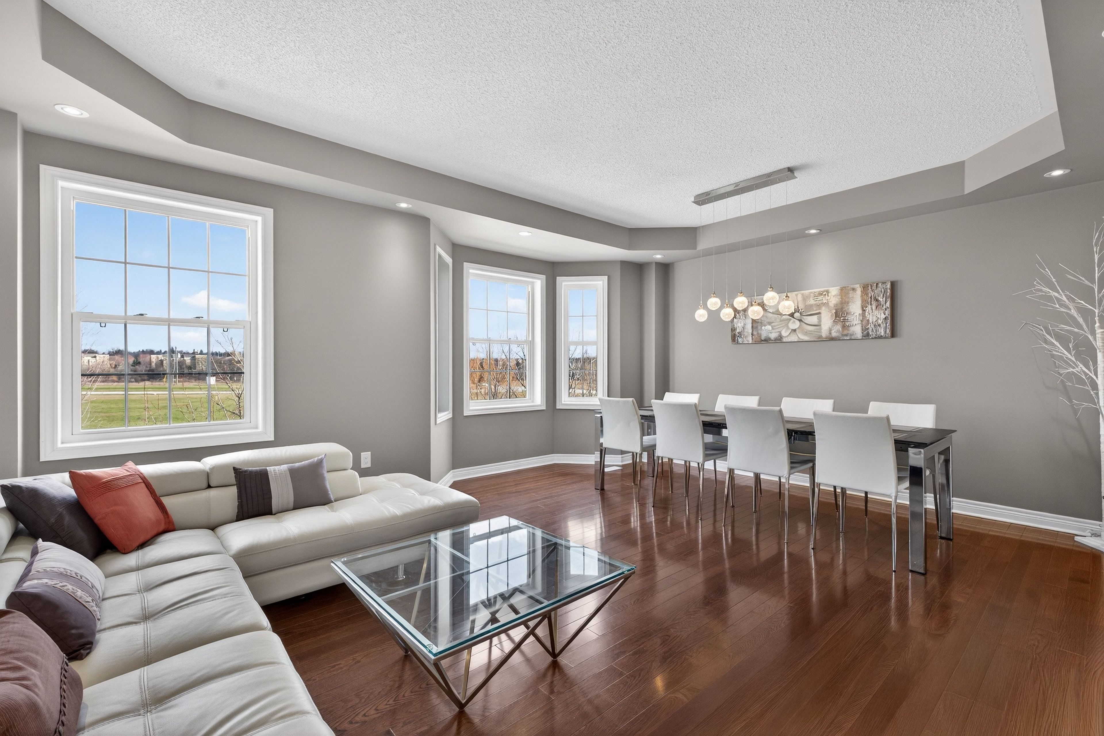 A true "four-season host" home! From al fresco evenings on the terrace to cinematic nights in the lower-level lounge, this home is crafted for the modern host. 15 donald buttress blvd e. Is the extra-large end-unit townhome in prestigious cathedral town, a well-established community in the heart of markham. This home is well loved & maintained, overlooking the iconic cathedral and offering an oversized double-car garage, with over 3300 square feet of thoughtfully designed living space, ideal for growing families or multi-generational living - featuring two primary bedrooms, each with its own ensuite bathroom and walk-in closet. Soaring 9' ceiling on second floor, open-concept living & dining rooms, and a cohesive layout perfect for both entertaining and everyday living. The dream kitchen offers an oversized island/breakfast bar, quartz countertops, undermount double-sink, ample cabinets space, stainless steel appliances, and a butler's pantry. The spacious family room with a gas fireplace walks out to a sunny south-facing terrace. The interior is beautifully curated with designer-inspired wall colours, warm materials, and a timeless neutral palette. Fine finishes include detailed wainscoting, pot lights, and hunter douglas shades throughout. The finished lower-level, a versatile extension of your living space, perfect for a media zone, karaoke setup, or relaxed conversation. A chic wet bar enhances the space, while a flexible room can serve as a gym, office, guest room, library, or storage. Professionally landscaped interlocked front yard further enhances the home's curb appeal. This is a home that understands what you want - space, comfort, and a great location close to top school zone (st. Augustine catholic hs, nokiidaa ps, richmond green ss) & amenities, minutes to hwy 404, costco, smart centre, go station, t&t, etc. Extra: new main roof (2026, 10 year warranty). Ready for you to call home, see it today!