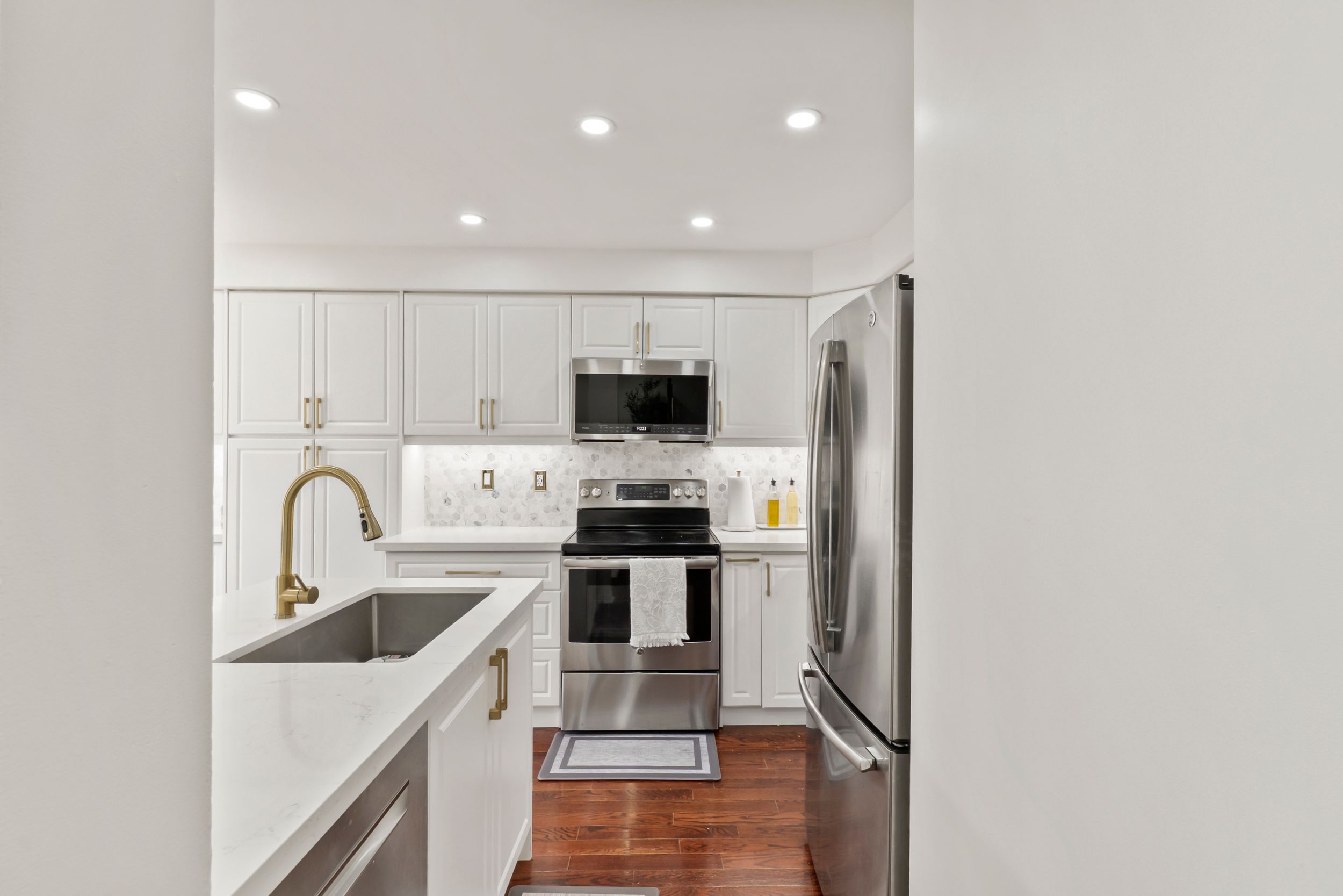 • Updated kitchen with quartz countertops and backyard access.