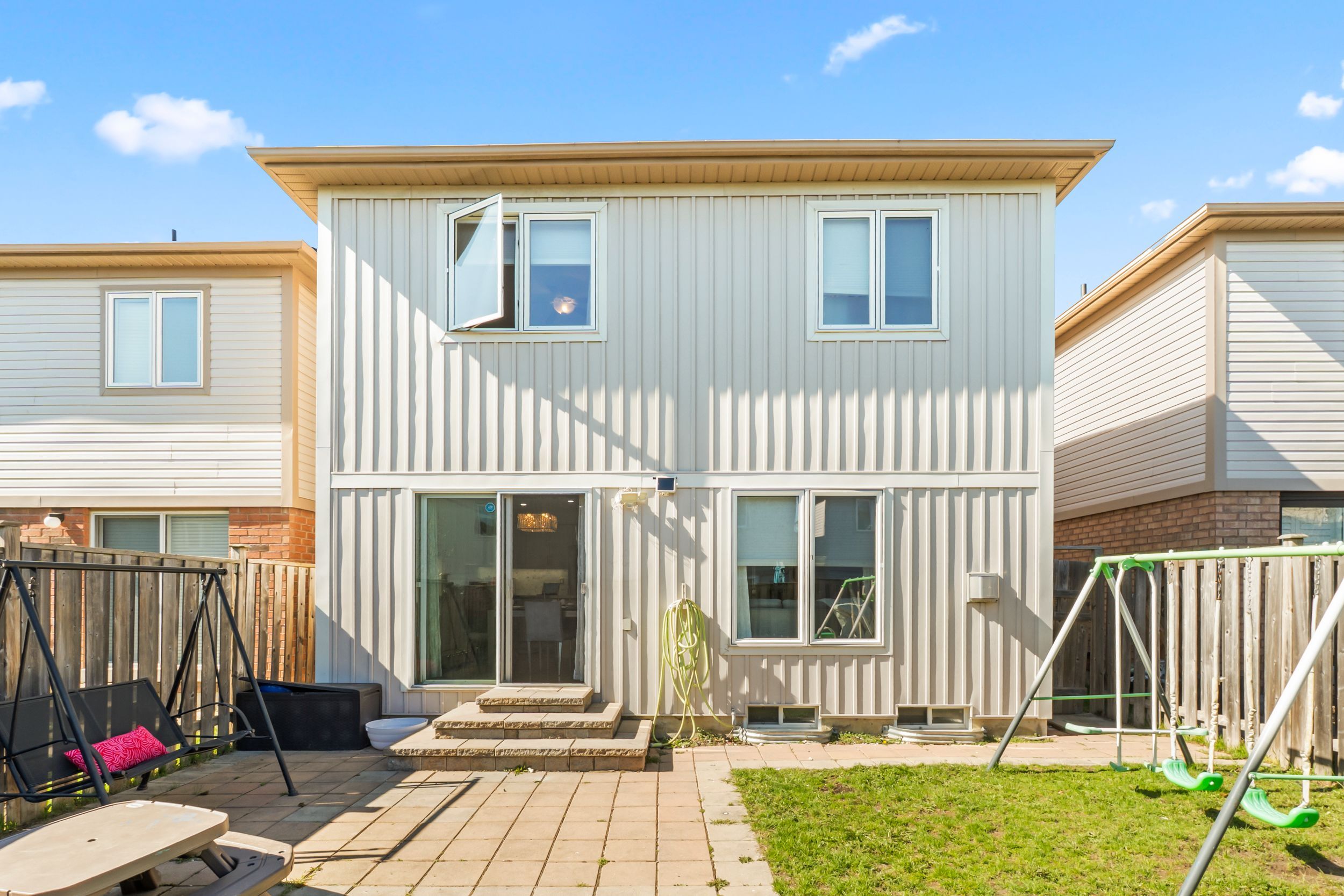 Located on a quiet crescent in desirable north whitby, this well-maintained 4-bedroom home offers a bright, open-concept layout designed for comfortable everyday living. The main floor features hardwood floors, 9-foot ceilings, pot lights, and a beautifully updated kitchen (2023) with quartz countertops and walk-out to the backyard. Upstairs, the primary bedroom includes a walk-in closet and 4-piece ensuite, with well-sized additional bedrooms. The family bathroom was fully renovated in 2023. Key updates include roof (2024), owned furnace and a/c, and interlocking for additional parking. No sidewalk. Basement includes rough-in. Steps to mckinney centre, parks, schools, shopping, and major routes.
