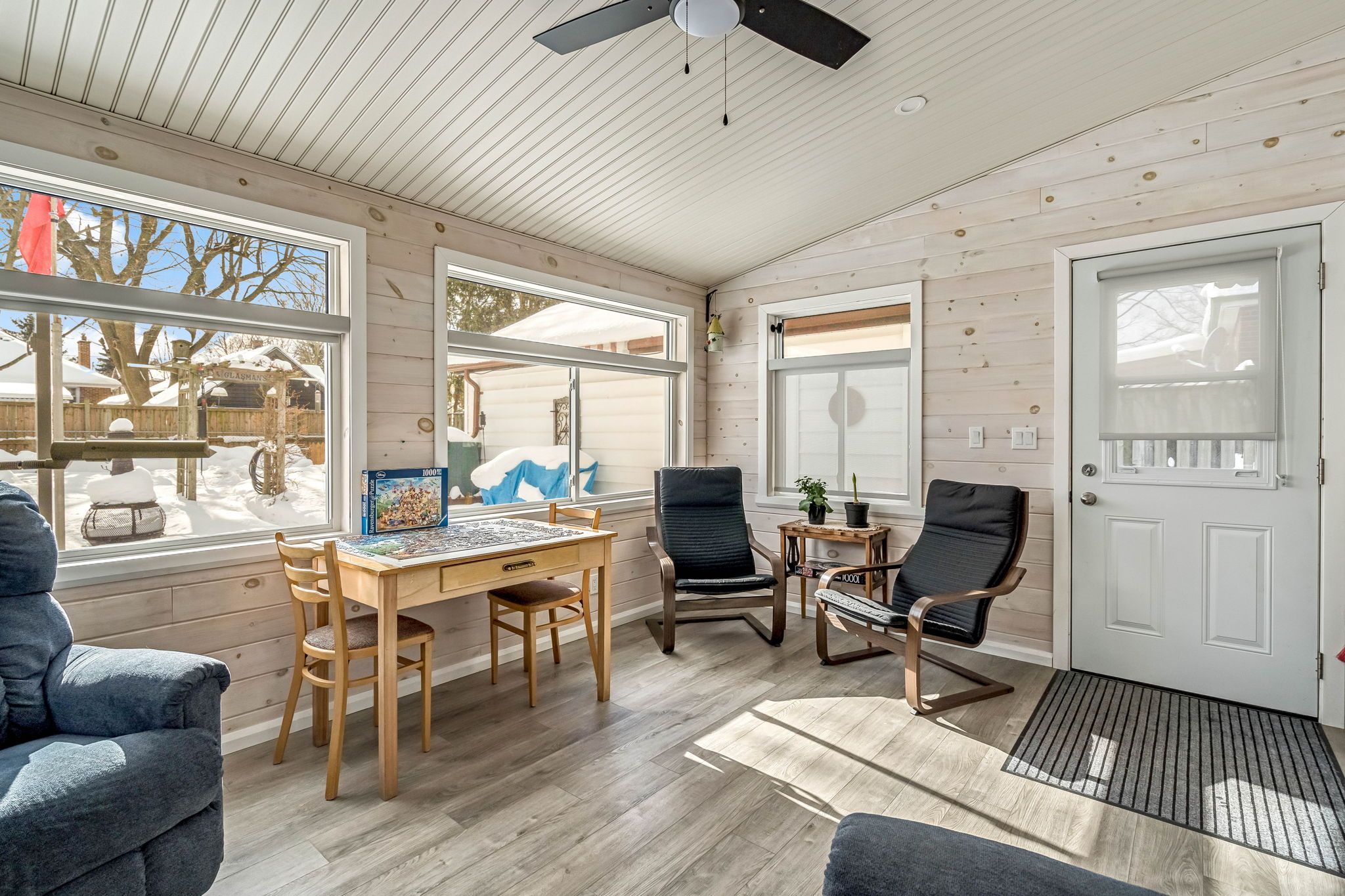Tucked away on a quiet dead-end street, this well-maintained 2-bedroom, 2-bathroom bungalow offers bright, comfortable one-level living. Large windows throughout the home provide an abundance of natural light. A sunroom addition (2023) creates an inviting space to relax year-round and overlooks a private, lush backyard with established gardens offering seasonal colour. The finished basement adds valuable additional living space, along with extra storage and a dedicated workshop area. A detached single-car garage offers added convenience. A wonderful opportunity to enjoy privacy, functionality, and outdoor living in a peaceful, low-traffic setting. Close proximity to the 401, bus routes and amenities.
