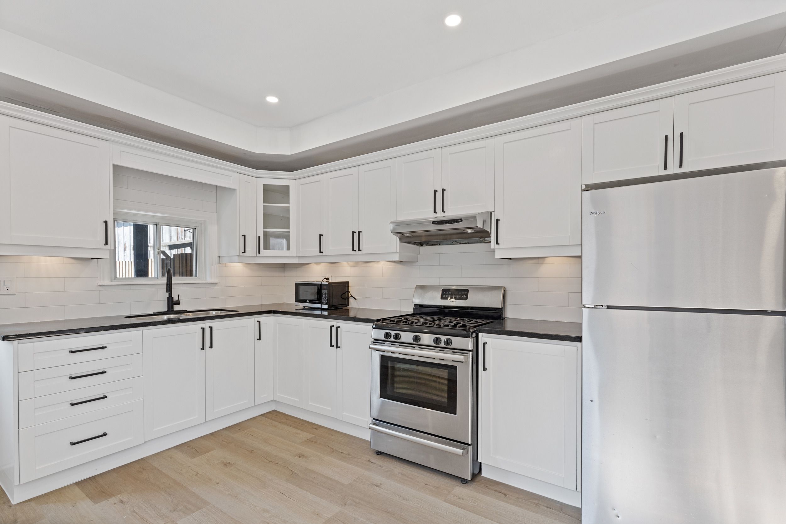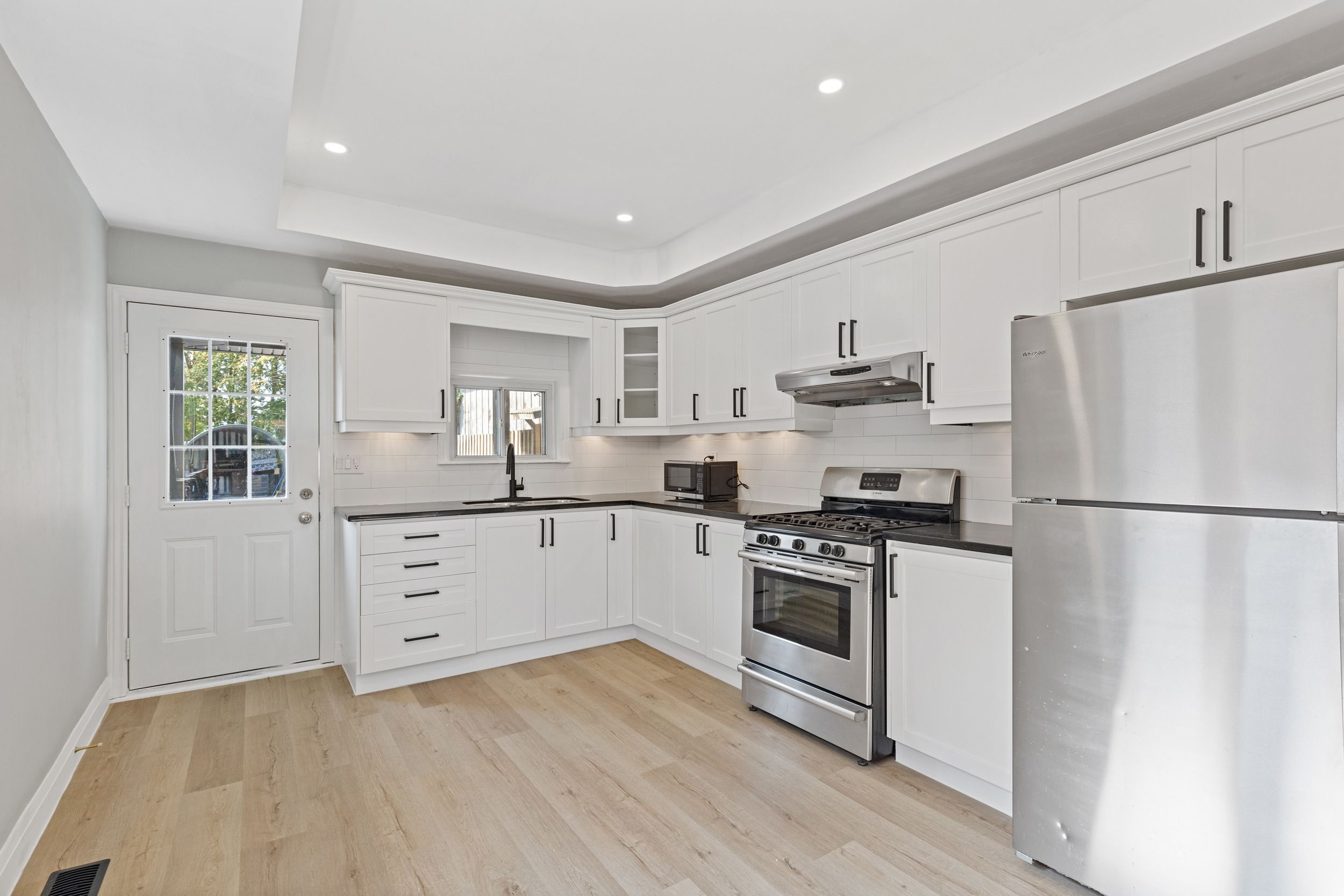 Stunning fully renovated home. Location in a family orientated area. Walking distance to shops & all amenities. Beautiful large backyard for entertaining. Large storage space, parking for 3 cars. Newly renovated kitchen w/ s/s appliances & granite countertops, 3 bedrooms with ample closet space, 2 four-piece bathrooms w/ w/o basement apt including kitchenette in bsmt. Newer a/c system. Beautiful well kept home