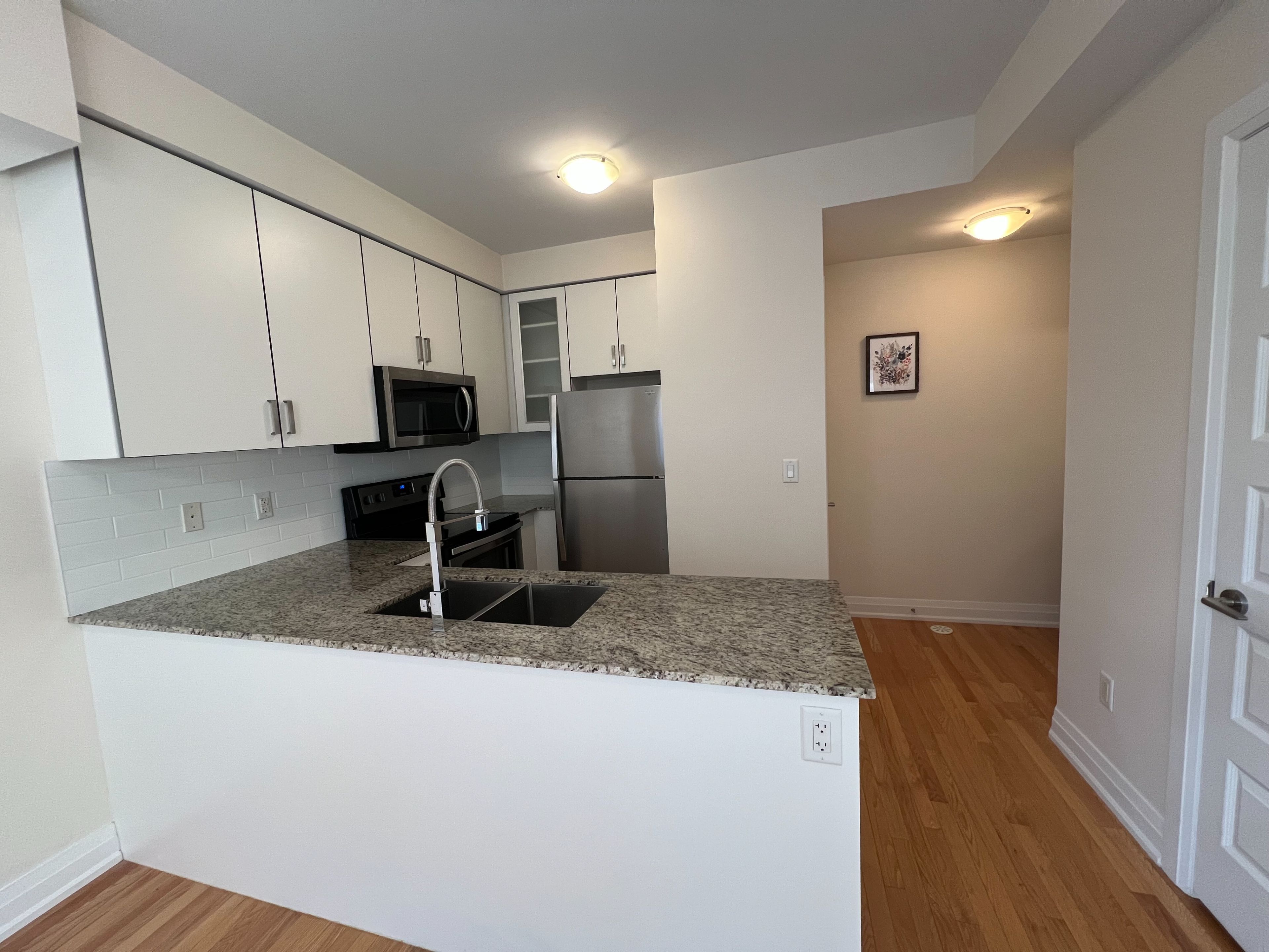 • Modern kitchen featuring quartz countertops and stainless appliances.