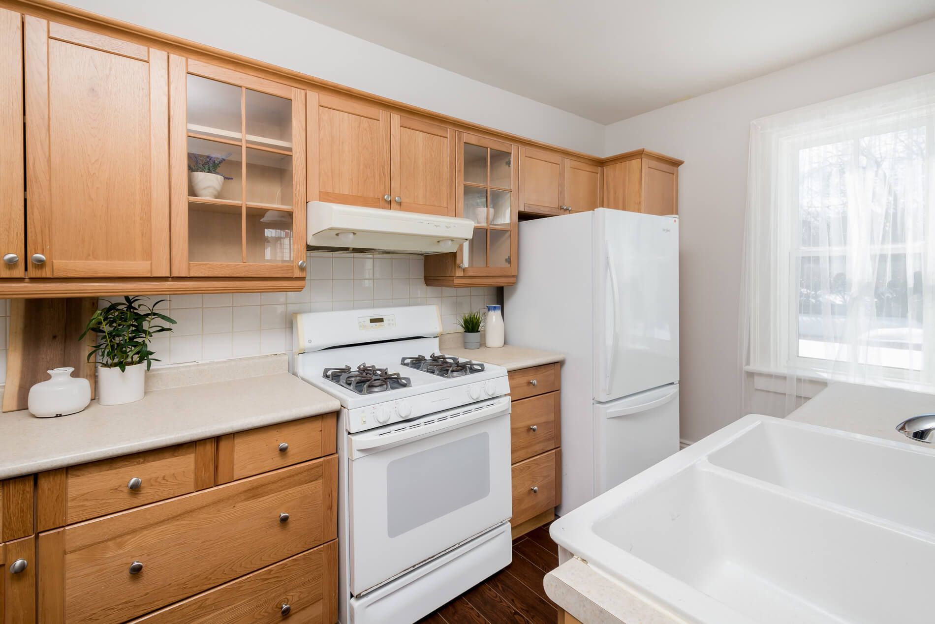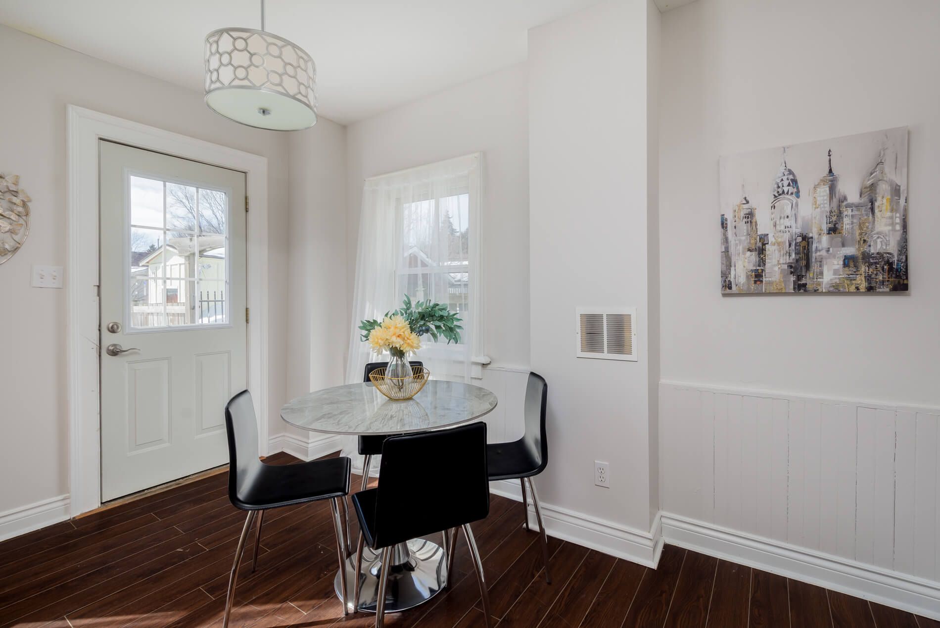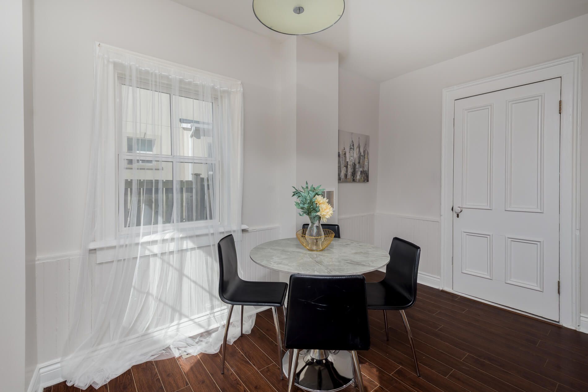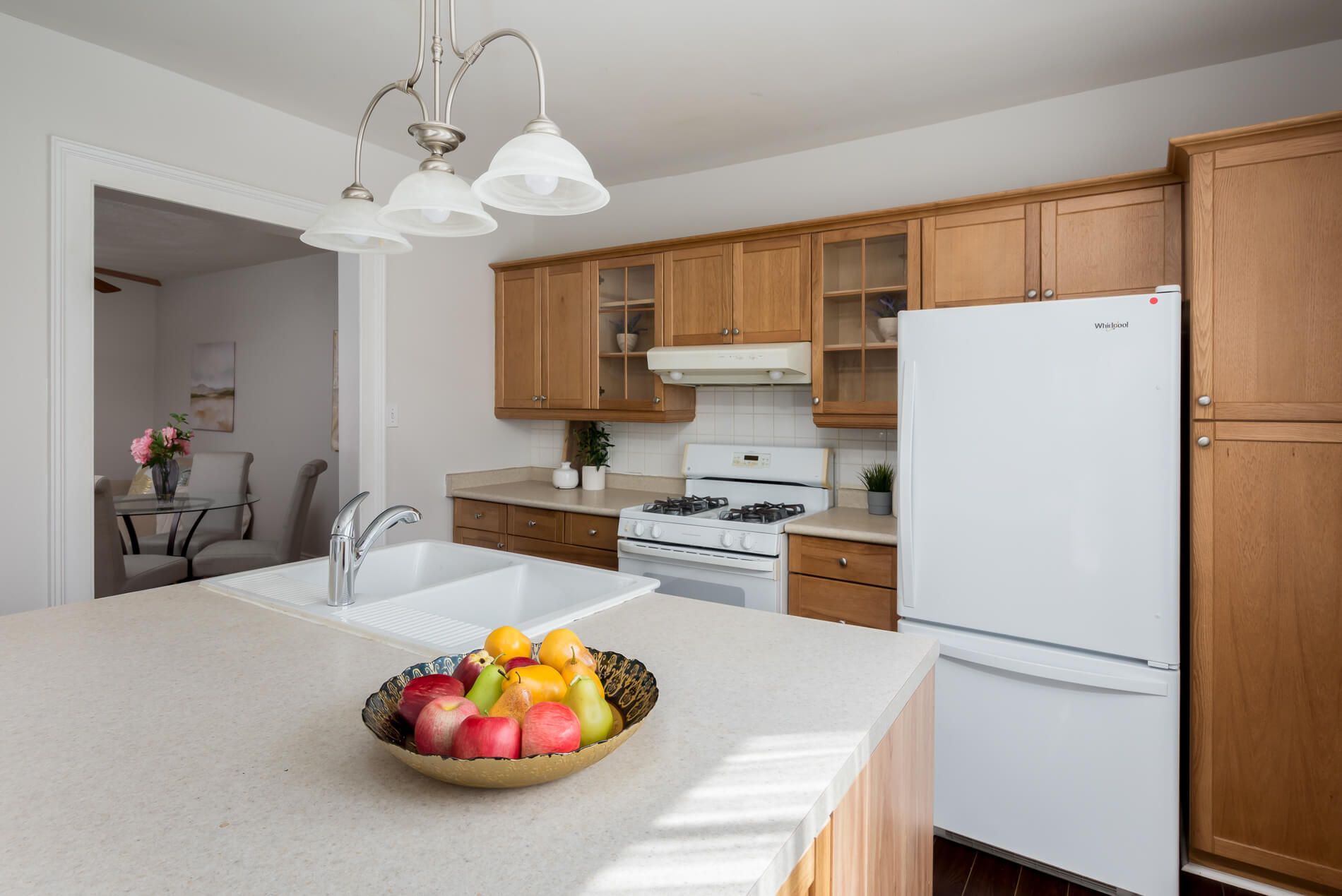 • Renovated eat-in kitchen with plenty of cupboard space and breakfast bar.