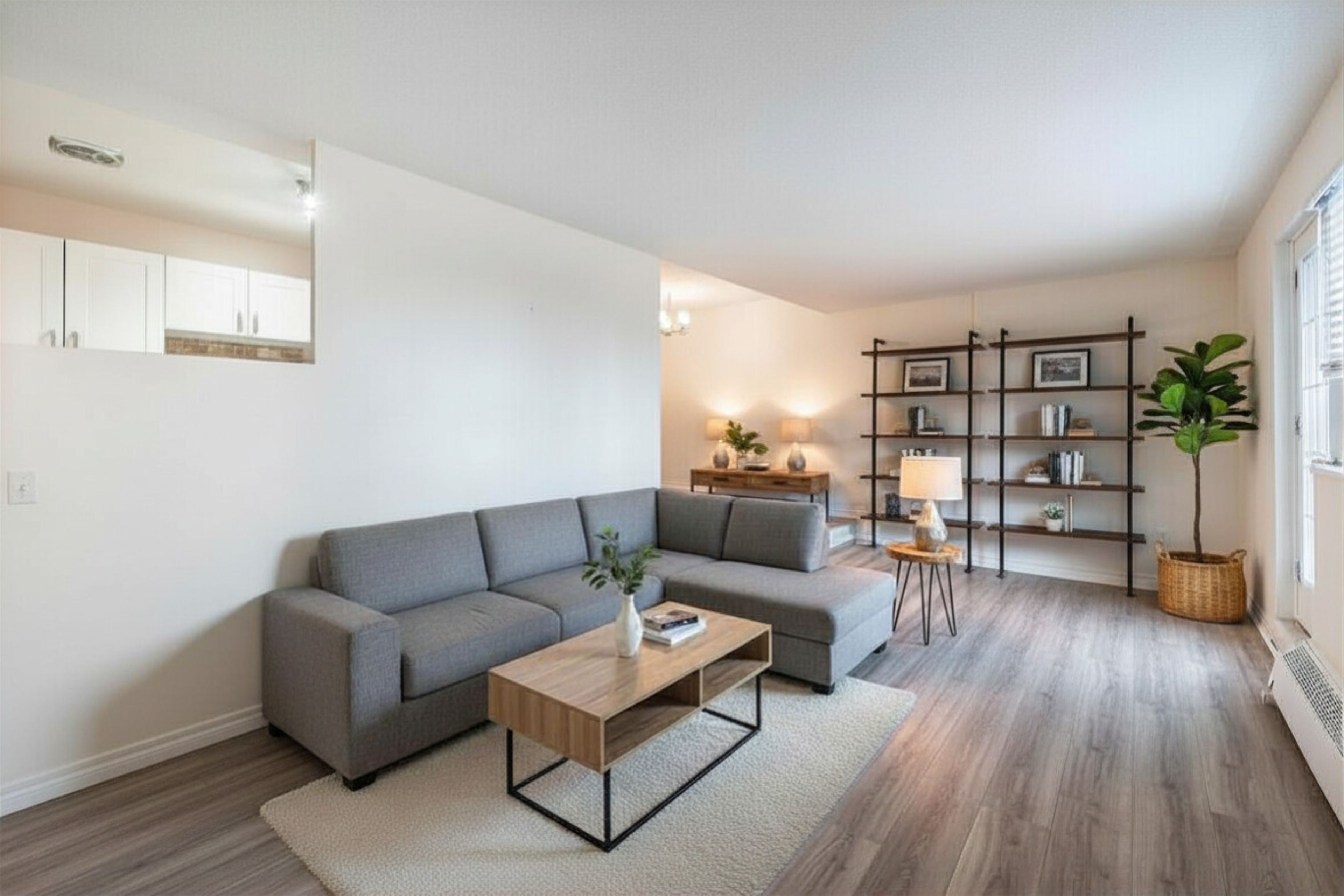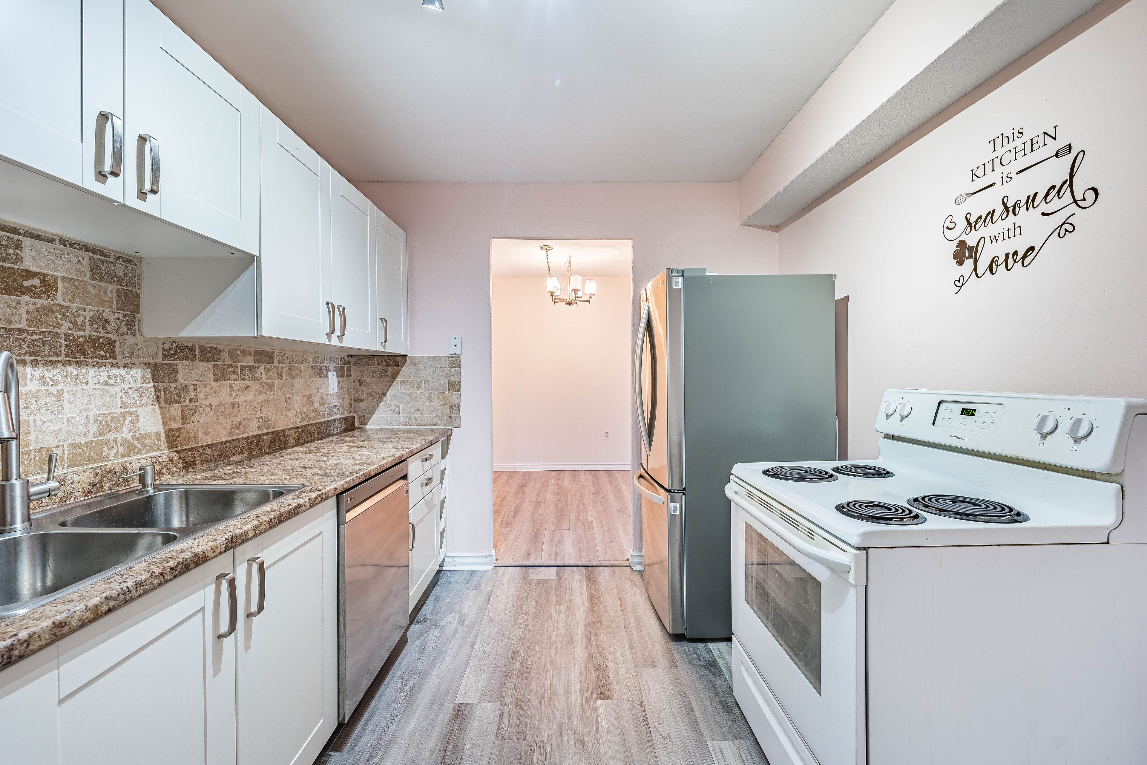 • Updated kitchen and fresh laminate flooring for a modern touch.