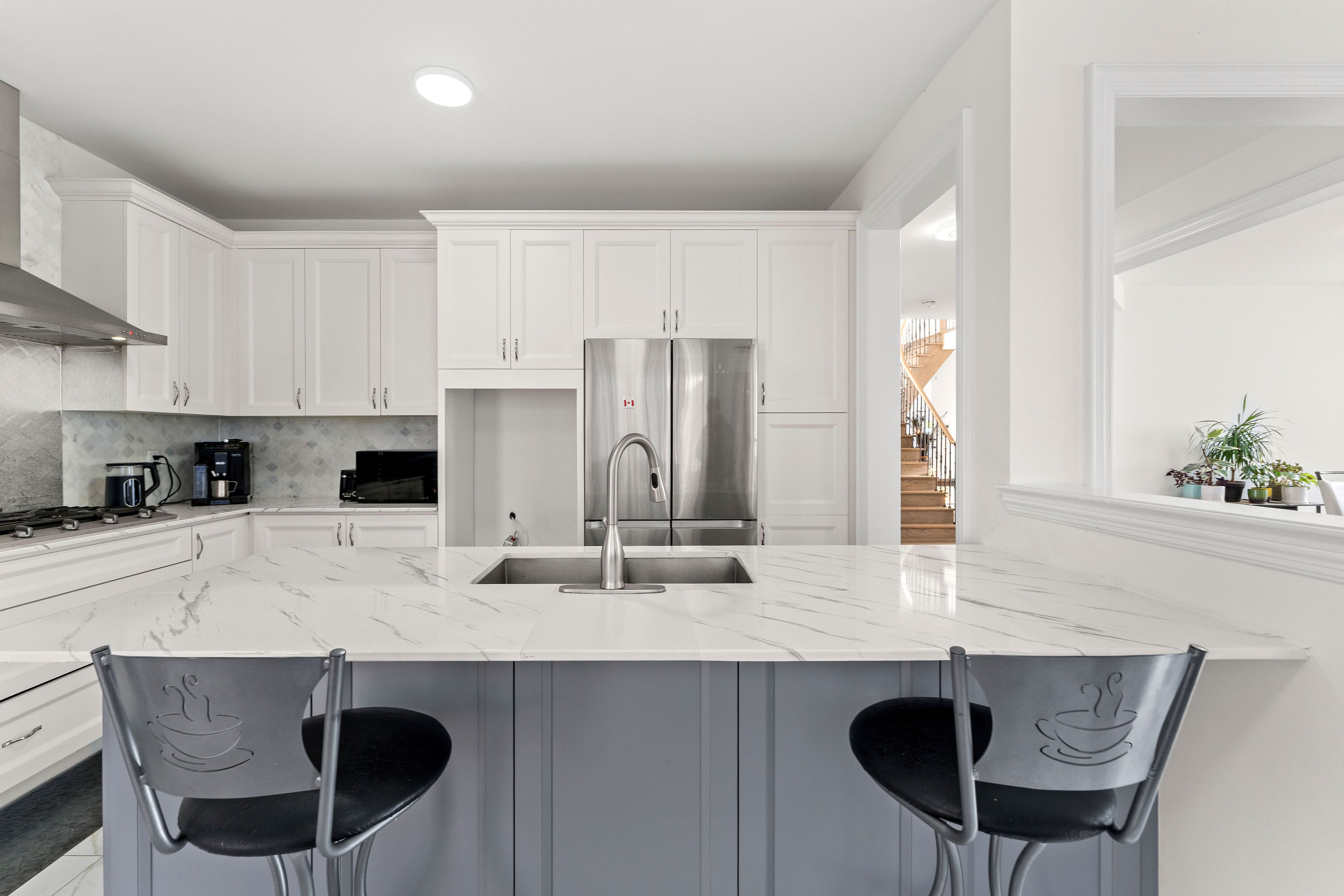 • Modern kitchen featuring stainless steel appliances and quartz countertops.