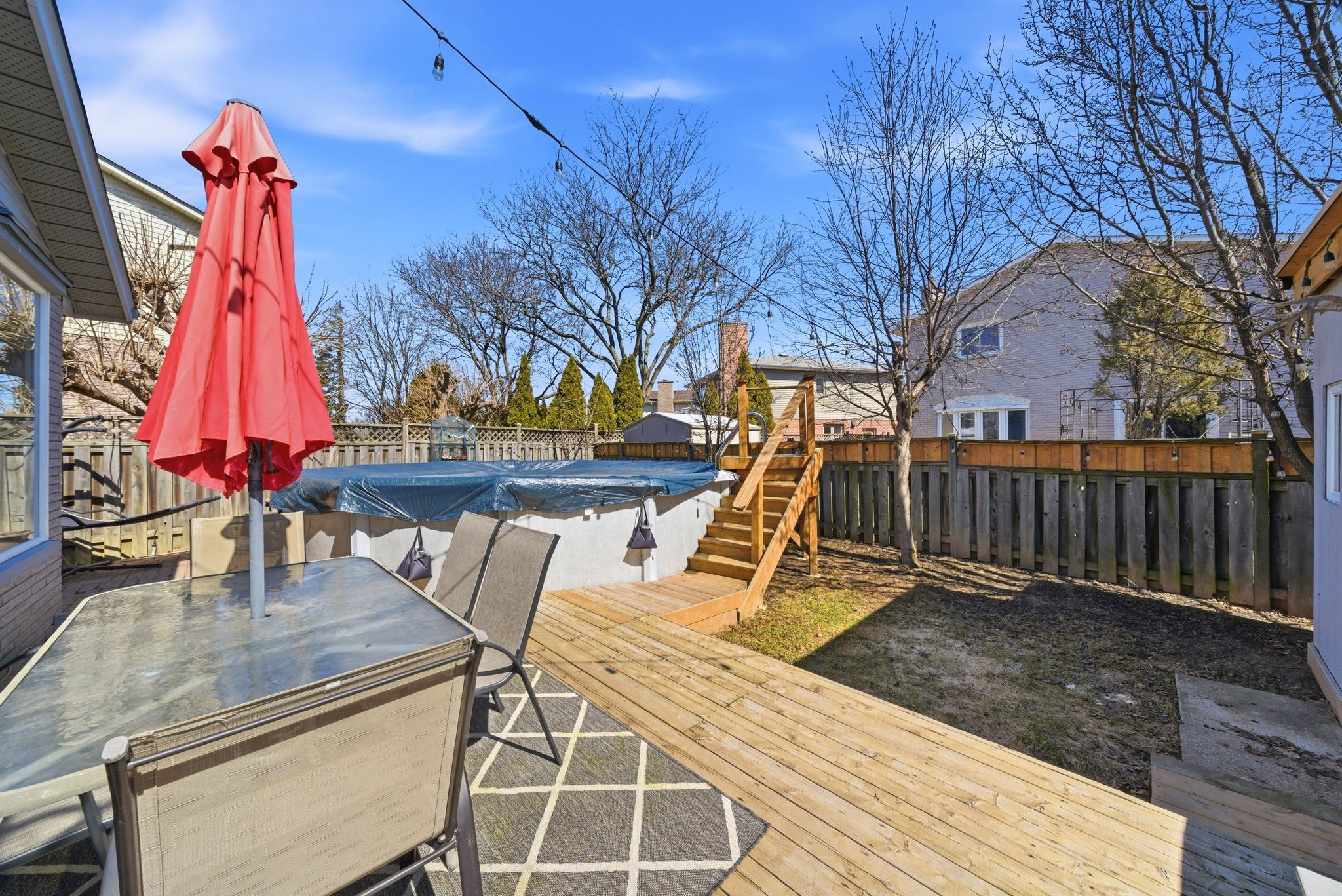 • Private backyard with deck, above-ground pool, and hot tub for entertaining.