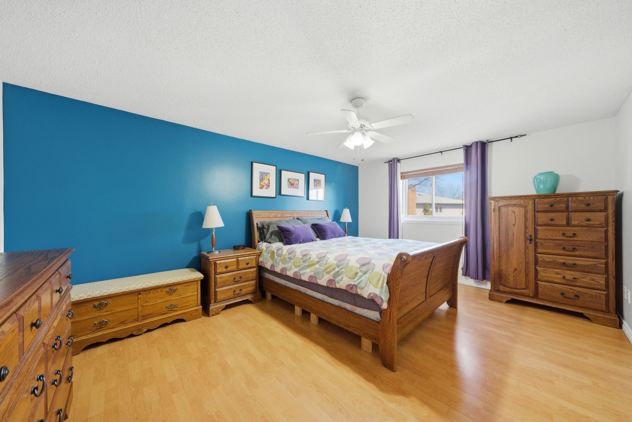 • Upstairs primary retreat with walk-in closet and private ensuite.