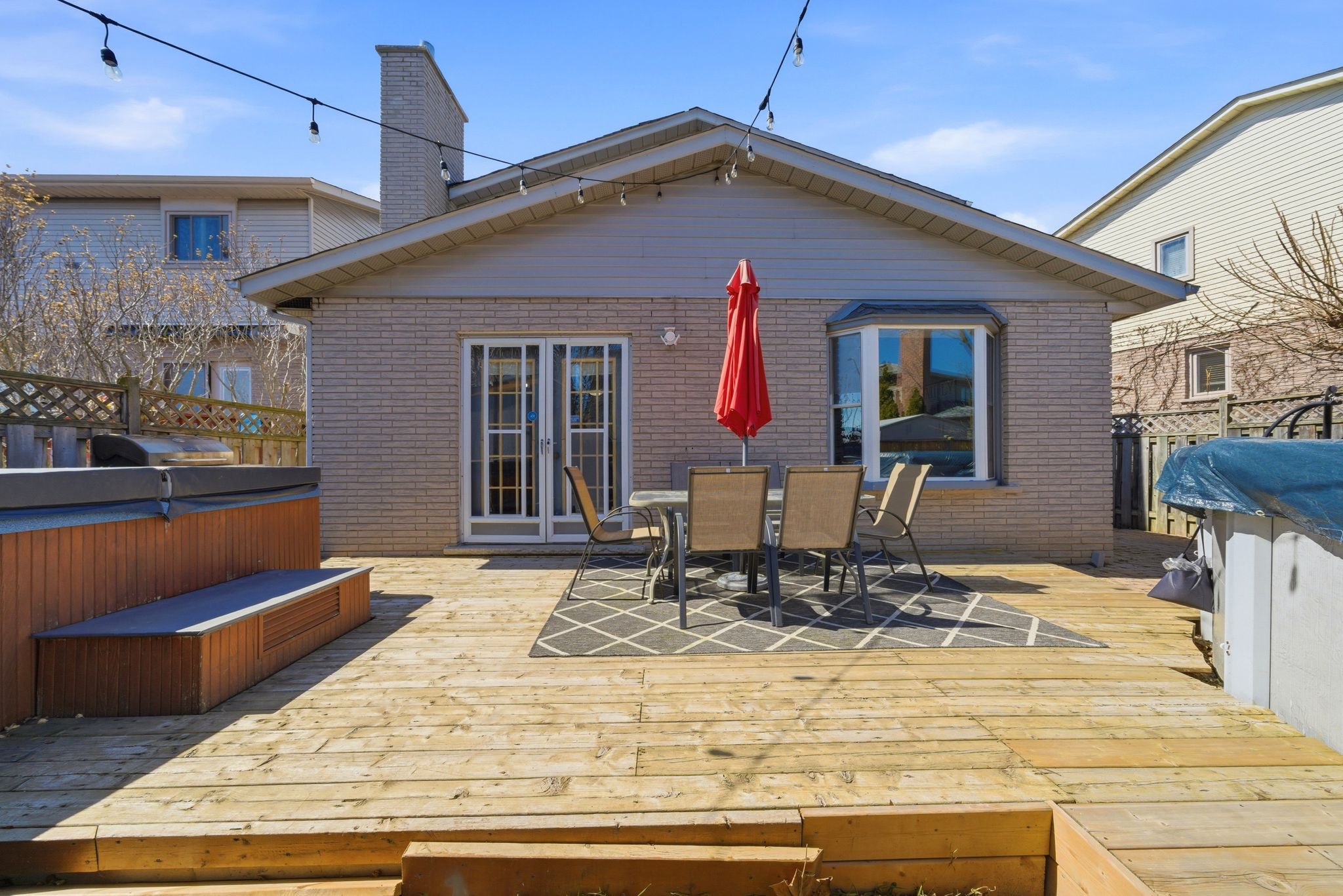 • Private backyard with deck, above-ground pool, and hot tub for relaxation.