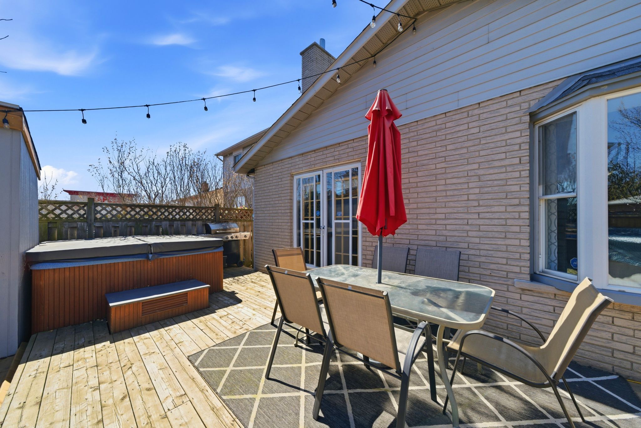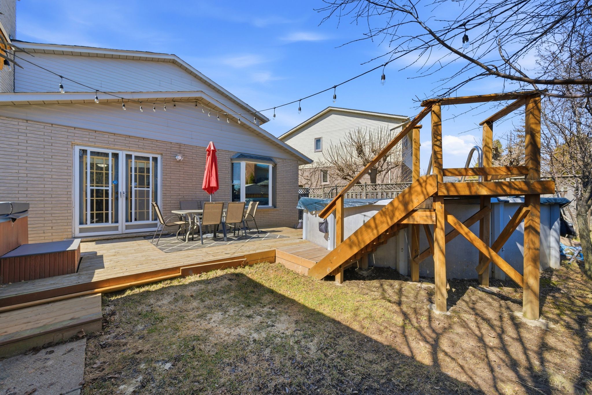 • Private backyard with deck, above-ground pool, and hot tub for entertaining.