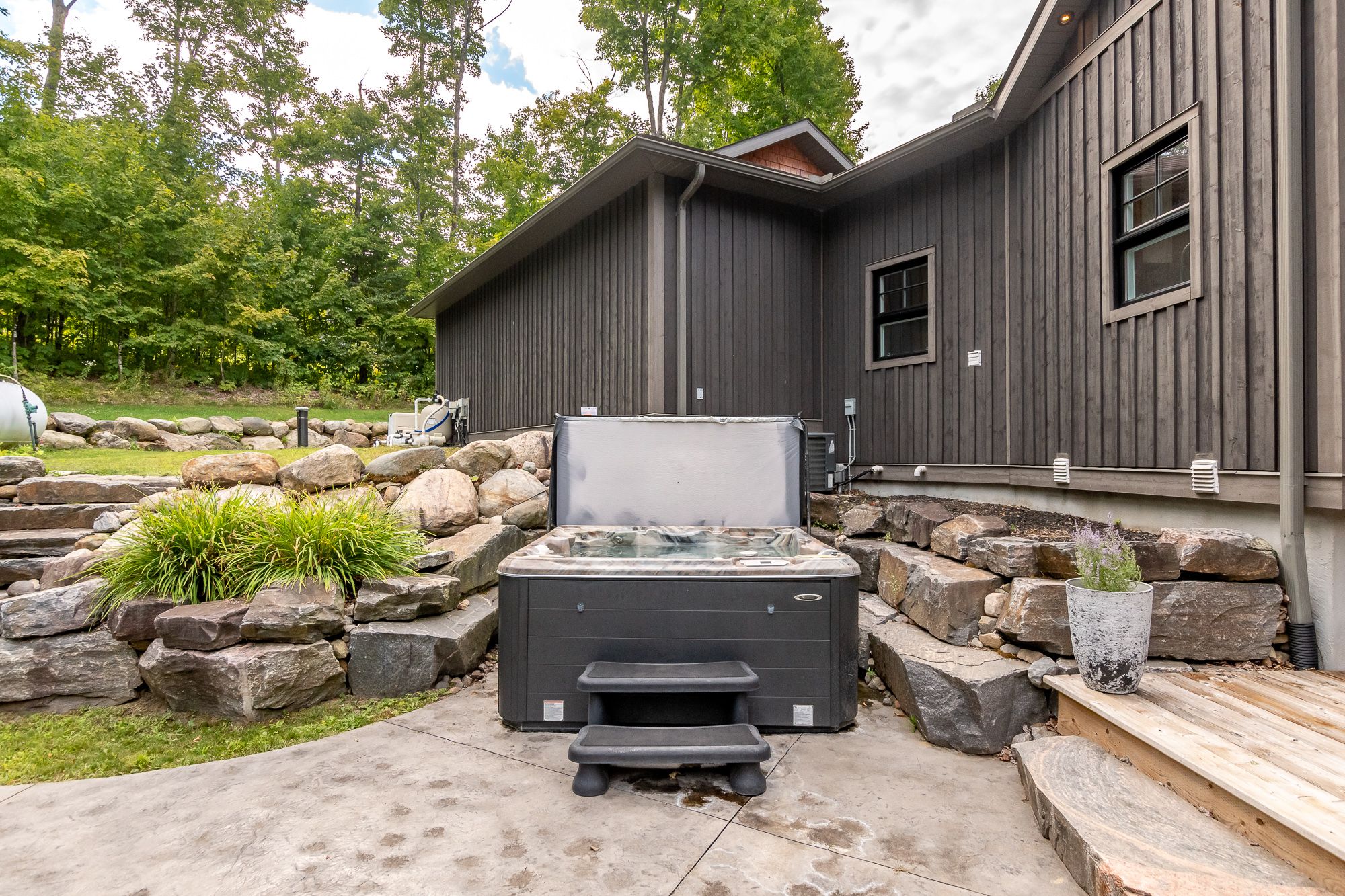 Subtype DetachedIndoor Features ERV/HRV, Primary Bedroom - Main Floor, Propane Tank, Water Heater OwnedOutdoor Features Deck, Hot Tub, Landscaped, Porch, Year Round LivingAmenities Cul de Sac/Dead End, Hospital, Wooded/TreedOwnership FreeholdViews Trees/WoodsWaterfront NoneBasement Finished with Walk-OutFoundation Insulated Concrete FormHeating / Cooling Forced AirHeating Fuel PropaneSewer Septic
