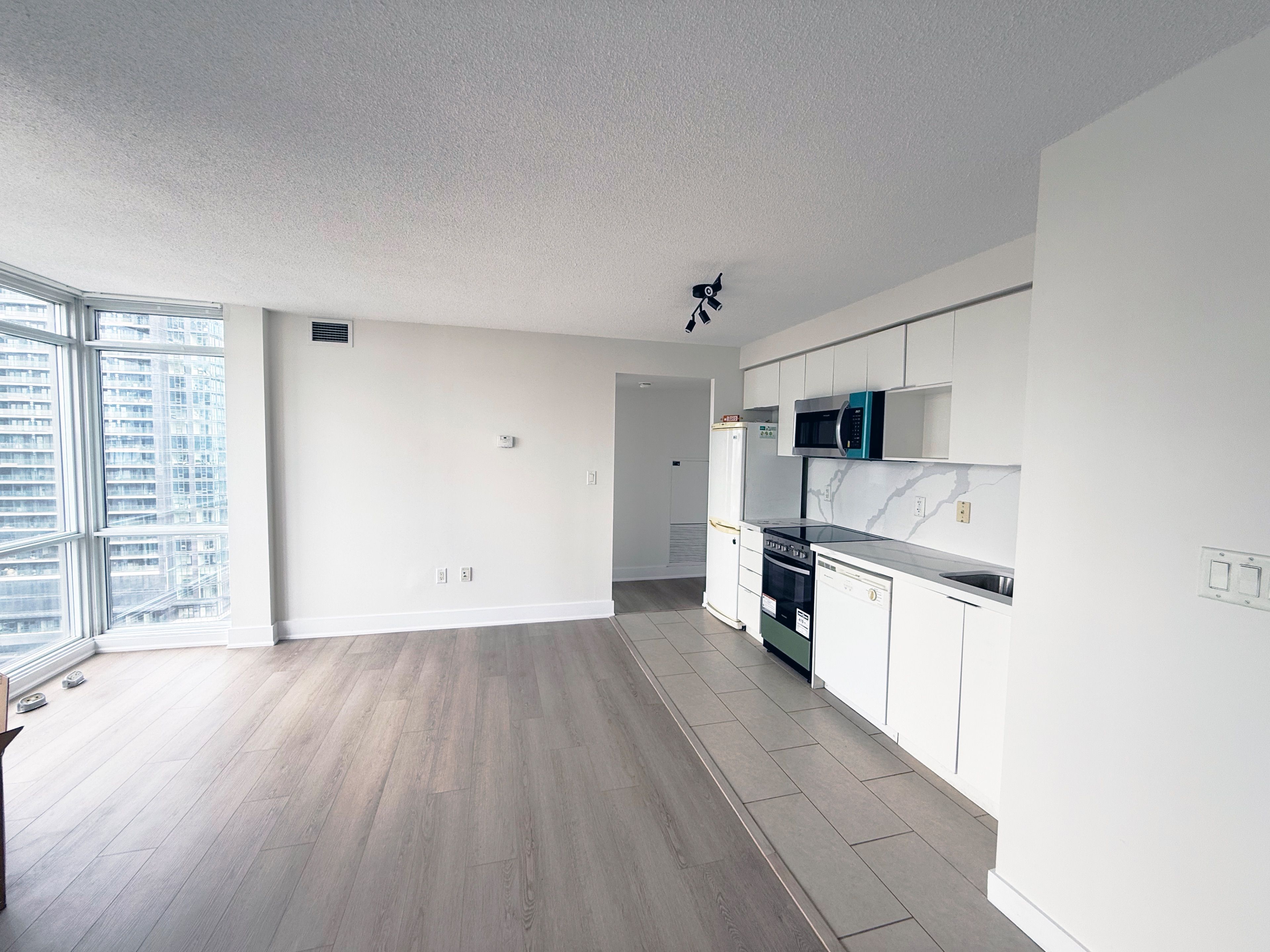 Experience downtown toronto luxury living! Step into this stunning, fully renovated condo in the heart of toronto. Sun-drenched and thoughtfully designed, this spacious suite features brand-new premium flooring, freshly painted walls and ceilings, and a sleek modern kitchen with quartz countertops, a matching backsplash, and brand-new oven and microwave. Move-in ready, it perfectly combines style, comfort, and everyday functionality. Located in the vibrant cityplace community, you're just steps from toronto's finest restaurants, cafes, bars, and iconic attractions, including the waterfront, stackt market, cn tower, rogers centre, scotiabank arena, and fort york national historic site. With quick access to union station, ttc, and the gardiner expressway, commuting and exploring the city is effortless. Enjoy resort-style amenities right at home: 24-hour concierge service, indoor pool, fully equipped fitness centre, party room, guest suites, visitor parking, sauna, and even a basketball court-perfect for an active urban lifestyle. Whether you're a professional, a couple, or anyone seeking a stylish, centrally located home, this condo offers the ultimate in modern city living. Don't miss your chance to live in one of toronto's most sought-after neighborhoods!