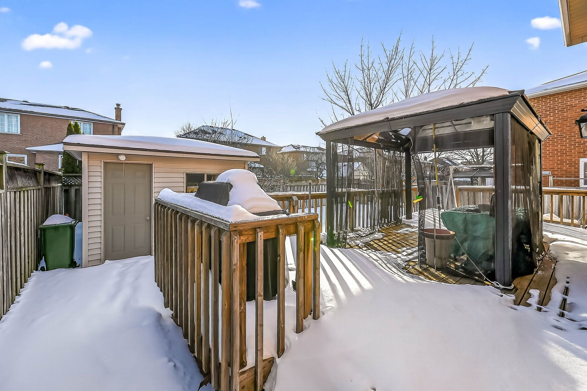 • Private yard with gazebo and custom shed offers extra outdoor enjoyment.