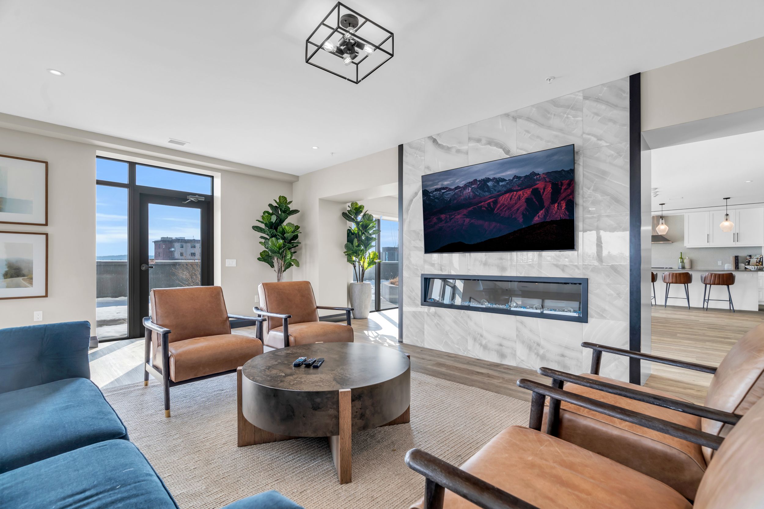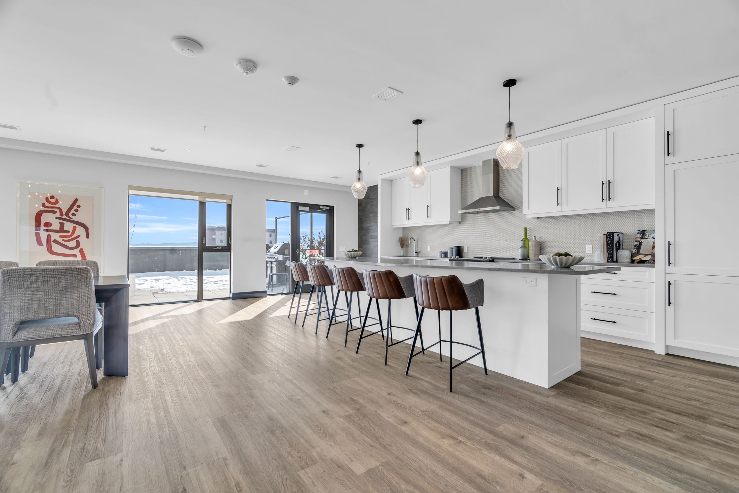 • Chef's kitchen with quartz countertops, oversized island, and premium finishes.