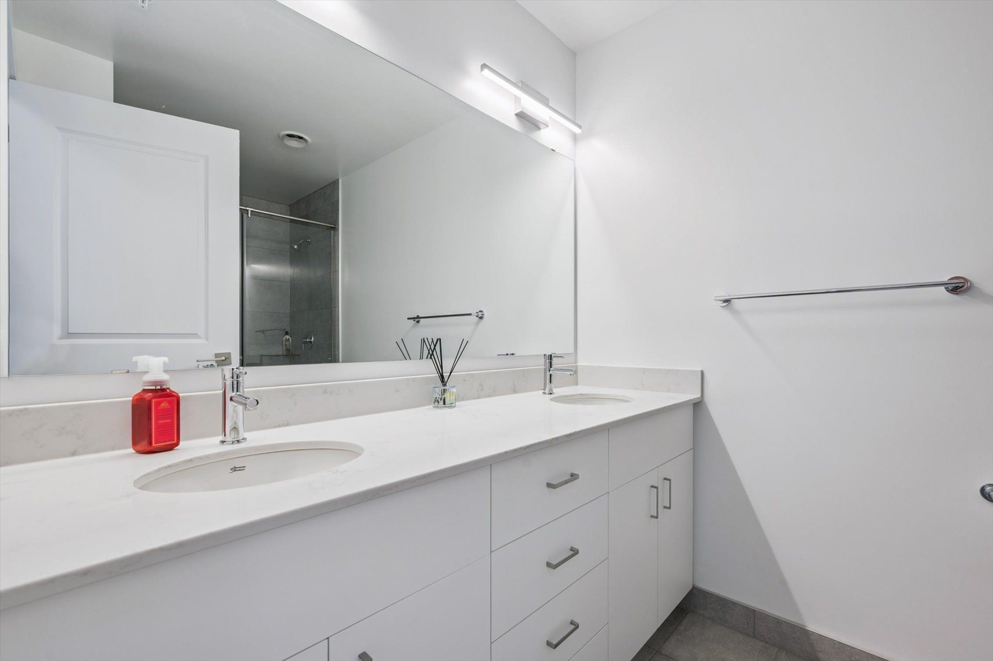 • Contemporary kitchen features quartz countertops and upgraded appliances.