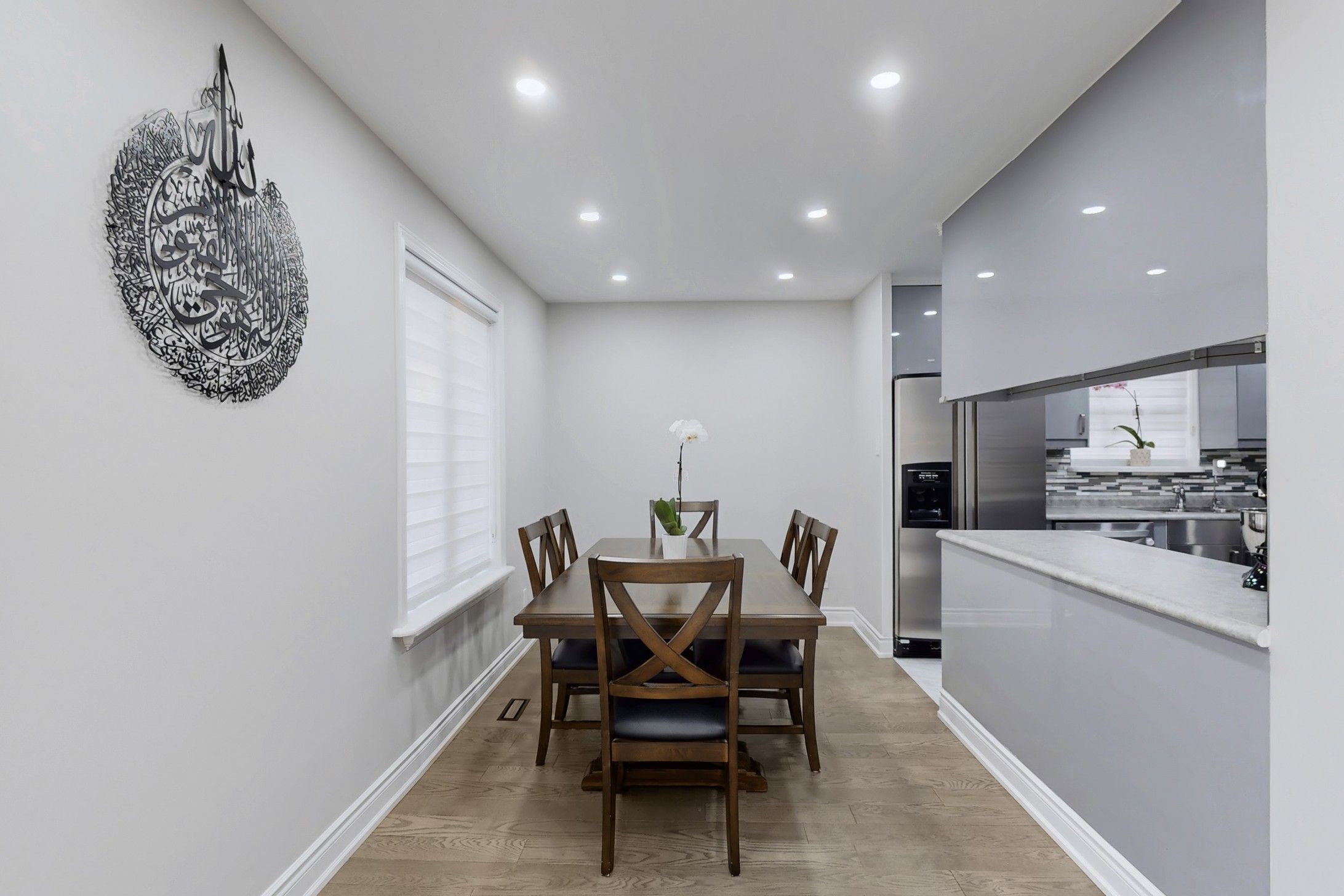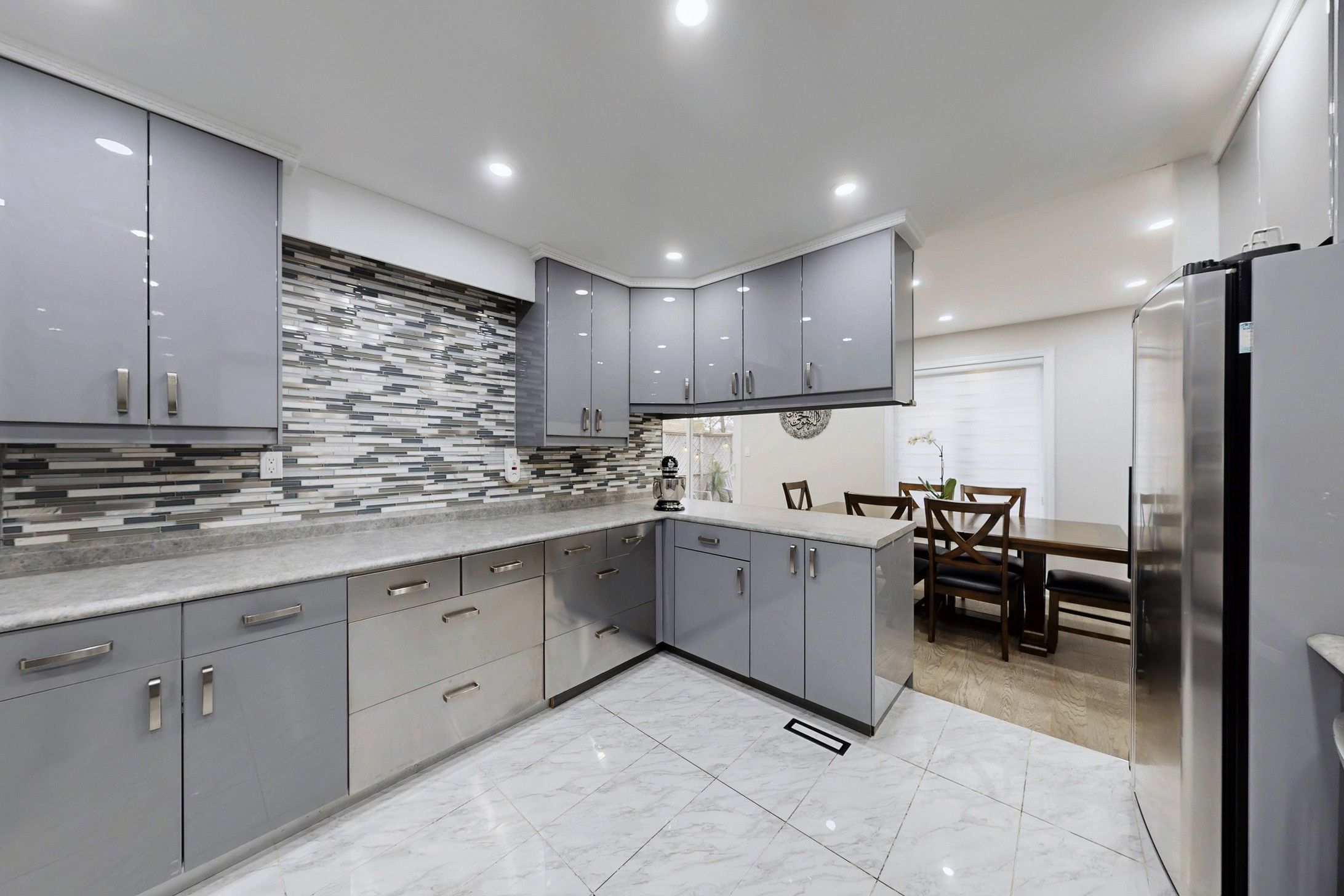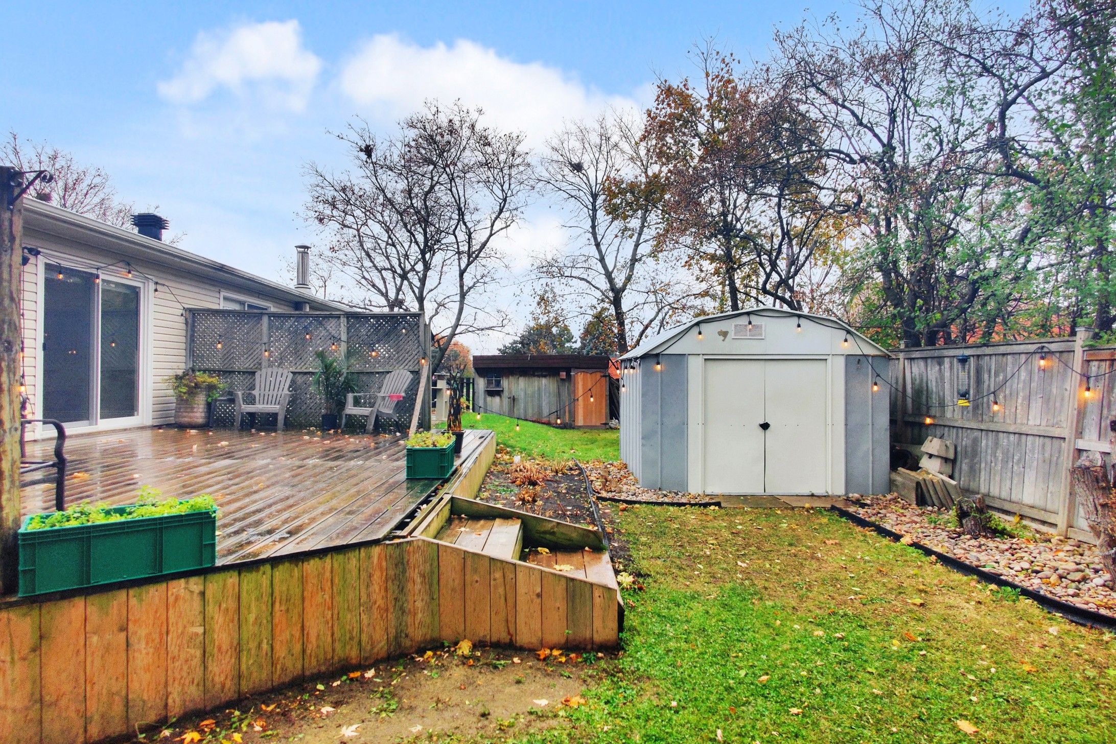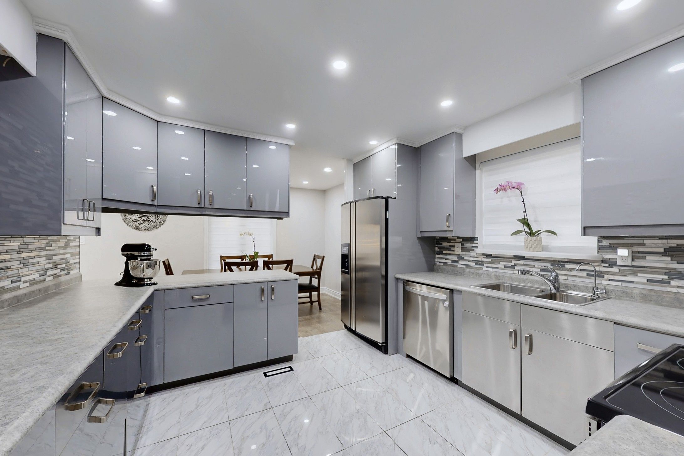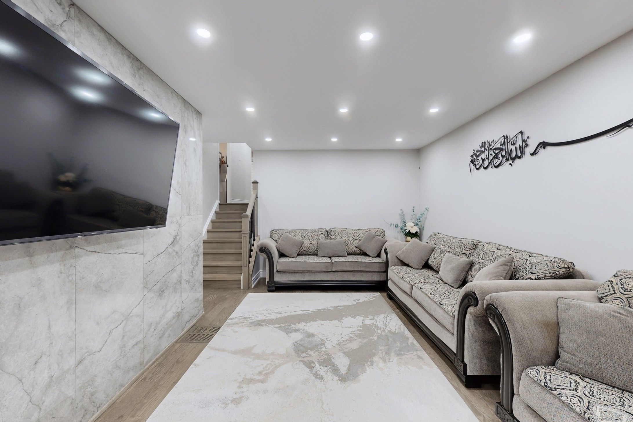 Beautifully renovated semi-detached home located on a quiet, family-friendly court in northgate, featuring a clean, well-maintained exterior that complements the adjoining semi. Professionally designed by an interior designer, this home has been recently renovated throughout with high-quality finishes and attention to detail. The main floor offers a stunning marble-style accent wall, exotic hardwood flooring, pot lights throughout, and a long open-concept living/dining area with a walkout to the backyard. The large u-shaped kitchen features modern two-tone cabinetry and upgraded lighting. The second floor hosts three spacious bedrooms with large windows, including a primary bedroom with a walk-in closet offering direct access to the newly renovated main washroom, finished with premium materials and exceptional craftsmanship. The fully finished basement provides a large recreation area, a separate office room, generous storage, laundry area, and a newly renovated washroom with sleek, modern designer finishes. Additional updates include hardwood flooring throughout the main and second levels, vinyl flooring in the basement, a new roof, new furnace, new electrical panel with whole-home surge protection, new washer, dryer, dishwasher, new front and back doors, zebra blinds with blackout shades in bedrooms, a large backyard with patio deck and three storage sheds, a double garage, and an extended driveway accommodating 4-6 vehicles. Walking distance to elementary, middle, high schools, and catholic schools. Smoke-free, pet-free, and completely move-in ready.