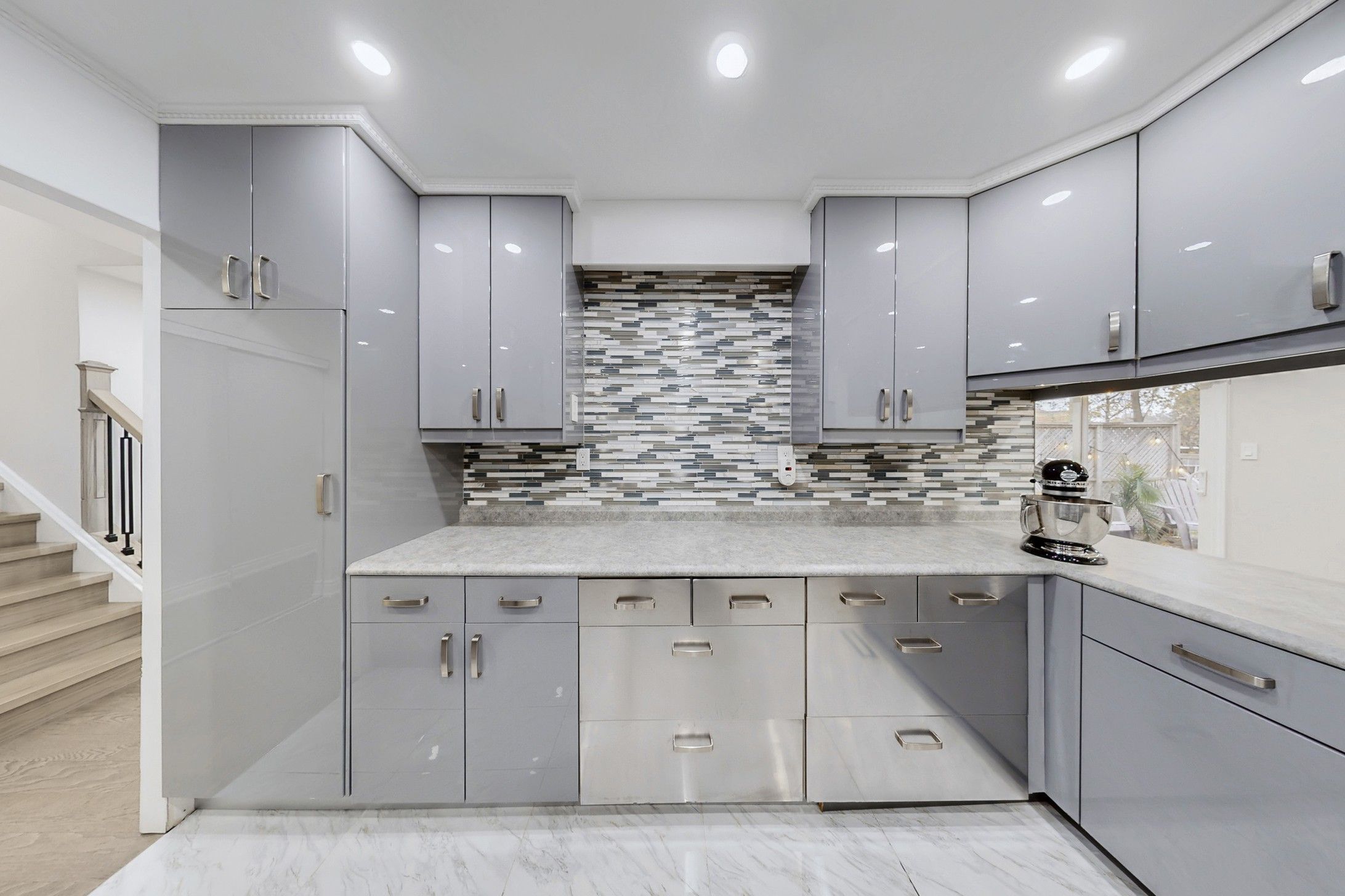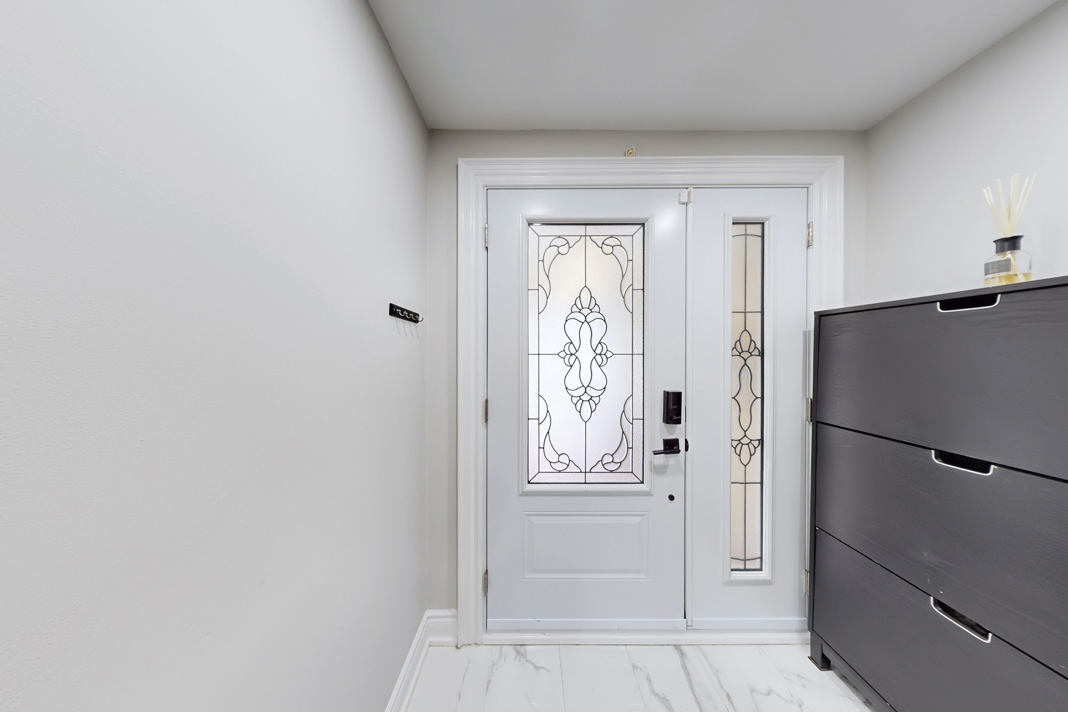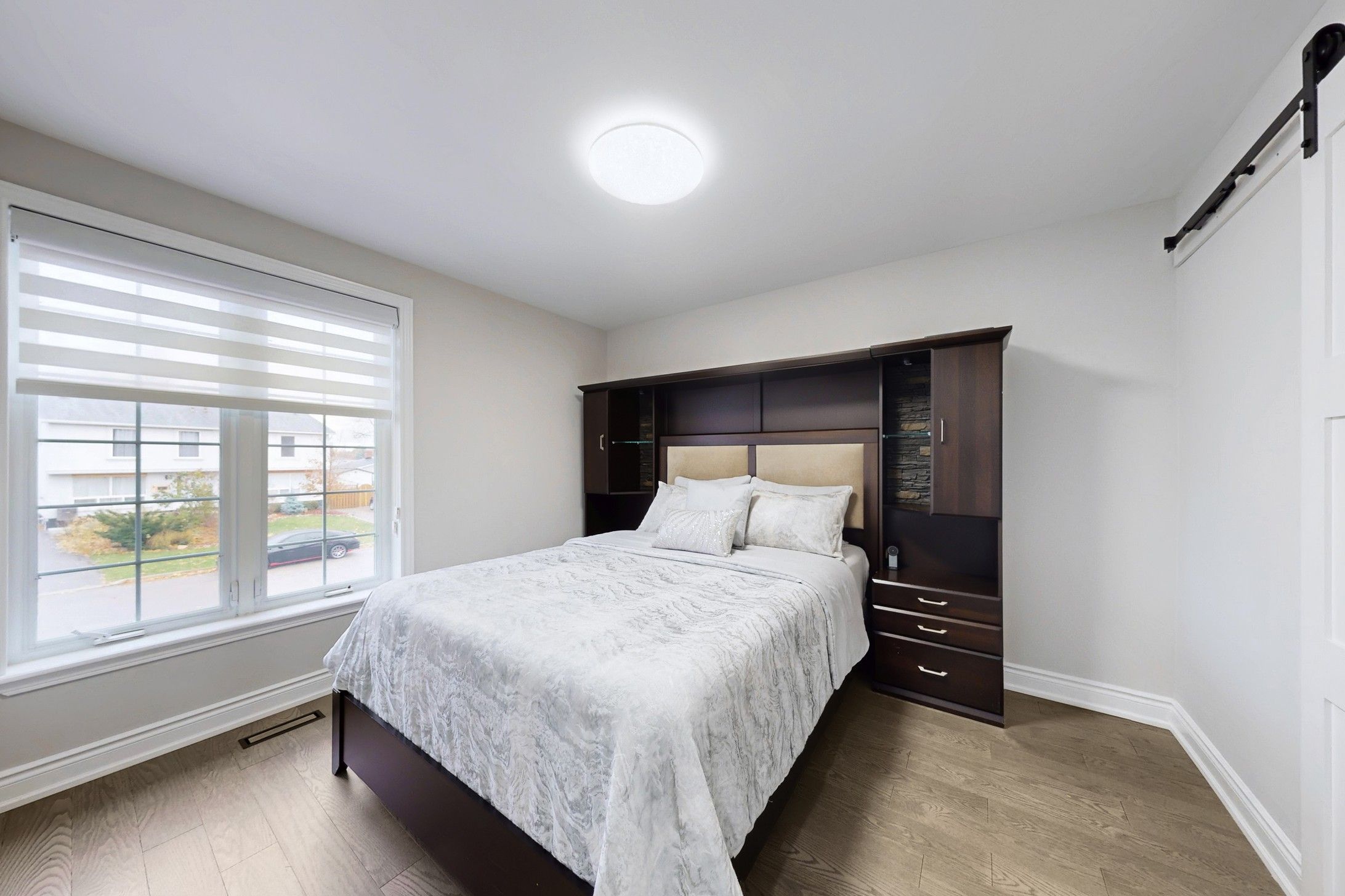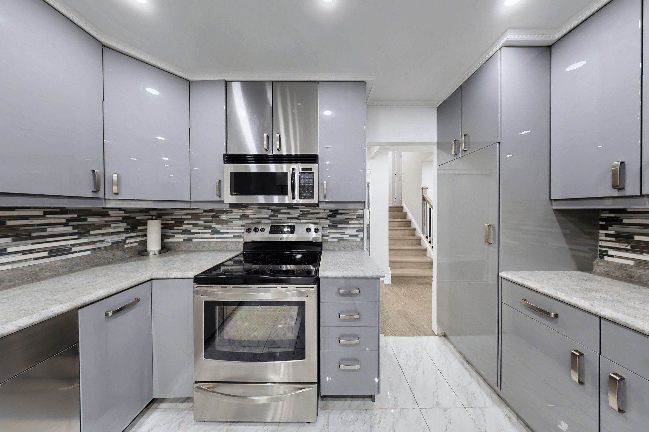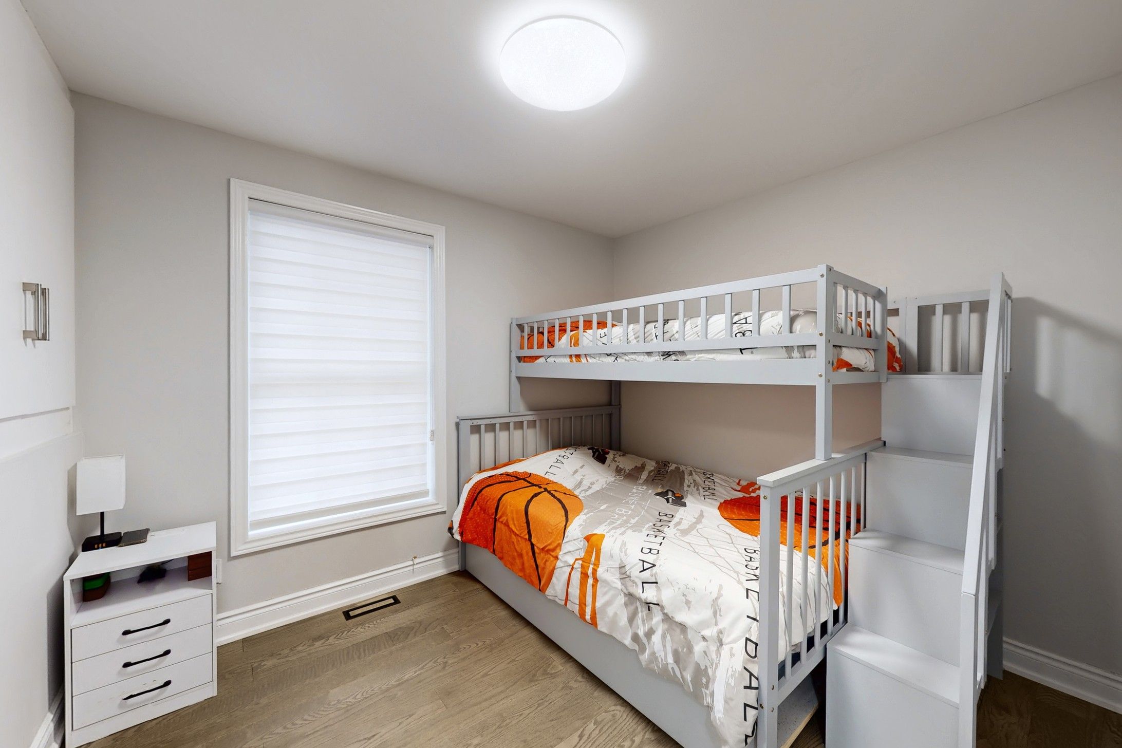 Beautifully renovated semi-detached home located on a quiet, family-friendly court in northgate, featuring a clean, well-maintained exterior that complements the adjoining semi. Professionally designed by an interior designer, this home has been recently renovated throughout with high-quality finishes and attention to detail. The main floor offers a stunning marble-style accent wall, exotic hardwood flooring, pot lights throughout, and a long open-concept living/dining area with a walkout to the backyard. The large u-shaped kitchen features modern two-tone cabinetry and upgraded lighting. The second floor hosts three spacious bedrooms with large windows, including a primary bedroom with a walk-in closet offering direct access to the newly renovated main washroom, finished with premium materials and exceptional craftsmanship. The fully finished basement provides a large recreation area, a separate office room, generous storage, laundry area, and a newly renovated washroom with sleek, modern designer finishes. Additional updates include hardwood flooring throughout the main and second levels, vinyl flooring in the basement, a new roof, new furnace, new electrical panel with whole-home surge protection, new washer, dryer, dishwasher, new front and back doors, zebra blinds with blackout shades in bedrooms, a large backyard with patio deck and three storage sheds, a double garage, and an extended driveway accommodating 4-6 vehicles. Walking distance to elementary, middle, high schools, and catholic schools. Smoke-free, pet-free, and completely move-in ready.
