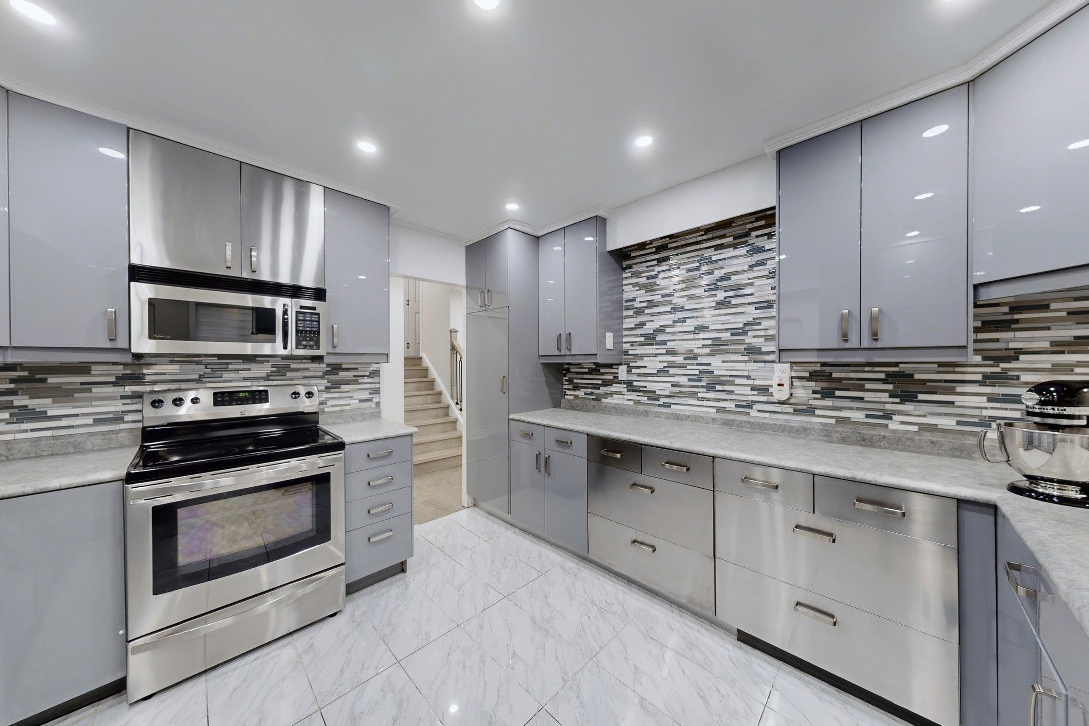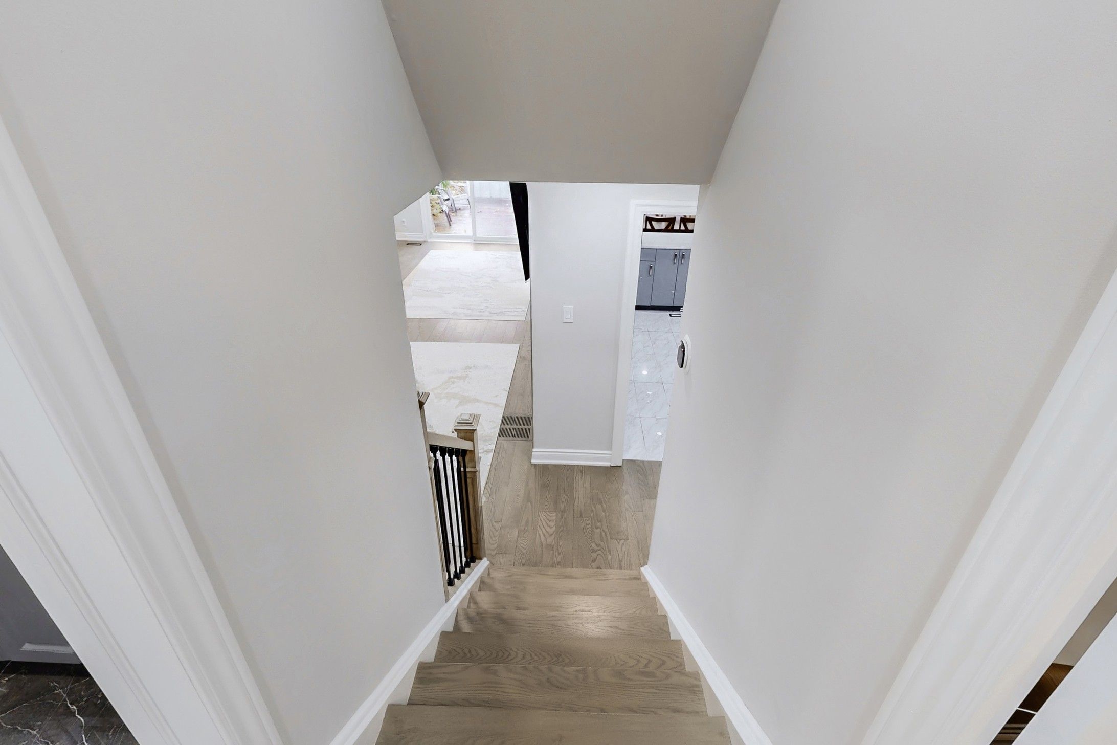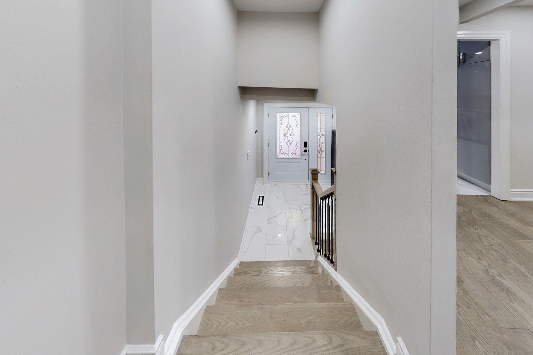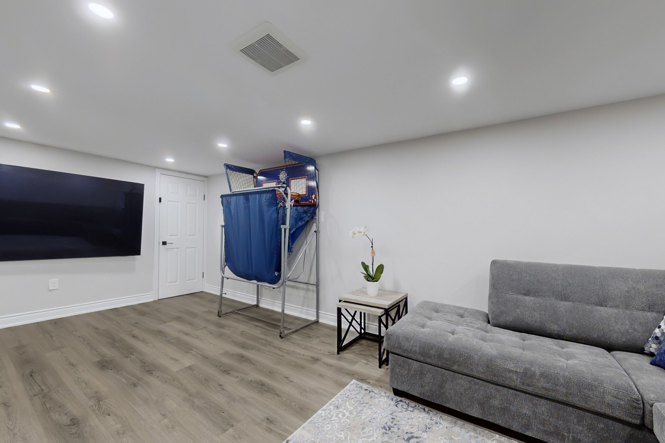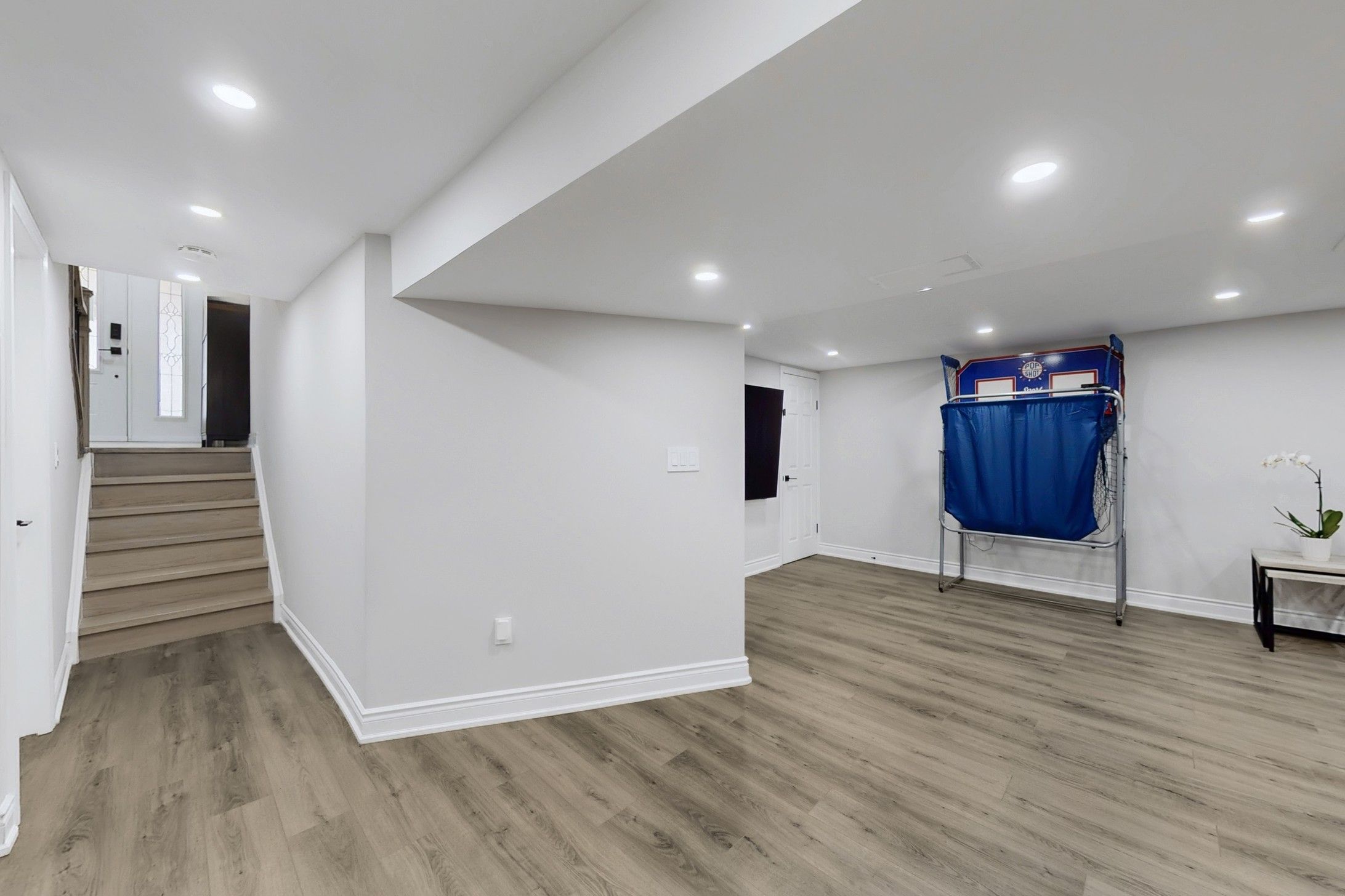 Beautifully renovated semi-detached home located on a quiet, family-friendly court in northgate, featuring a clean, well-maintained exterior that complements the adjoining semi. Professionally designed by an interior designer, this home has been recently renovated throughout with high-quality finishes and attention to detail. The main floor offers a stunning marble-style accent wall, exotic hardwood flooring, pot lights throughout, and a long open-concept living/dining area with a walkout to the backyard. The large u-shaped kitchen features modern two-tone cabinetry and upgraded lighting. The second floor hosts three spacious bedrooms with large windows, including a primary bedroom with a walk-in closet offering direct access to the newly renovated main washroom, finished with premium materials and exceptional craftsmanship. The fully finished basement provides a large recreation area, a separate office room, generous storage, laundry area, and a newly renovated washroom with sleek, modern designer finishes. Additional updates include hardwood flooring throughout the main and second levels, vinyl flooring in the basement, a new roof, new furnace, new electrical panel with whole-home surge protection, new washer, dryer, dishwasher, new front and back doors, zebra blinds with blackout shades in bedrooms, a large backyard with patio deck and three storage sheds, a double garage, and an extended driveway accommodating 4-6 vehicles. Walking distance to elementary, middle, high schools, and catholic schools. Smoke-free, pet-free, and completely move-in ready.