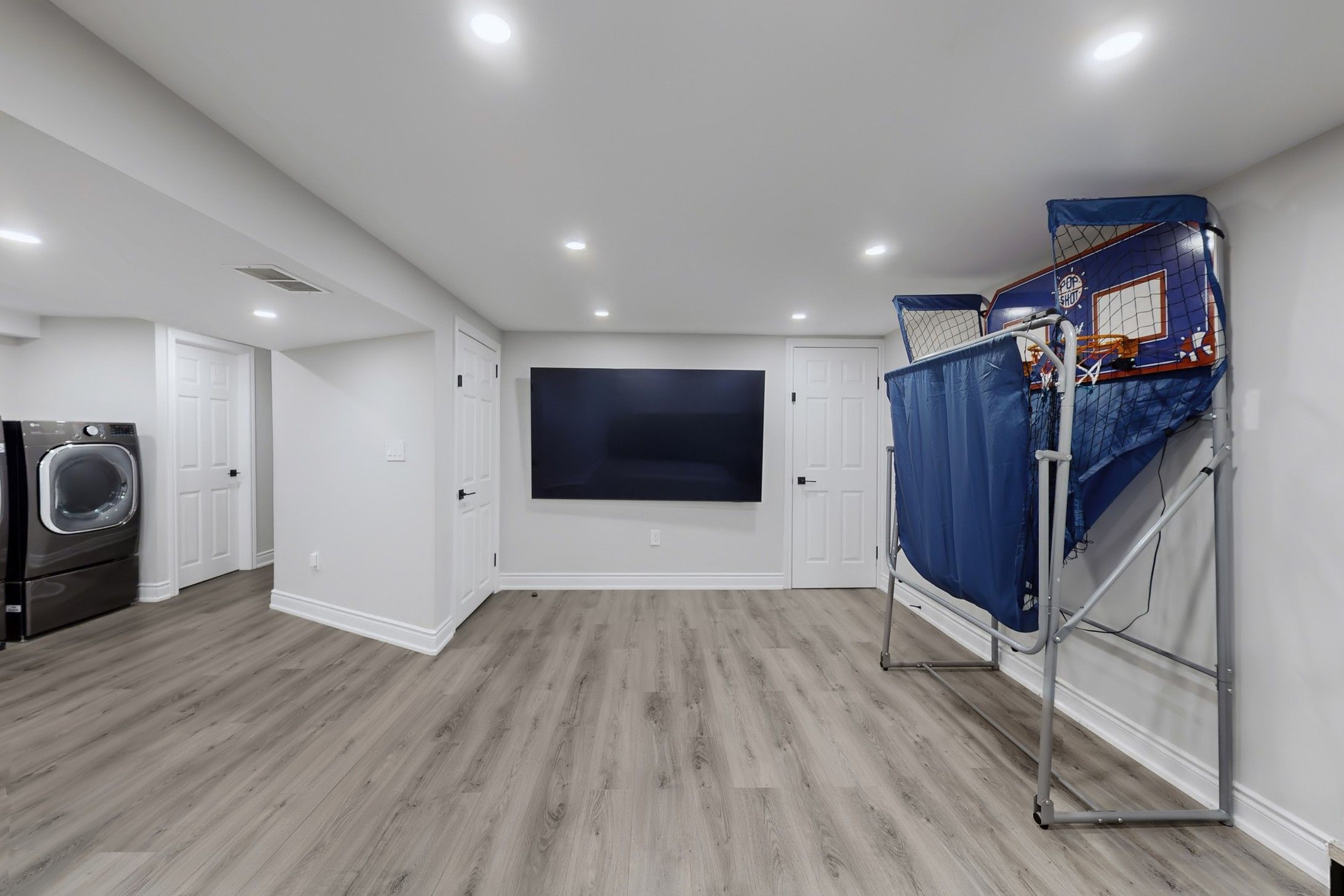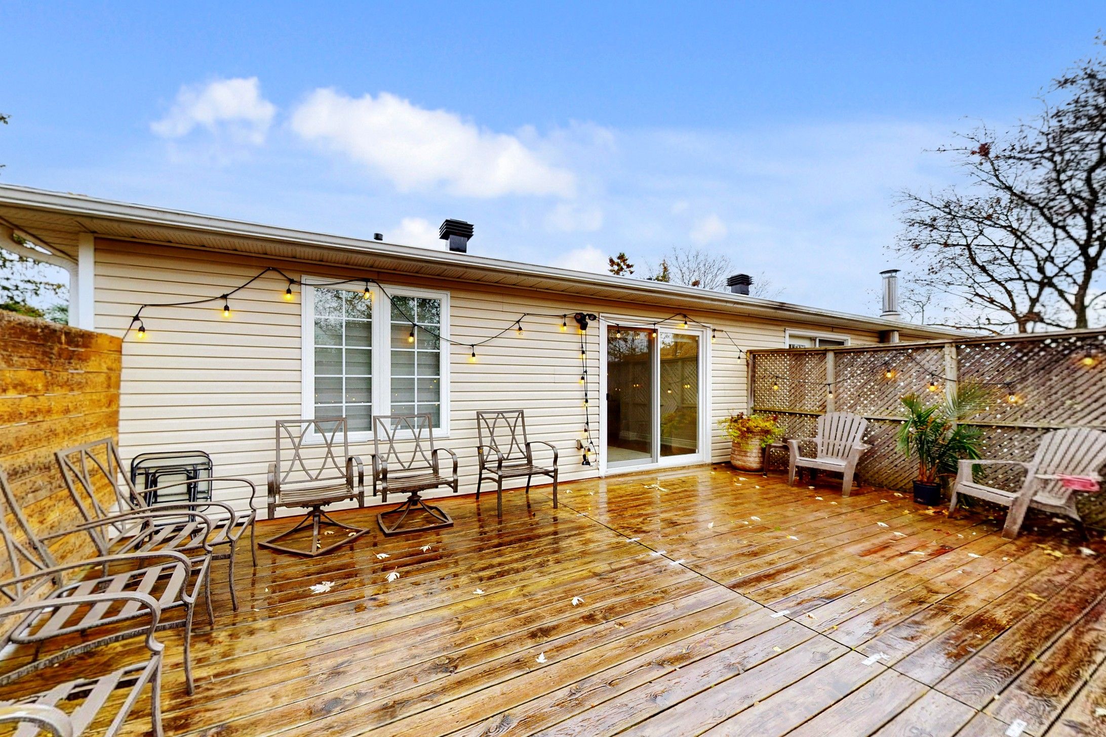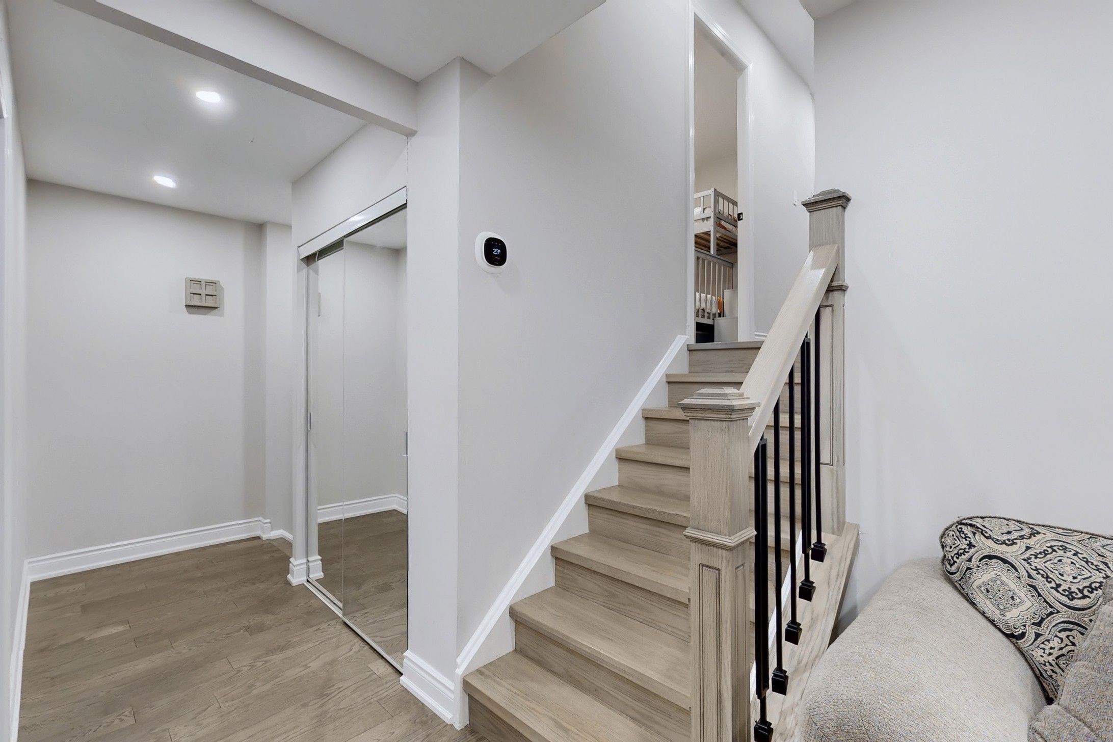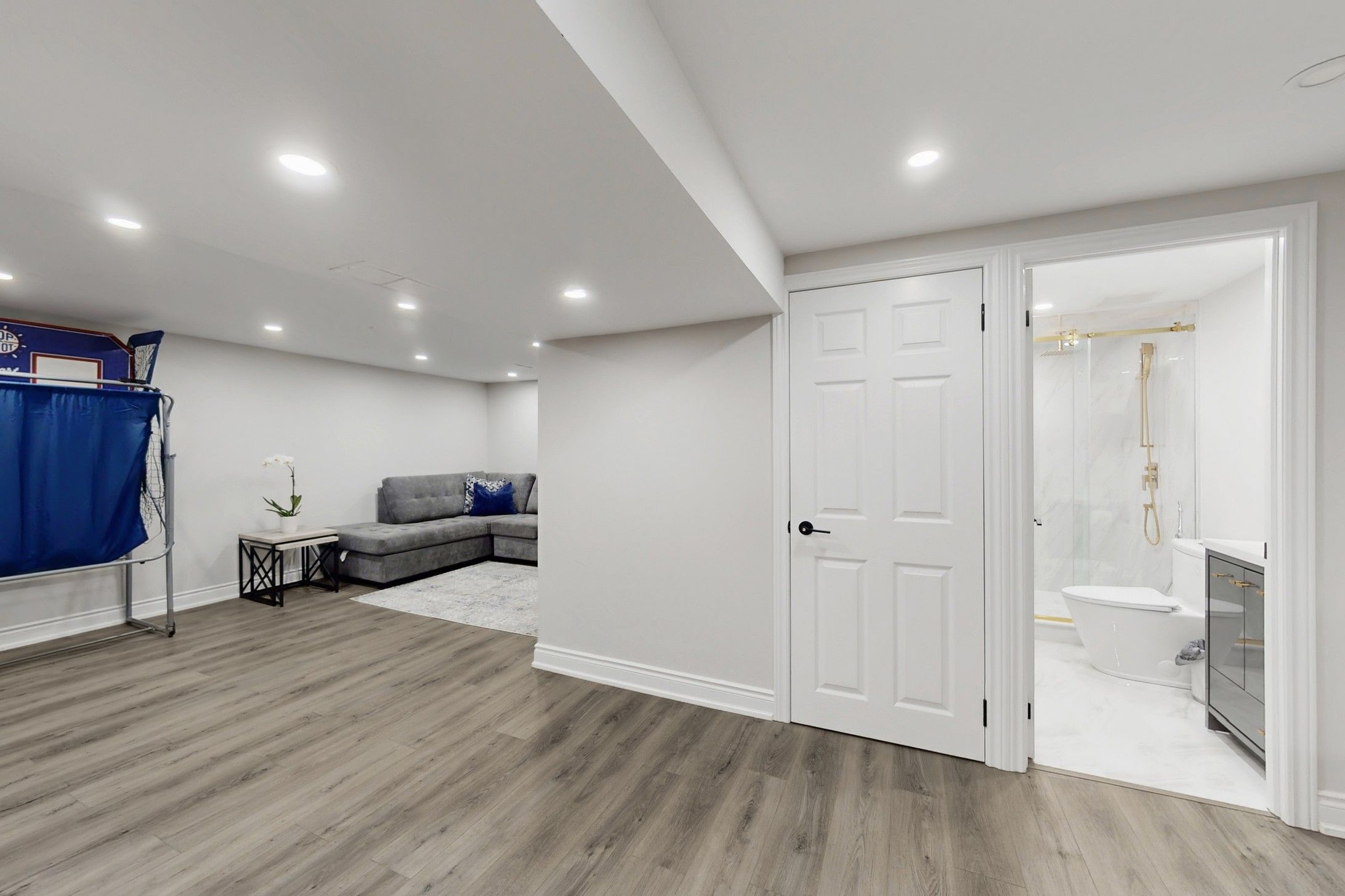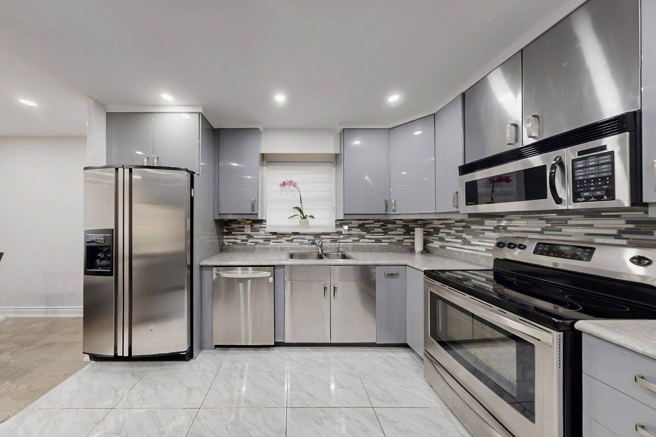 Beautifully renovated semi-detached home located on a quiet, family-friendly court in northgate, featuring a clean, well-maintained exterior that complements the adjoining semi. Professionally designed by an interior designer, this home has been recently renovated throughout with high-quality finishes and attention to detail. The main floor offers a stunning marble-style accent wall, exotic hardwood flooring, pot lights throughout, and a long open-concept living/dining area with a walkout to the backyard. The large u-shaped kitchen features modern two-tone cabinetry and upgraded lighting. The second floor hosts three spacious bedrooms with large windows, including a primary bedroom with a walk-in closet offering direct access to the newly renovated main washroom, finished with premium materials and exceptional craftsmanship. The fully finished basement provides a large recreation area, a separate office room, generous storage, laundry area, and a newly renovated washroom with sleek, modern designer finishes. Additional updates include hardwood flooring throughout the main and second levels, vinyl flooring in the basement, a new roof, new furnace, new electrical panel with whole-home surge protection, new washer, dryer, dishwasher, new front and back doors, zebra blinds with blackout shades in bedrooms, a large backyard with patio deck and three storage sheds, a double garage, and an extended driveway accommodating 4-6 vehicles. Walking distance to elementary, middle, high schools, and catholic schools. Smoke-free, pet-free, and completely move-in ready.