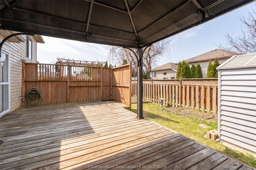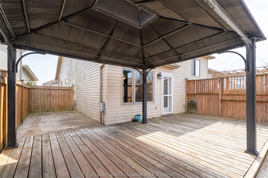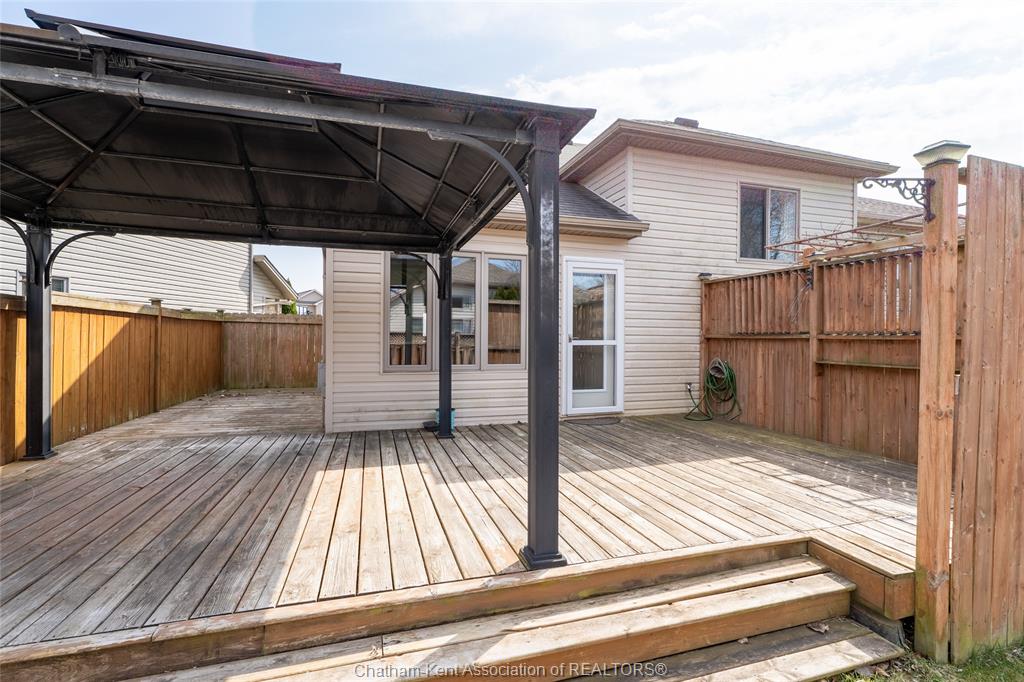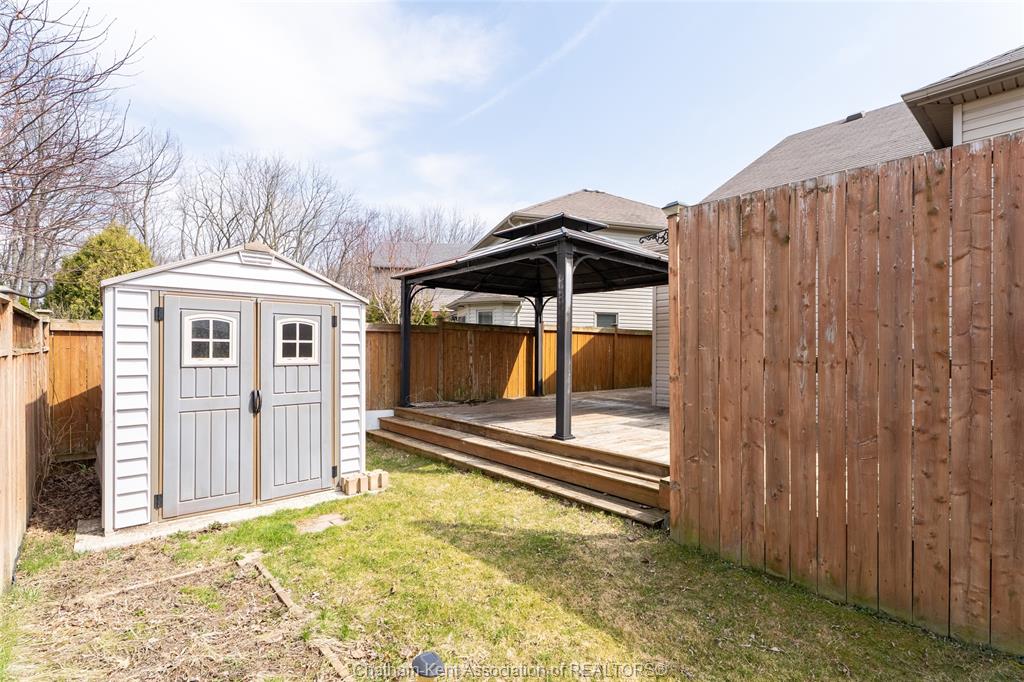 Welcome to this beautiful, move-in ready two-storey home, built in 2011. Ideally located on a quiet cul-de-sac in a sought-after neighbourhood in north-east chatham, perfect for families of all sizes. This well-maintained property features 3 bedrooms and 2 full bathrooms, including a spacious primary bedroom complete with its own private ensuite. The main floor offers a bright, open-concept kitchen and dining area, ideal for both everyday living and entertaining. Patio doors lead directly to a fully fenced backyard, where you will find a lovely deck with gazebo, along with a large storage shed for all your outdoor needs. The inviting living room features a gas fireplace, adding warmth and charm to the space. The attached garage offers convenient inside entry, adding everyday practicality. Downstairs, the fully finished basement provides additional living space along with loads of storage, offering flexibility for a growing family. All appliances are included. Hot water tank is owned. Located close to both elementary and high school options, as well as shopping and everyday amenities, this home offers the perfect blend of location, space, and functionality. Don’t miss your chance to call this fantastic property home!