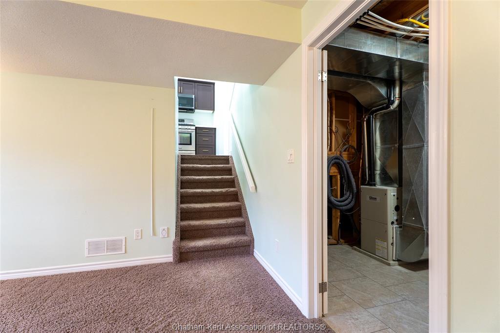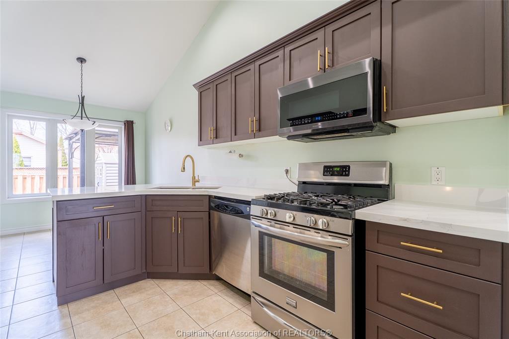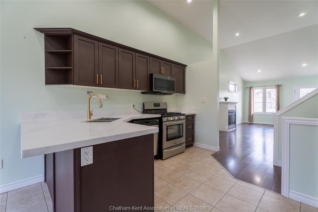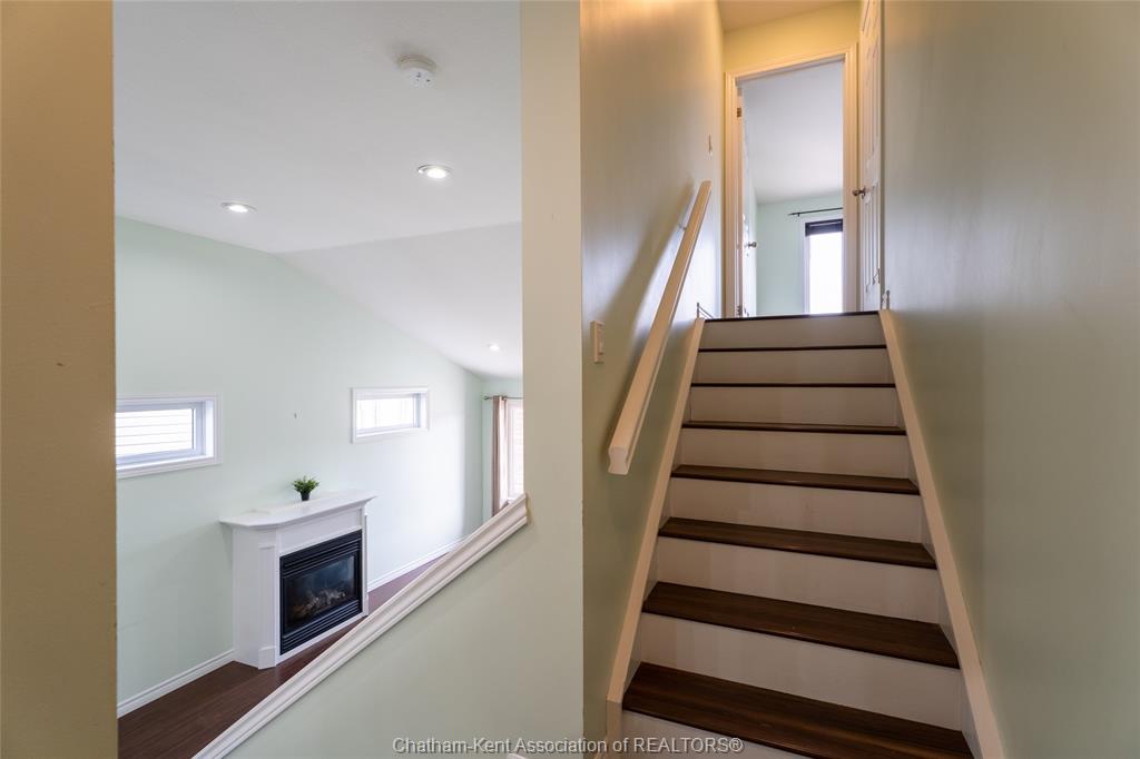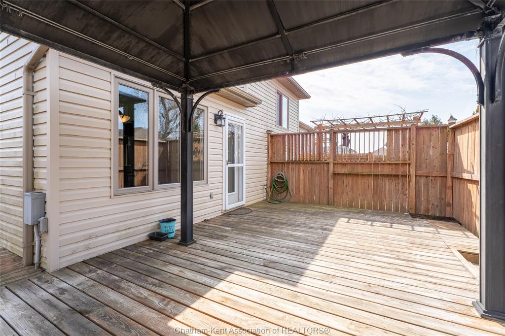 Welcome to this beautiful, move-in ready two-storey home, built in 2011. Ideally located on a quiet cul-de-sac in a sought-after neighbourhood in north-east chatham, perfect for families of all sizes. This well-maintained property features 3 bedrooms and 2 full bathrooms, including a spacious primary bedroom complete with its own private ensuite. The main floor offers a bright, open-concept kitchen and dining area, ideal for both everyday living and entertaining. Patio doors lead directly to a fully fenced backyard, where you will find a lovely deck with gazebo, along with a large storage shed for all your outdoor needs. The inviting living room features a gas fireplace, adding warmth and charm to the space. The attached garage offers convenient inside entry, adding everyday practicality. Downstairs, the fully finished basement provides additional living space along with loads of storage, offering flexibility for a growing family. All appliances are included. Hot water tank is owned. Located close to both elementary and high school options, as well as shopping and everyday amenities, this home offers the perfect blend of location, space, and functionality. Don’t miss your chance to call this fantastic property home!