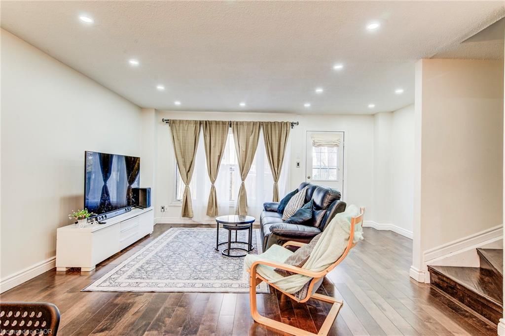 This well-maintained 3-bedroom condo townhouse offers the perfect blend of comfort and convenience. Featuring 1 full and 1 half bath, this home is ideal for families, first-time buyers, or investors alike. The main level showcases beautiful engineered hardwood flooring and a bright, inviting layout with large windows and added pot lights that fill the space with different lighting options. The kitchen comes fully equipped with a fridge, stove, and dishwasher, offering both function and style for everyday living. Downstairs, you'll find a spacious finished basement complete with a large rec room-perfect for entertaining, relaxing, or creating a home office or gym. The basement also includes the washer and dryer, water softener, and added storage space for all your needs. Step outside to enjoy a walkout to the deck overlooking a fully fenced backyard, ideal for kids, pets, or summer gatherings. The property also features a single asphalt driveway, along with convenient visitor parking for guests. Located in a highly desirable area, you're just steps from parks, transit bus stops, schools, shopping plazas, restaurants, scenic treed trails, conestoga college, the local museum, and library-making this an unbeatable location for both lifestyle and convenience.