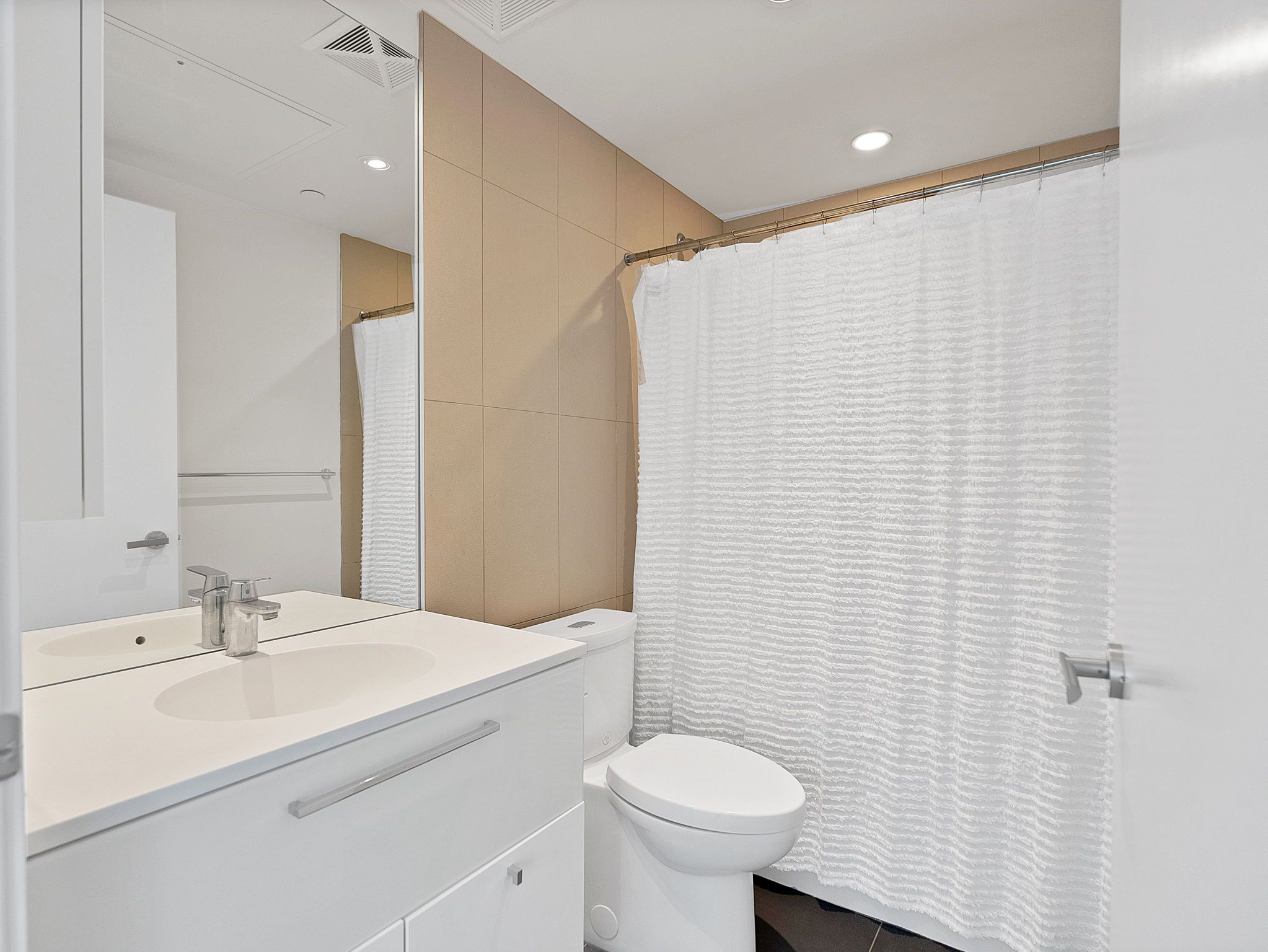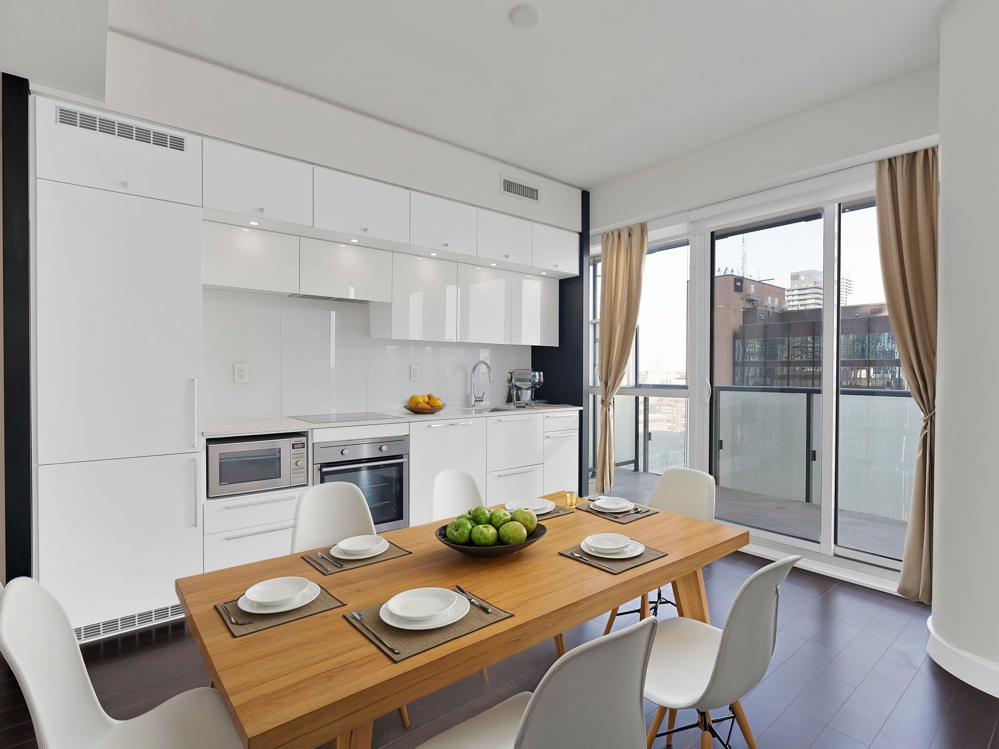 • Modern kitchen with stainless steel appliances and sleek cabinetry.