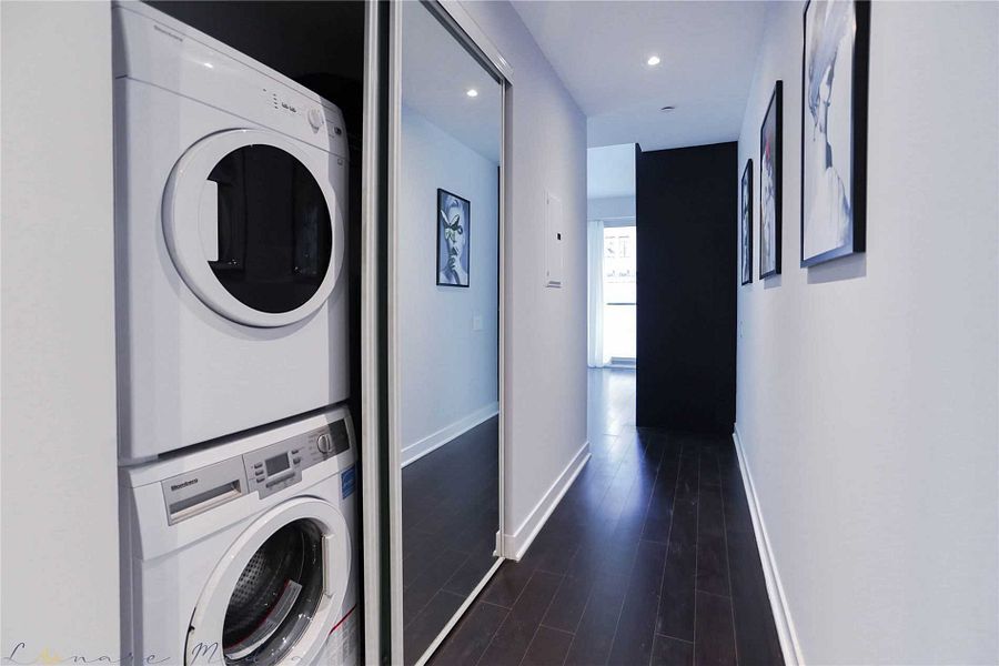 Experience unparalleled urban living in this spectacular, approximately 700 sqft south-east facing corner unit, perfectly situated at the highly coveted intersection of yonge & college in the core of downtown toronto.** this bright and spacious unit features desirable **hardwood flooring throughout** and boasts an incredibly efficient split-bedroom layout, offering **two sun-drenched bedrooms**-each featuring impressive floor-to-ceiling windows that flood the space with natural light. Enjoy serene city views and ample sunlight from the **private, south-facing large balcony**, ideal for morning coffee or evening relaxation. The unit is being offered fully furnished with quality pieces, including two spacious beds, a comfortable couch, dining table, nightstands, a desk, tv, and tv bench, allowing for an effortless move-in. Location is paramount: you are literally **steps from college subway station**, and only a short, convenient walk to both the **university of toronto (u of t)** and **toronto metropolitan university (tmu)**. Furthermore, the financial district and iconic dundas square are easily accessible, placing you at the nexus of professional and entertainment opportunities. This is the ultimate turnkey offering for students, investors, or young professionals seeking centrality and comfort.