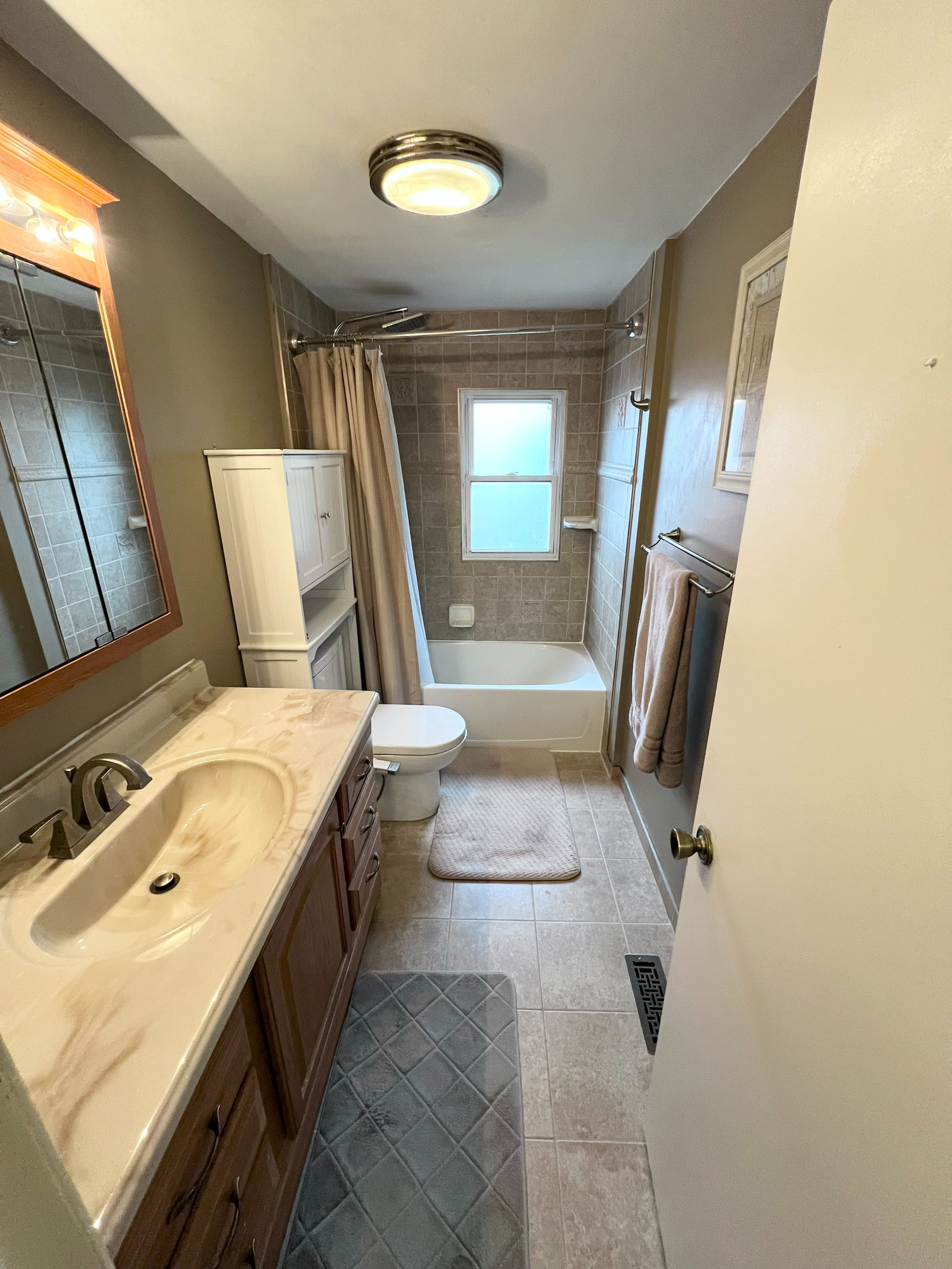 • Updated kitchen with plenty of cupboard space and a dining area.