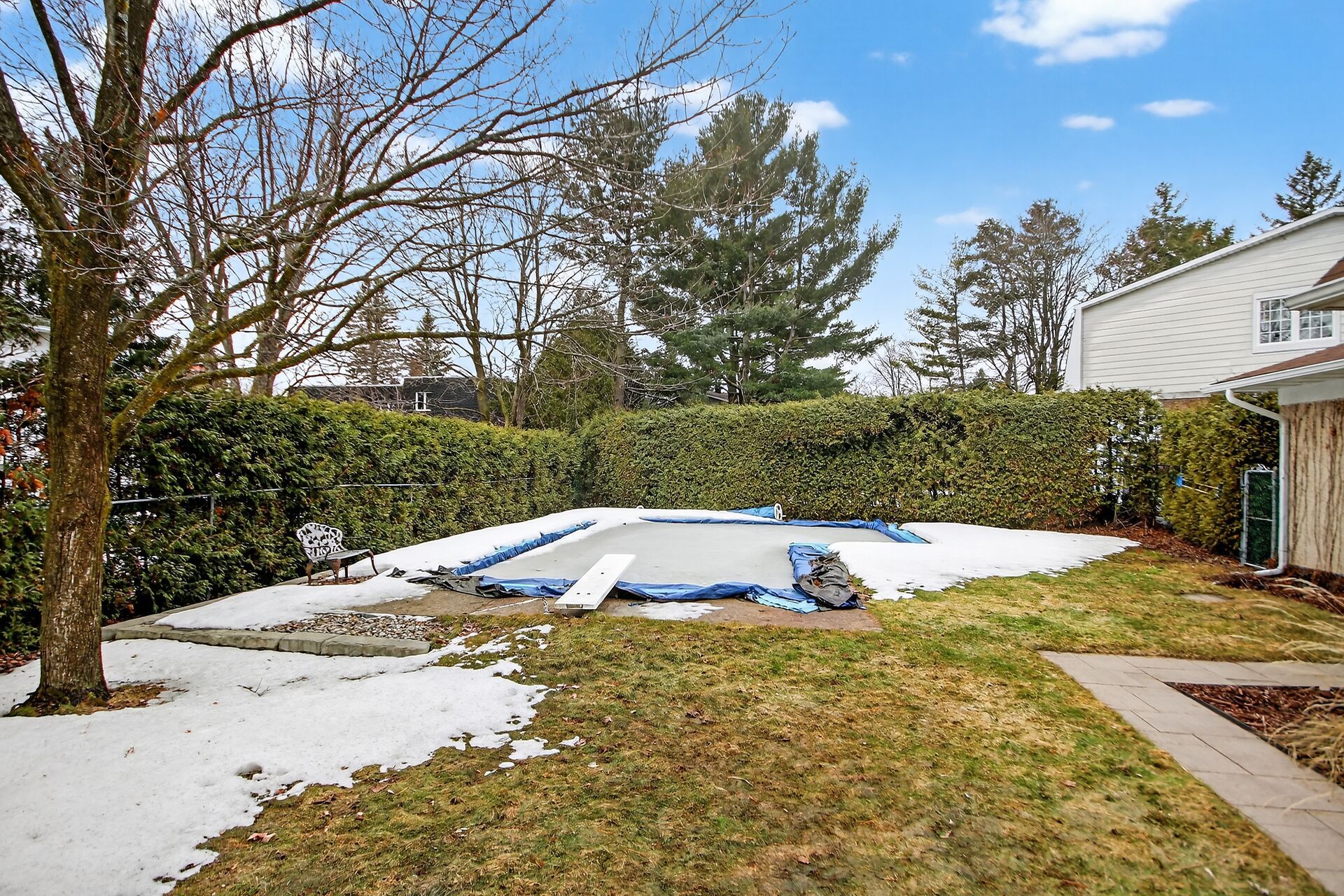 • Large private backyard with a deck and swimming pool for summer fun.