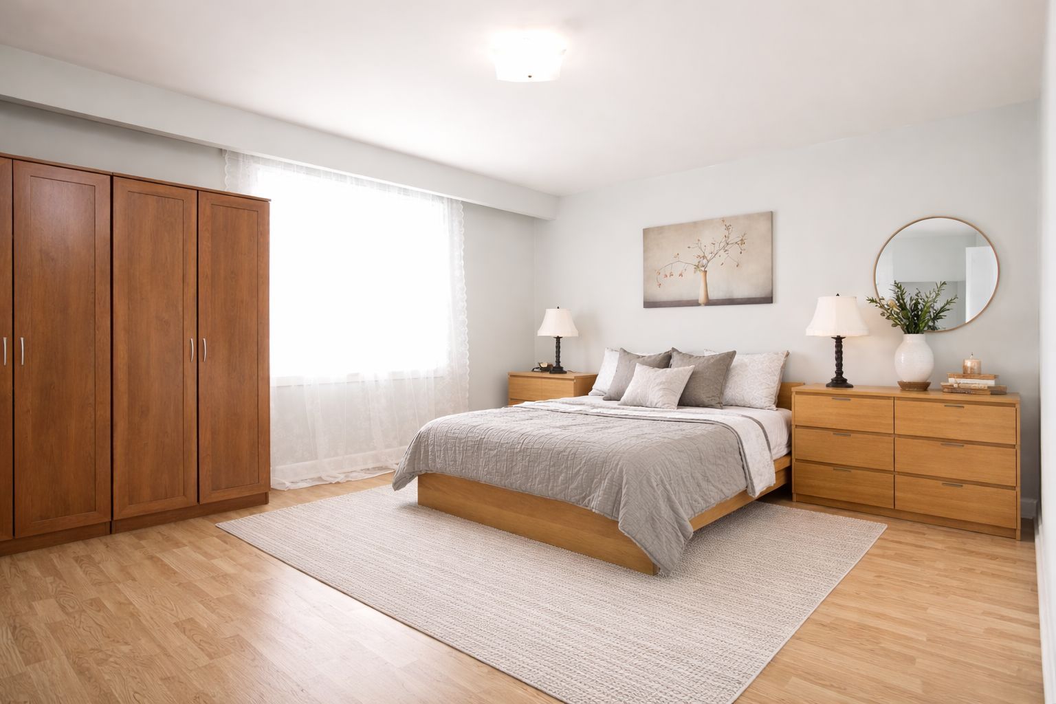 • Abundant natural light from large windows creates a bright atmosphere.