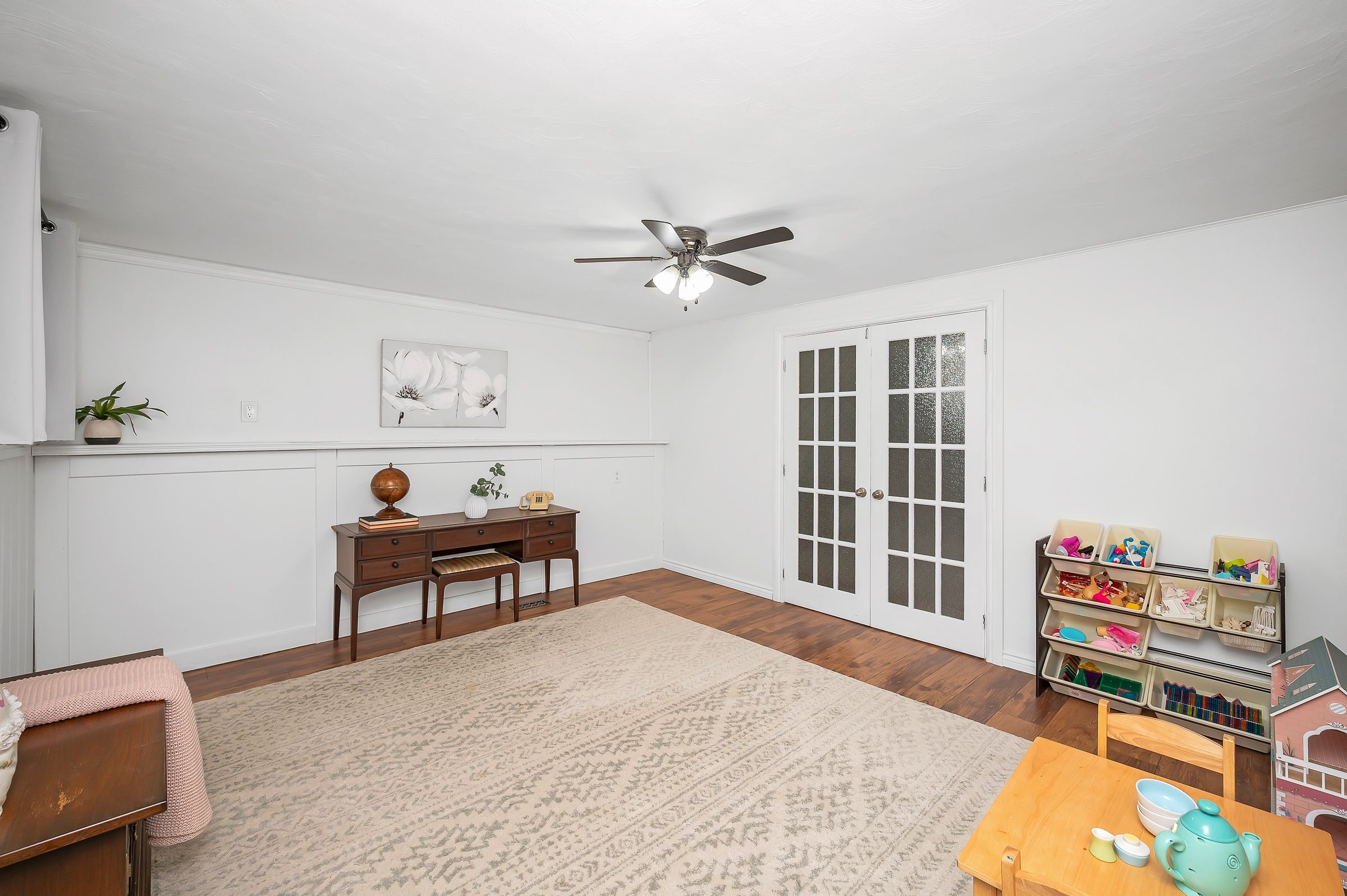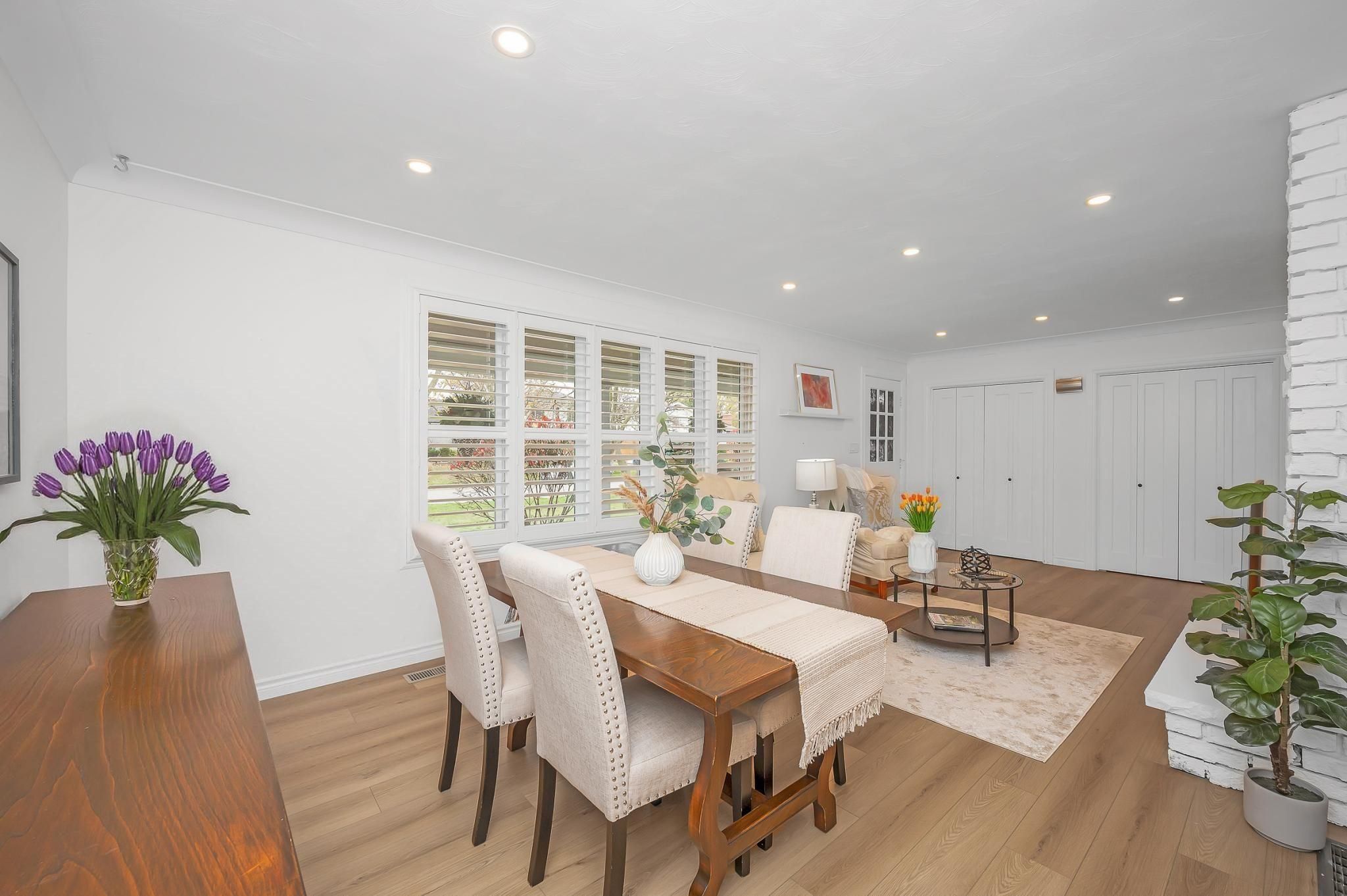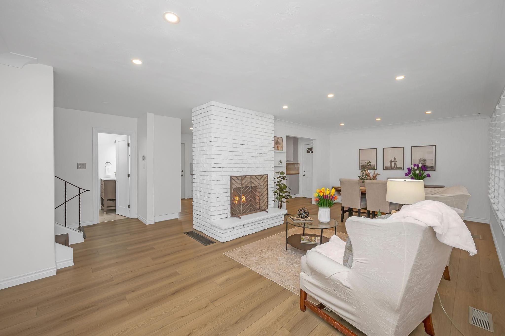 • Bright main level with a cozy wood-burning fireplace and open dining area.