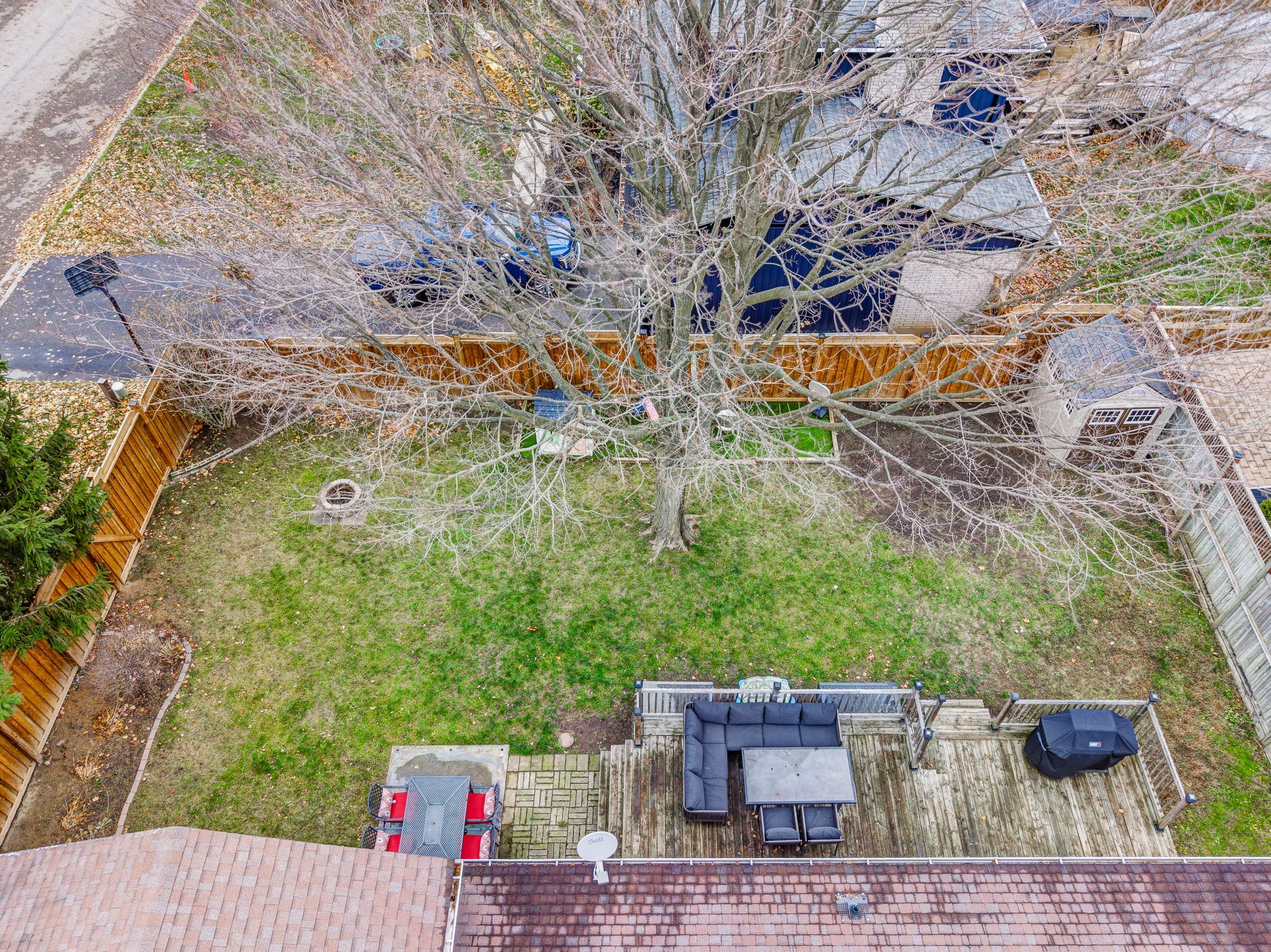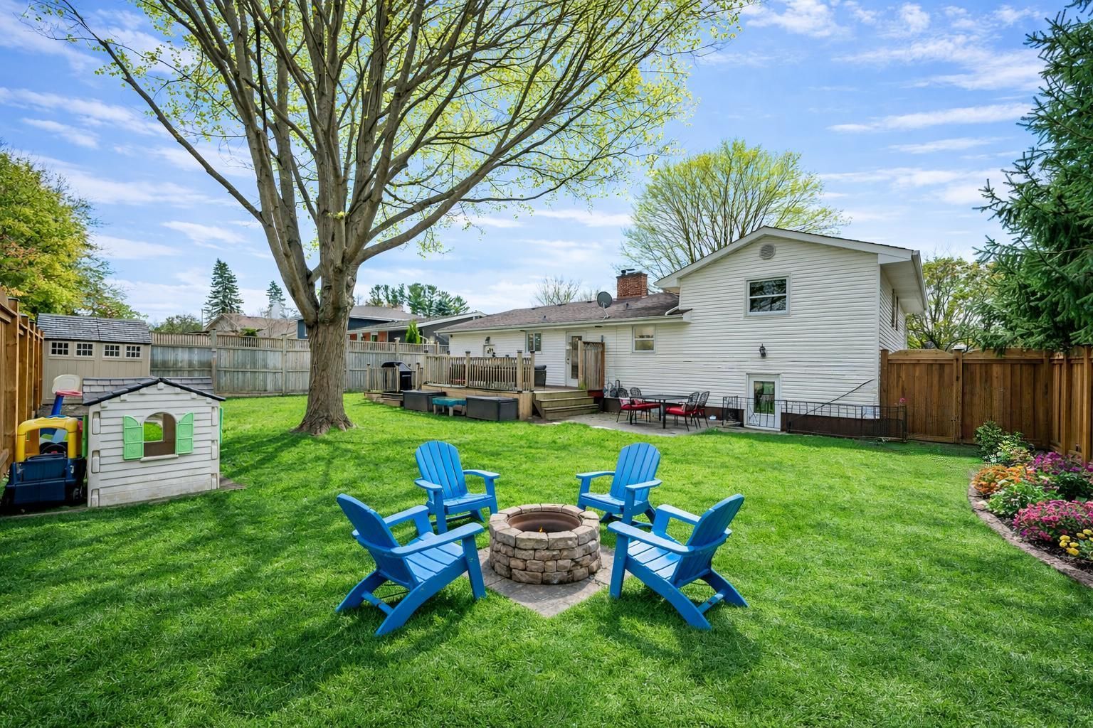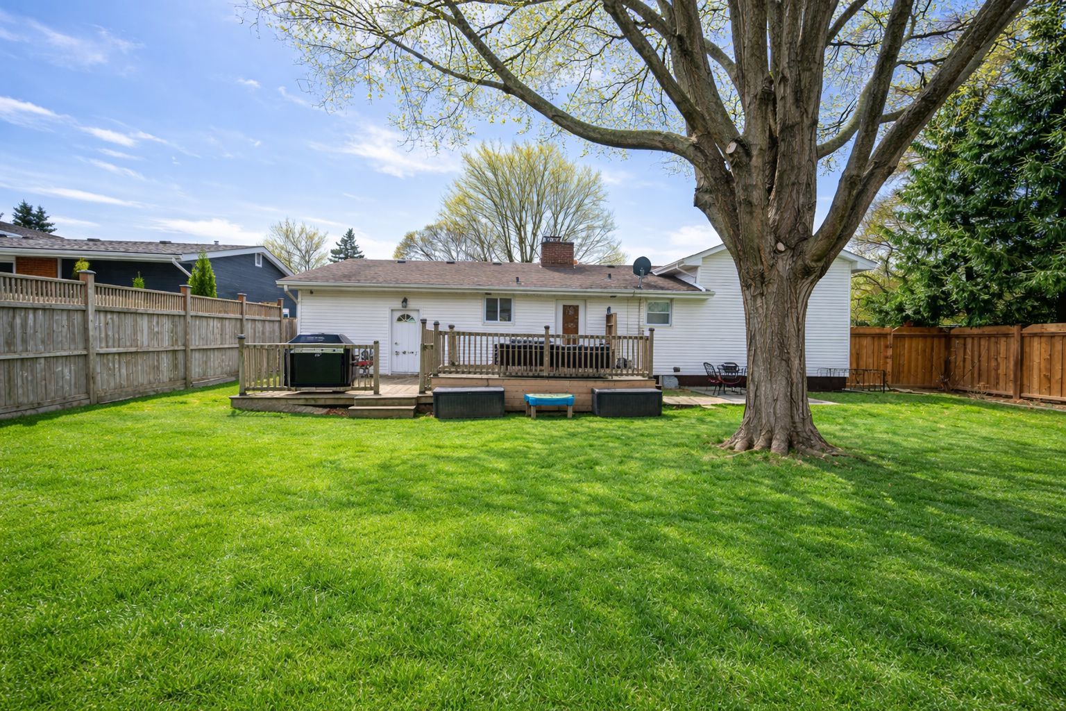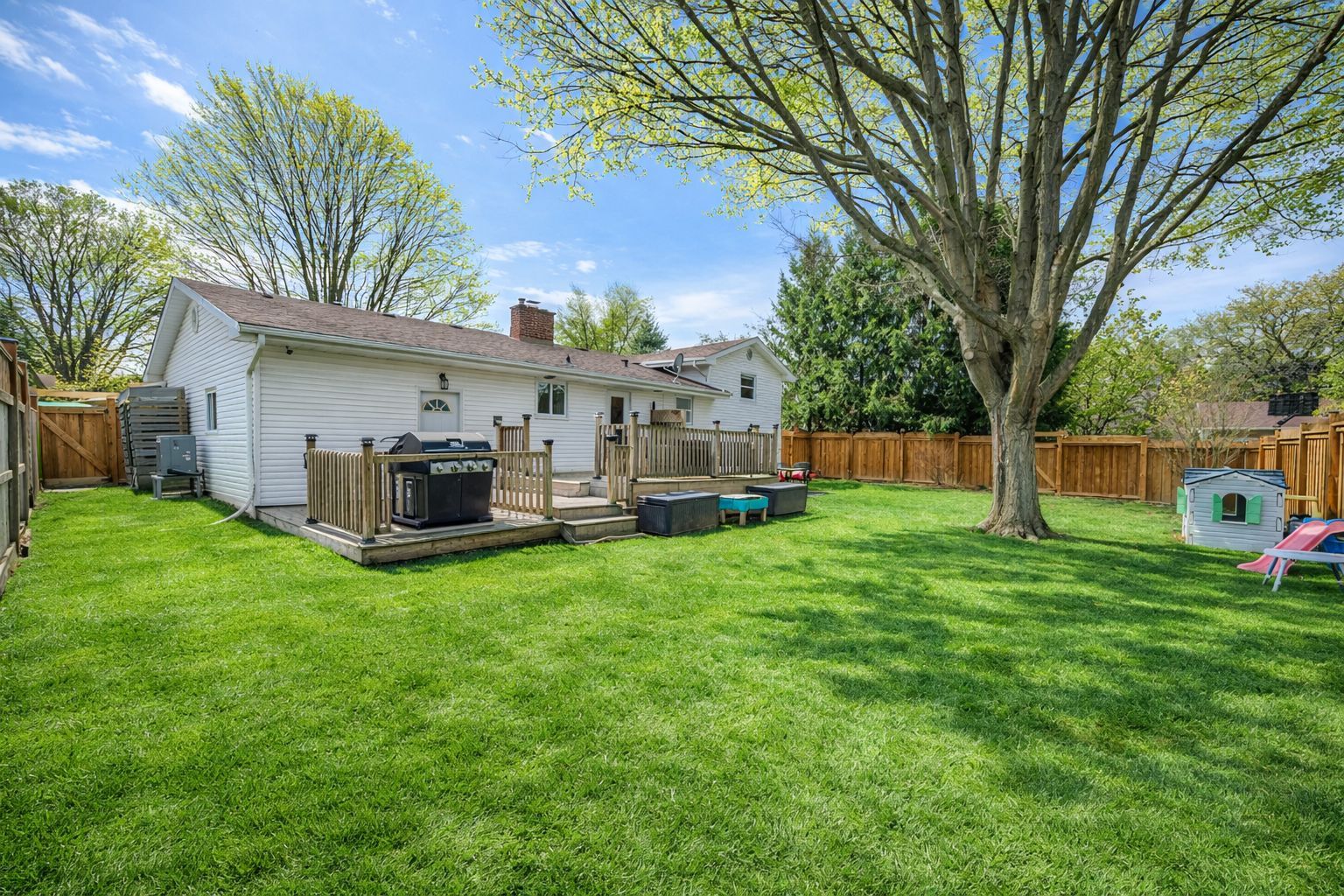 • Fully fenced yard with two-tier deck, great for outdoor activities.